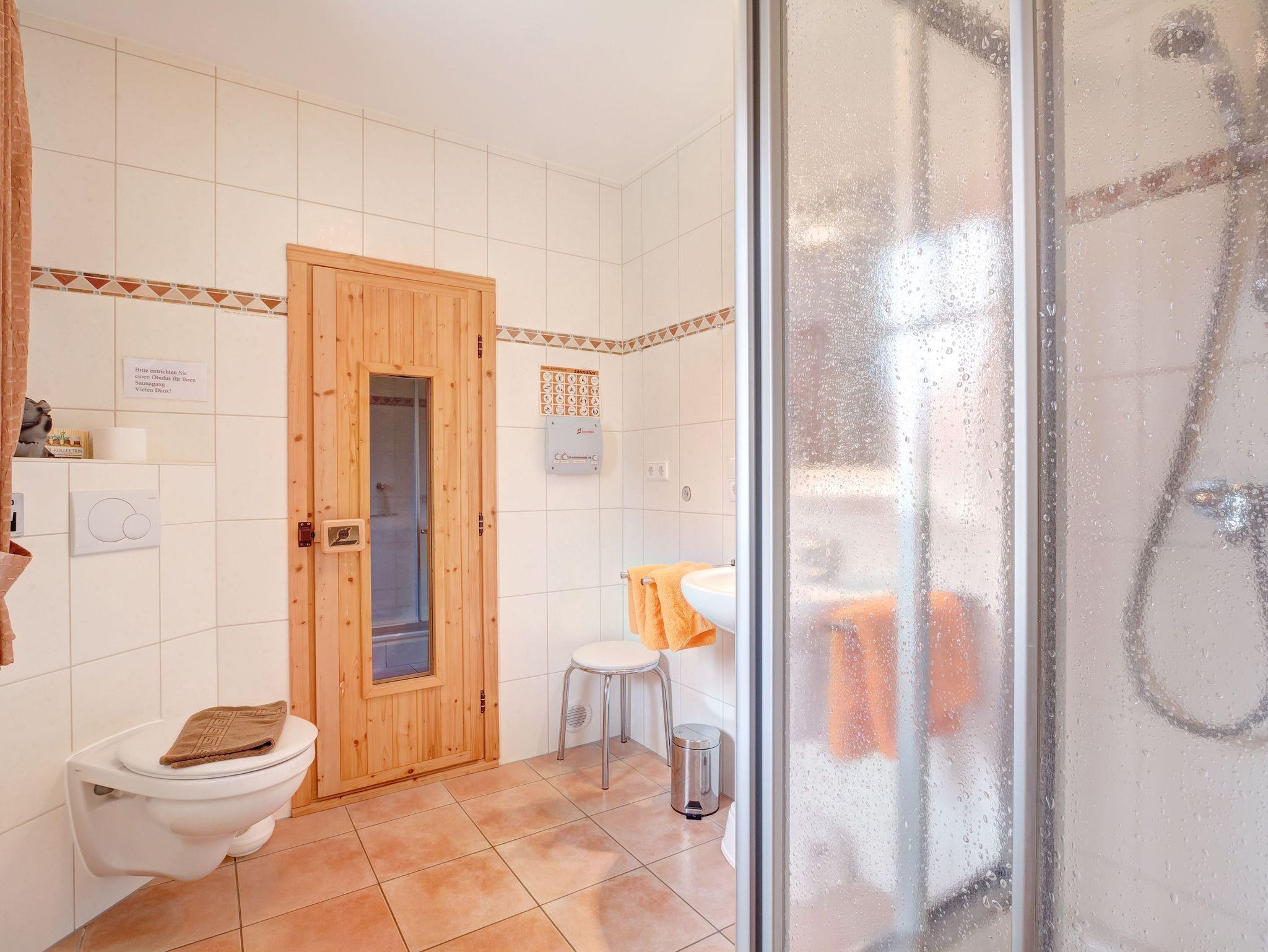 Im Erdgeschoss erwartet Sie ein großzügiger Wohnraum mit komfortablen Couchmöbeln, einem Fernseher, Schränke, sowie die offene, vollständig ausgestattete Küche mit Esstisch. Von hier können Sie auf Ihre private Terrasse treten, welche voll möbliert ist und Sie zum gemütlichen Zusammensitzen einlädt. Ein Badezimmer mit Dusche, WC, Waschbecken und Ihrer eigenen Sauna.