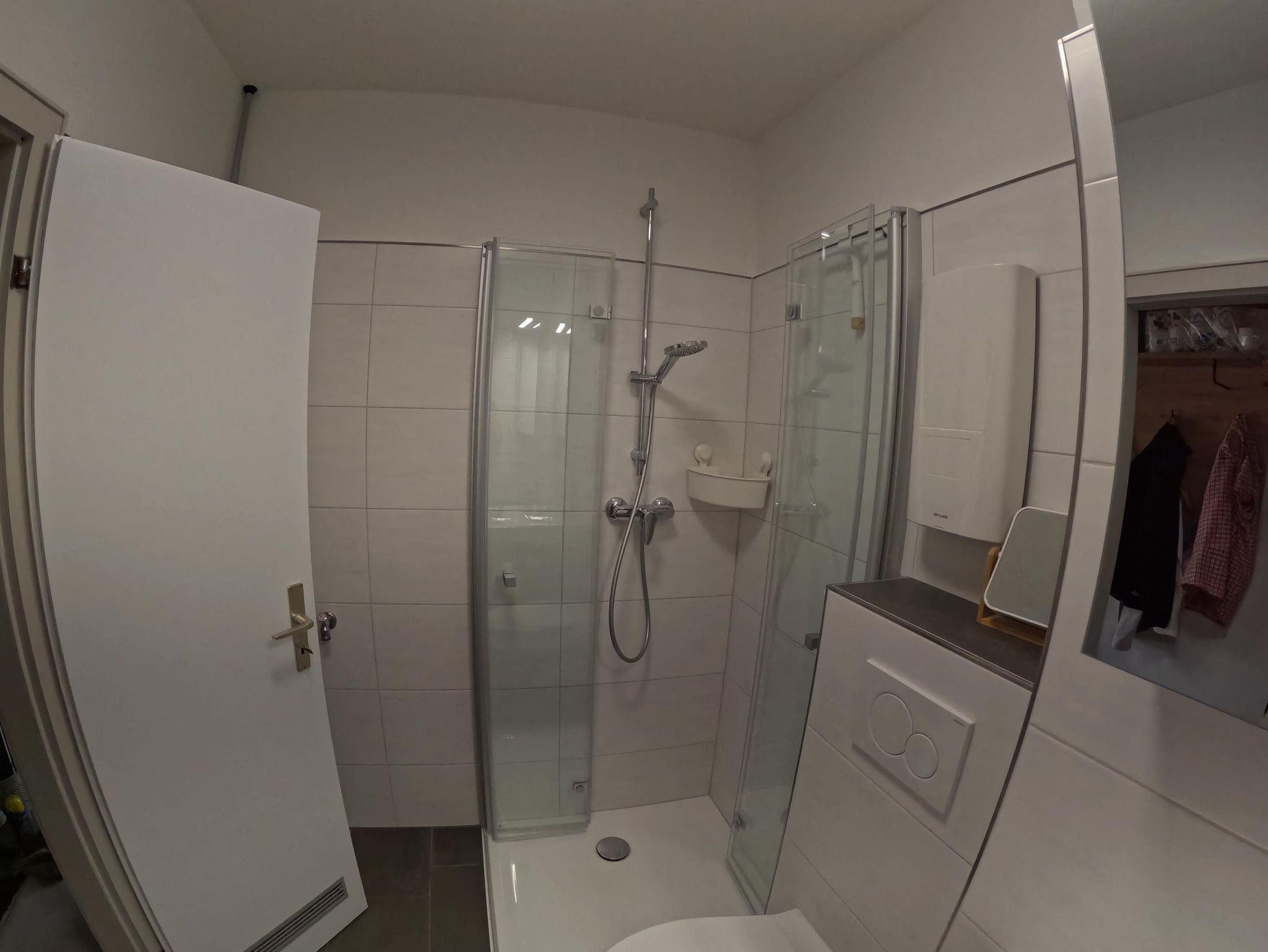 Das stilvoll renovierte Bad (2025) bietet Ihnen modernen Komfort in maritimem Ambiente. Ausgestattet mit einer großzügigen 90 × 80?cm Duschwanne,