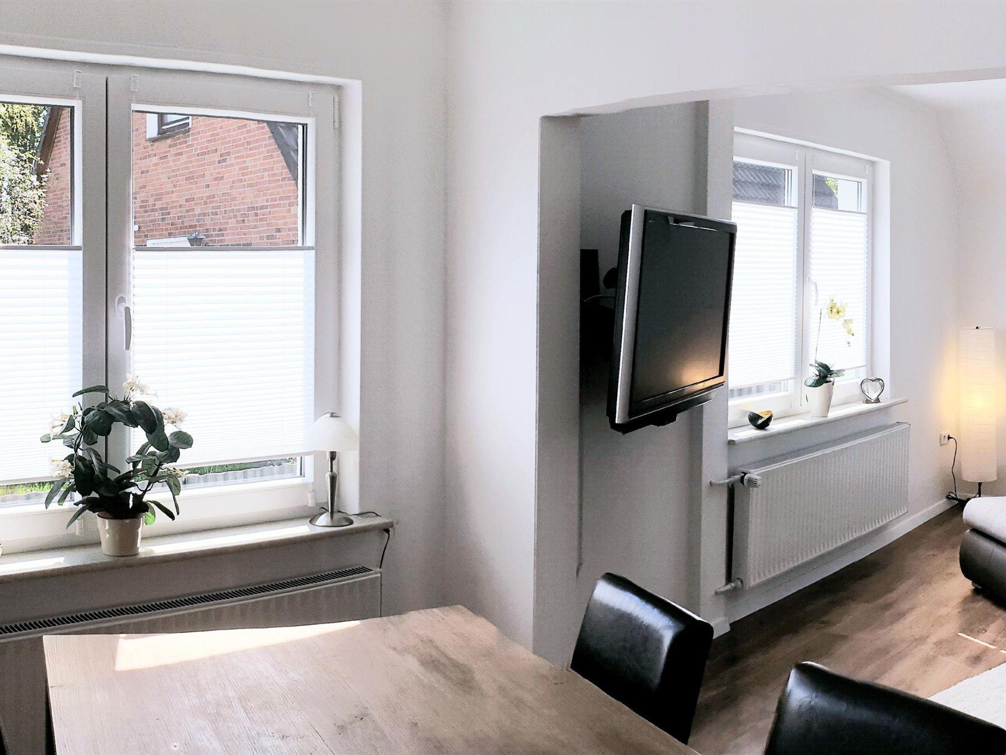 In dem hell und freundlichen Wohn- und Essbereich finden Sie eine gemütliche Couchgarnitur sowie einen Essplatz für 6 Personen vor. Die gegenüberliegende Küche ist mit u.a. genügend Geschirr, Vier-Platten-Herd, Kühl- und Gefrierkombination, Toaster, Kaffeemaschine, Geschirrspüler ausgestattet. 3 Schlafzimmer mit TV (zwei Doppelzimmer und ein Zweibettzimmer) laden zu einem erholsamen Schlaf ein. Im Badezimmer befindet sich eine Regen-Dusche, Waschbereich und das WC. Genießen Sie auch die blickdichte und möblierte Terrasse an warmen Sommertagen (mit Grillecke).