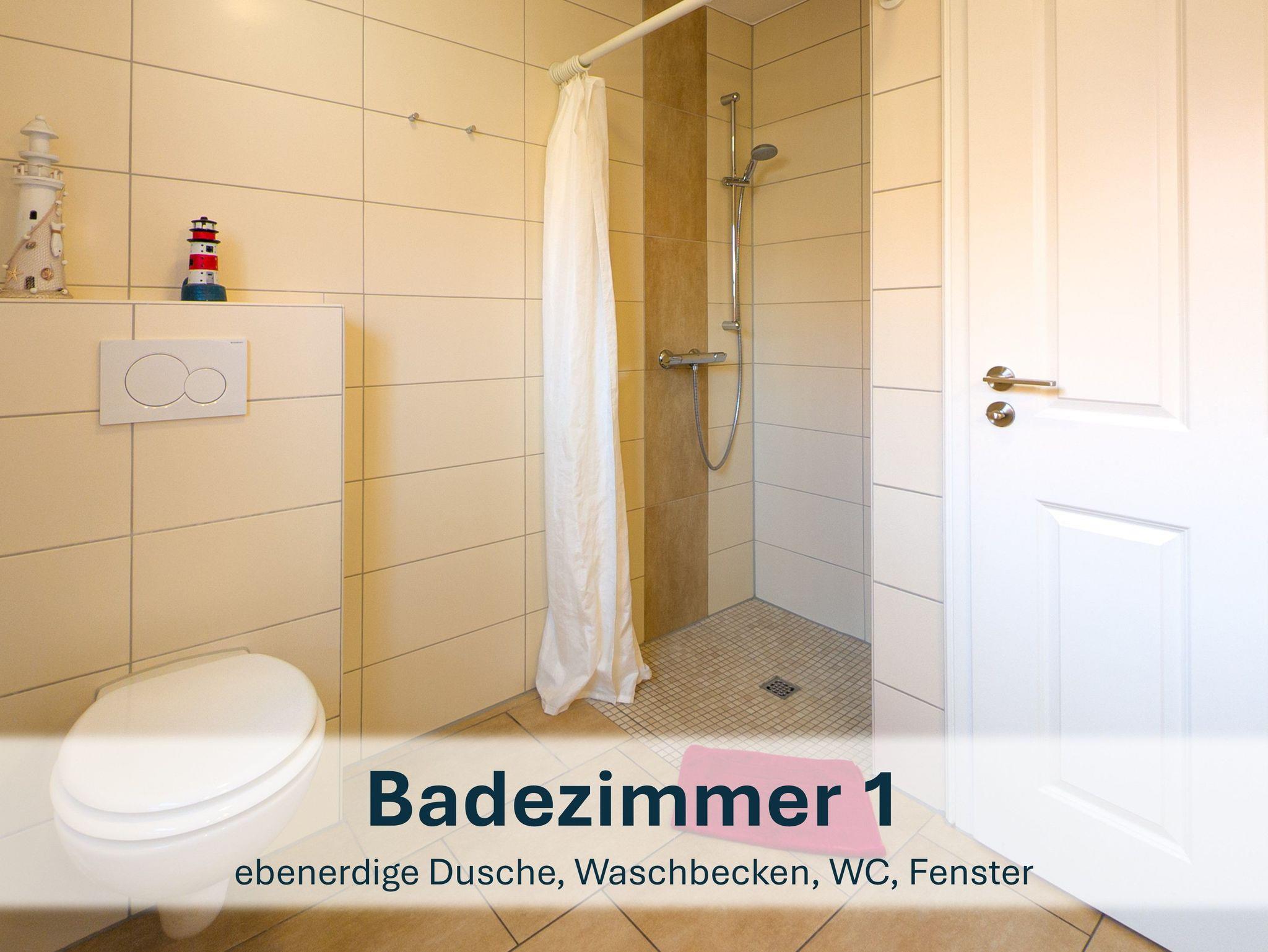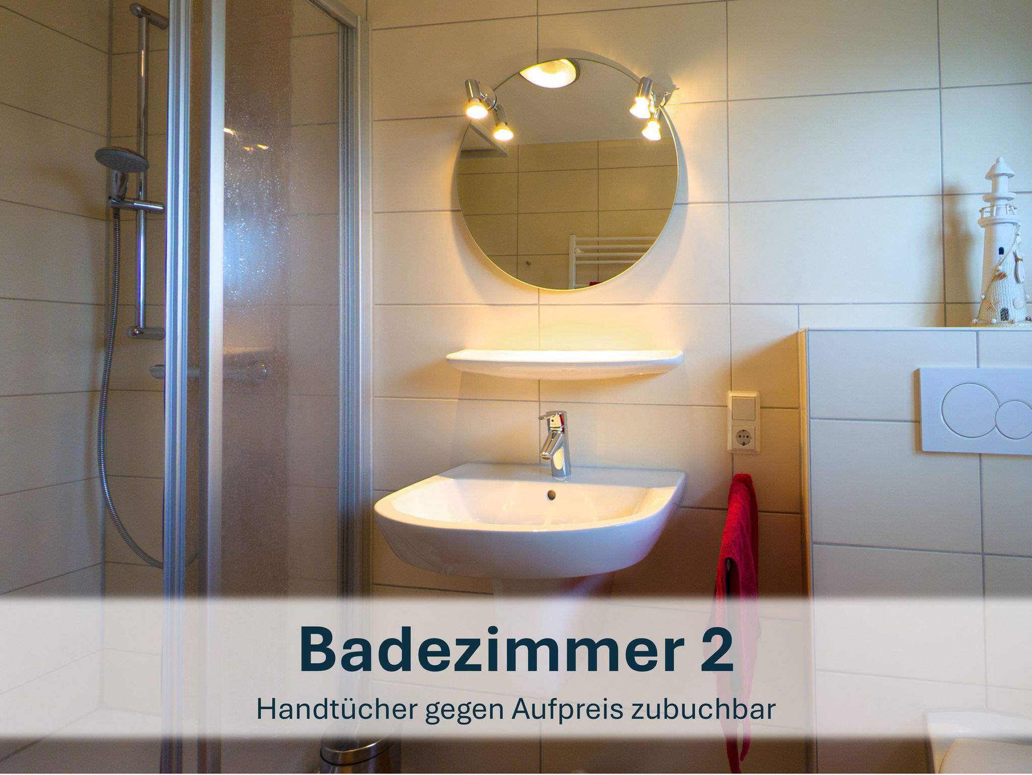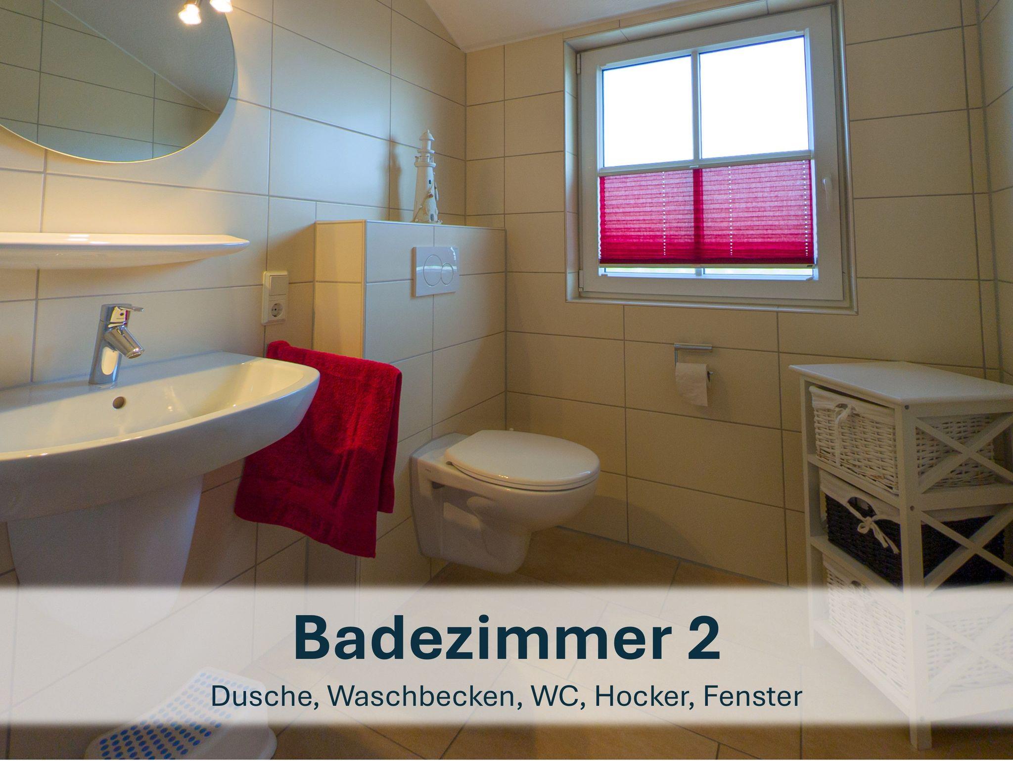 Zwischen den beiden Zimmern liegt das zweite Badezimmer mit Dusche, WC und Waschbecken.