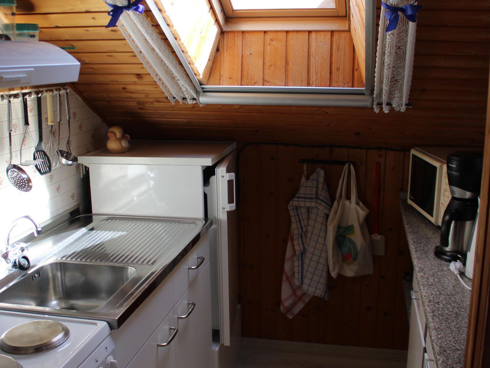 Die Wohnung verfügt über einen offenen Wohnbereich mit gemütlicher Sitzecke (Schlafcouch, TV mit Kabelanschluss und Radio), Essecke und Küchenzeile (Herd, Kühlschrank, Kaffeemaschine, Mikrowelle, Spüle) und WLAN. Das Schlafzimmer ist augestattet mit zwei Einzelbetten, Kleiderschrank und einem Etagenbett für Kinder. Ein modern eingerichtetes Duschbad und eine sonnige Dachterrasse mit Gartenmöbeln, Liegen und Grill runden das Angebot ab.