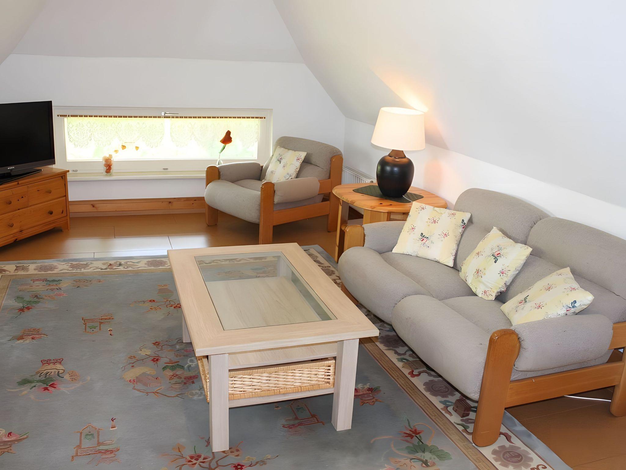 Die gemütlich eingerichtete Ferienwohnung Heidefirst bietet auf 50m² ausreichend Platz für zwei Erwachsene und ein Kleinkind bis 3 Jahre und befindet sich im Obergeschoß eines Reetdachhauses direkt hinter dem Deich. Sie ist über einen separaten Eingang zugänglich und verfügt über eine kleine Terrasse mit Gartenmöbeln.