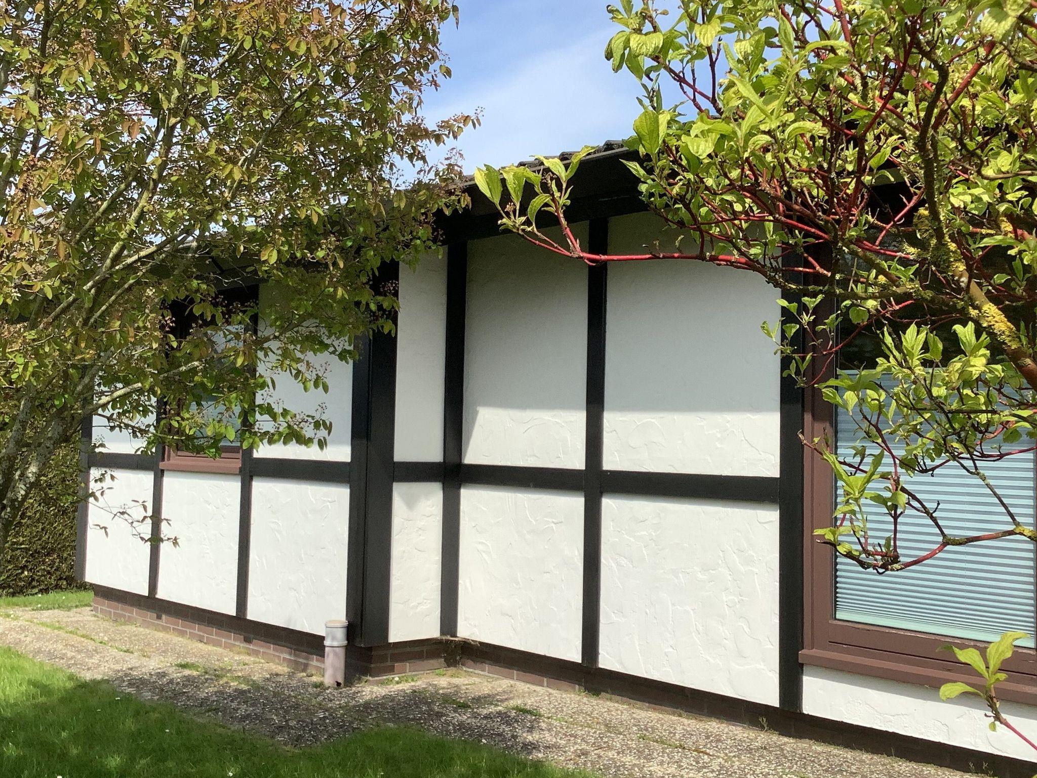 Angelehnt an den traditionellen Fachwerkstil verzaubert das Haus Silbersee nicht nur Freunde der Handwerkskunst. Der Kontrast aus dunklem Holz und der modernen Ausstattung verleiht dem Haus einen besondere Charme. In dem freistehenden Bungalow mit Flachdach finden bis zu 5 Personen Platz. Im großzügigen Wohnraum mit angeschlossener Küche sorgen bodentiefe Fenster für einen angenehmen Lichteinfall. Handverlesene Accessoires und Dekoelemente versetzen Sie gleich bei der Ankunft in Urlaubsstimmung. Für süße Träume sorgen die gemütlichen Betten in den beiden Schlafräumen. Diese sind mit einem Doppelbett bzw. zwei Einzelbetten ausgestattet. Sonnenstunden genießen Sie am besten auf der Außenterrasse, wobei Sie durch geschickte Begrünung vor den Blicken der Nachbarn abgeschirmt werden. Zur Verfügung steht Ihnen außerdem ein Abstellraum. Falls Sie mit dem PKW anreisen, können Sie diesen direkt vor dem Haus parken.