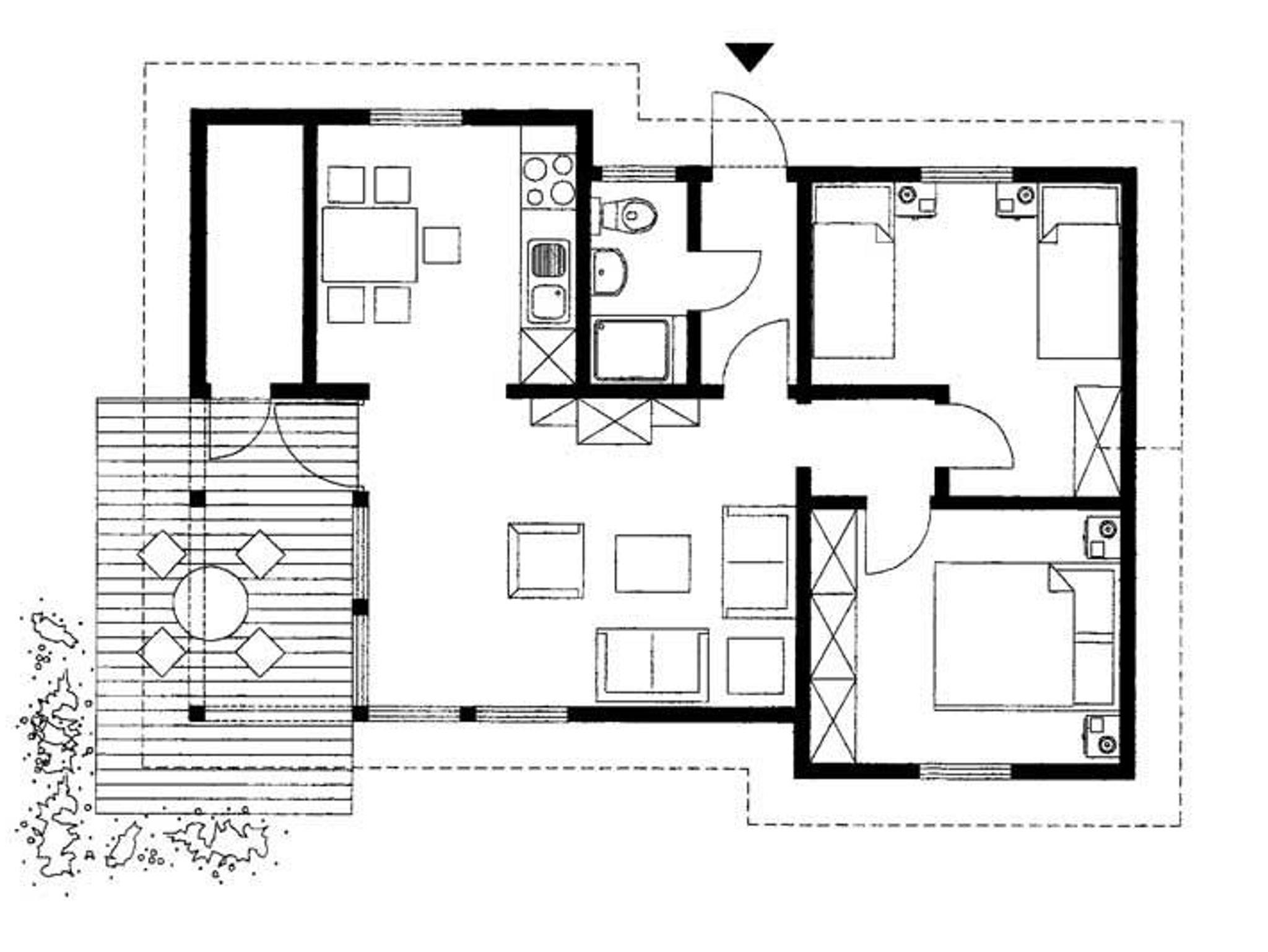 Das erste Schlafzimmer verfügt über ein Doppelbett, das zweite Schlafzimmer über drei Schlafmöglichkeiten, davon eines als Hochbett. Das Badezimmer verfügt über eine Dusche, ein WC und ein Waschbecken. Außerdem können Sie in einem kleinen Abstellraum Ihre Habseligkeiten verstauen.
