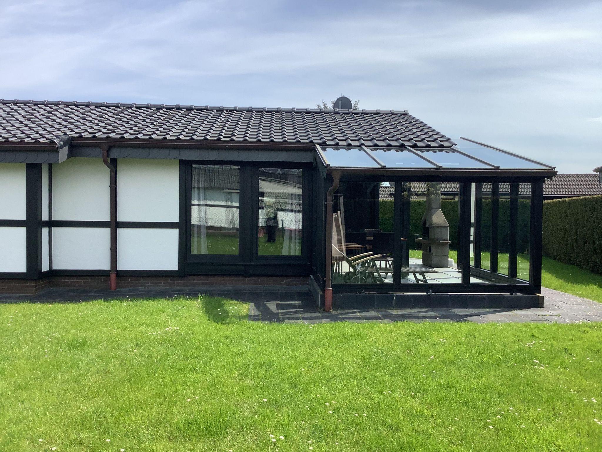 Angelehnt an den traditionellen Fachwerkstil verzaubert das Haus Silbersee nicht nur Freunde der Handwerkskunst. Der Kontrast aus dunklem Holz und der modernen Ausstattung verleiht dem Haus einen besondere Charme. In dem freistehenden Bungalow mit Flachdach finden bis zu 5 Personen Platz. Im großzügigen Wohnraum mit angeschlossener Küche sorgen bodentiefe Fenster für einen angenehmen Lichteinfall. Handverlesene Accessoires und Dekoelemente versetzen Sie gleich bei der Ankunft in Urlaubsstimmung. Für süße Träume sorgen die gemütlichen Betten in den beiden Schlafräumen. Diese sind mit einem Doppelbett bzw. zwei Einzelbetten und einem Hochbett ausgestattet. Sonnenstunden genießen Sie am besten auf der Außenterrasse, wobei Sie durch geschickte Begrünung vor den Blicken der Nachbarn abgeschirmt werden. Zur Verfügung steht Ihnen außerdem ein Abstellraum. Zum Haus gehört ein Carport