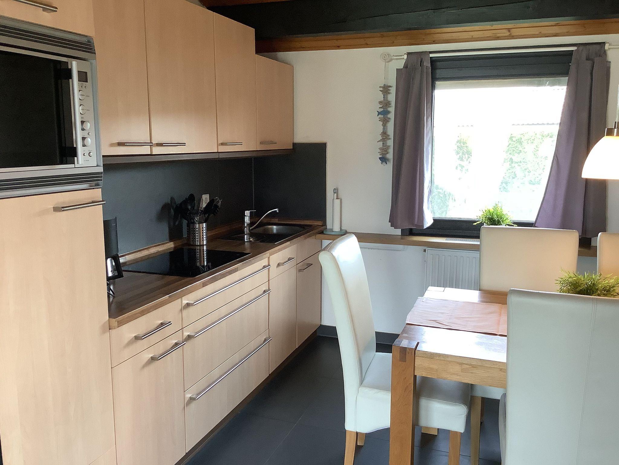 Anschließend am Wohnzimmer befindet sich eine komplett eingerichtete Küche. Auch erwartet Sie hier eine Terrasse. Genießen Sie beim Frühstücken oder Relaxen die Sonnenstrahlen und die frische Nordseeluft! Aber auch außerhalb der Hautsaison ist das Haus ein idealer Ausgangspunkt für Ihre Erkundungen an der Nordseeküste.