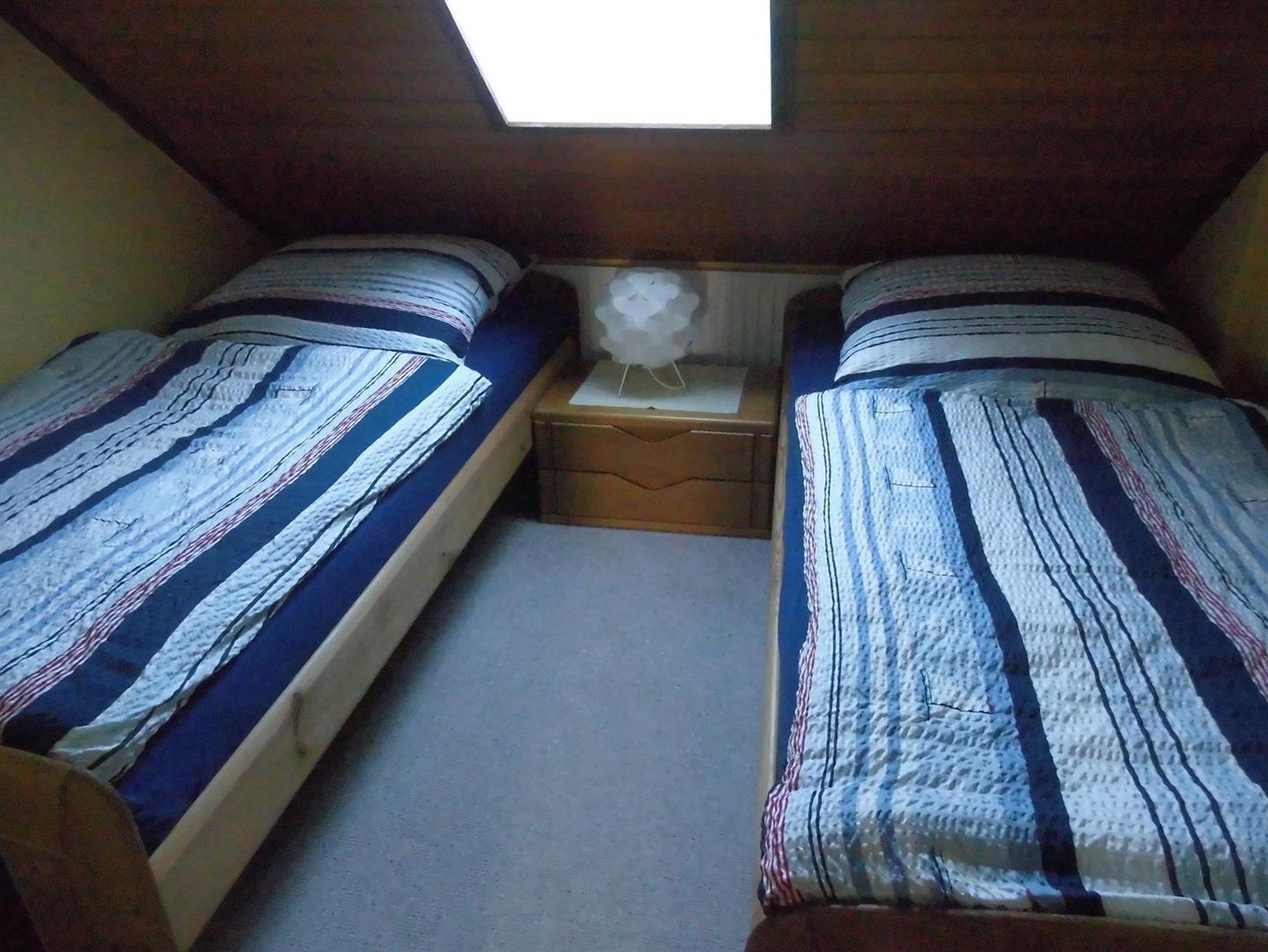 Die Nichtraucher-Ferienwohnung liegt im Obergeschoss. Das Haus befindet sich in einer ruhigen Nebenstraße. Die Wohnung verfügt über ein Wohnzimmer mit Sitzecke, SAT-TV und Radio, eine Küchenzeile mit E-Herd/Backofen, Mikrowelle, Kaffeemaschine, Geschirrspüler und Essecke, ein Schlafzimmer mit Doppelbett und gr. Kleiderschrank. Bei Bedarf kann ein Kinderbett kostenlos aufgestellt werden. Im Kinderzimmer steht ein Ausziehbett. Das Badezimmer ist mit Dusche/WC ausgestattet.