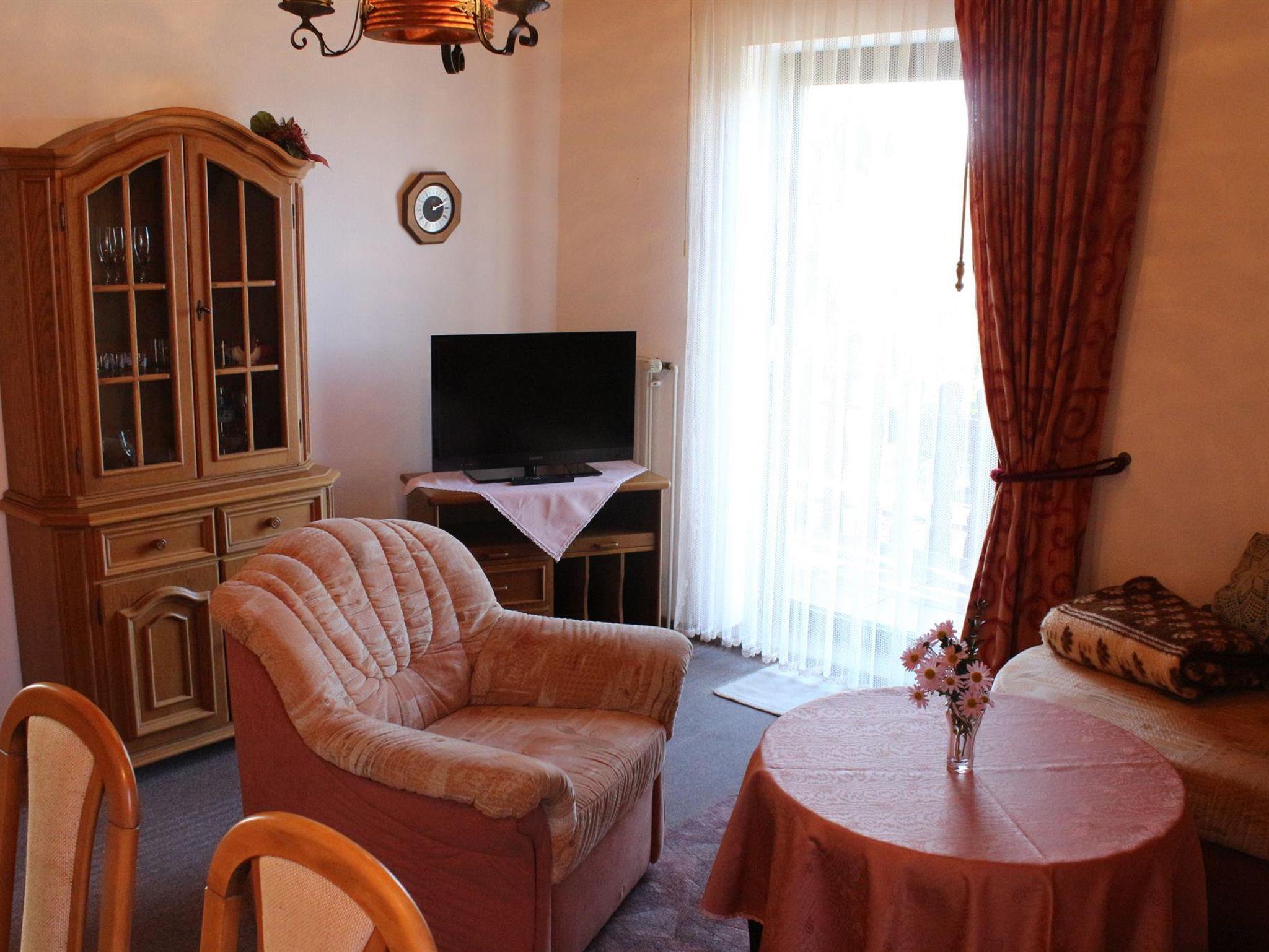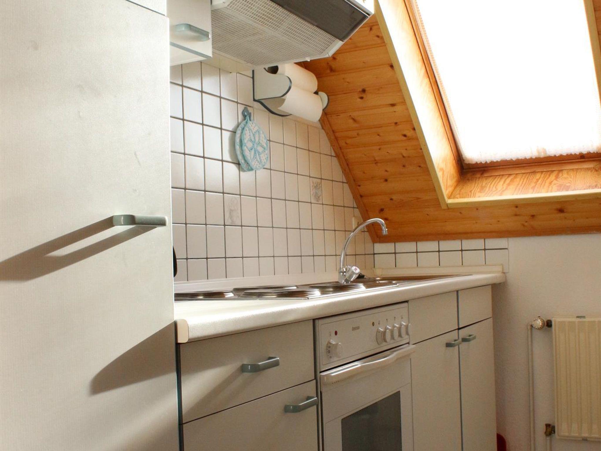 Die Ferienwohnung liegt im 1. Obergeschoss und hat eine Wohnküche mit gemütlicher Sofaecke (Schlafsofa), TV, Essecke, und einer Küchenzeile mit Kühlschrank, Backofen, Kaffeemaschine, Wasserkocher. Ein Schlafzimmer mit zwei Einzelbetten und Kleiderschrank, ein zusätzliches Schlafzimmer mit 2 Einzelbetten und Kleiderschrank und ein Bad mit Dusche, WC und Waschtisch steht Ihnen zur Verfügung. Im Garten finden Sie eine Gemeinschaftsterrasse mit Gartengrill, wo man den Urlaubstag schön ausklingen lassen kann. Ein Fahrradschuppen steht ebenfalls zur Verfügung.