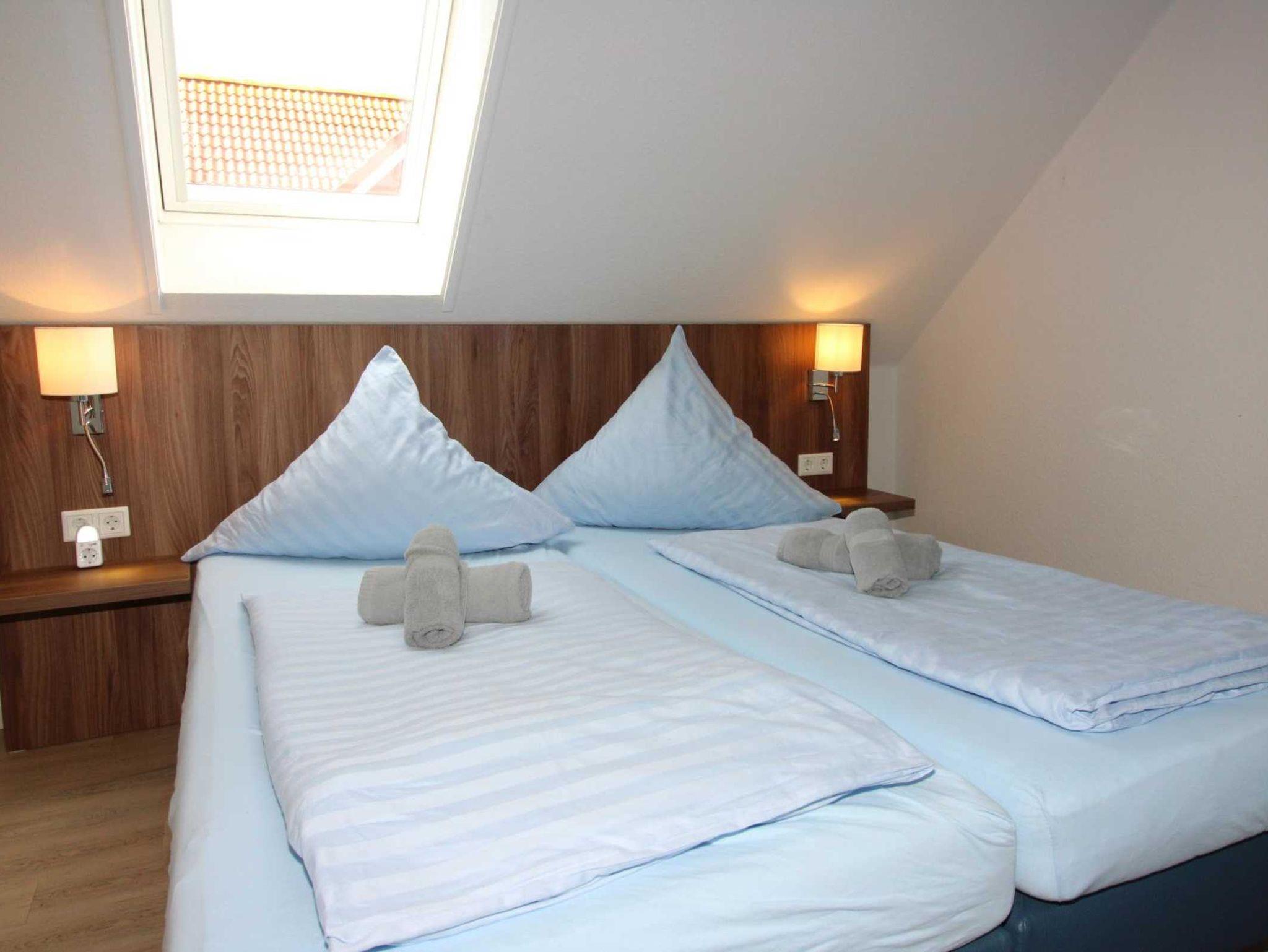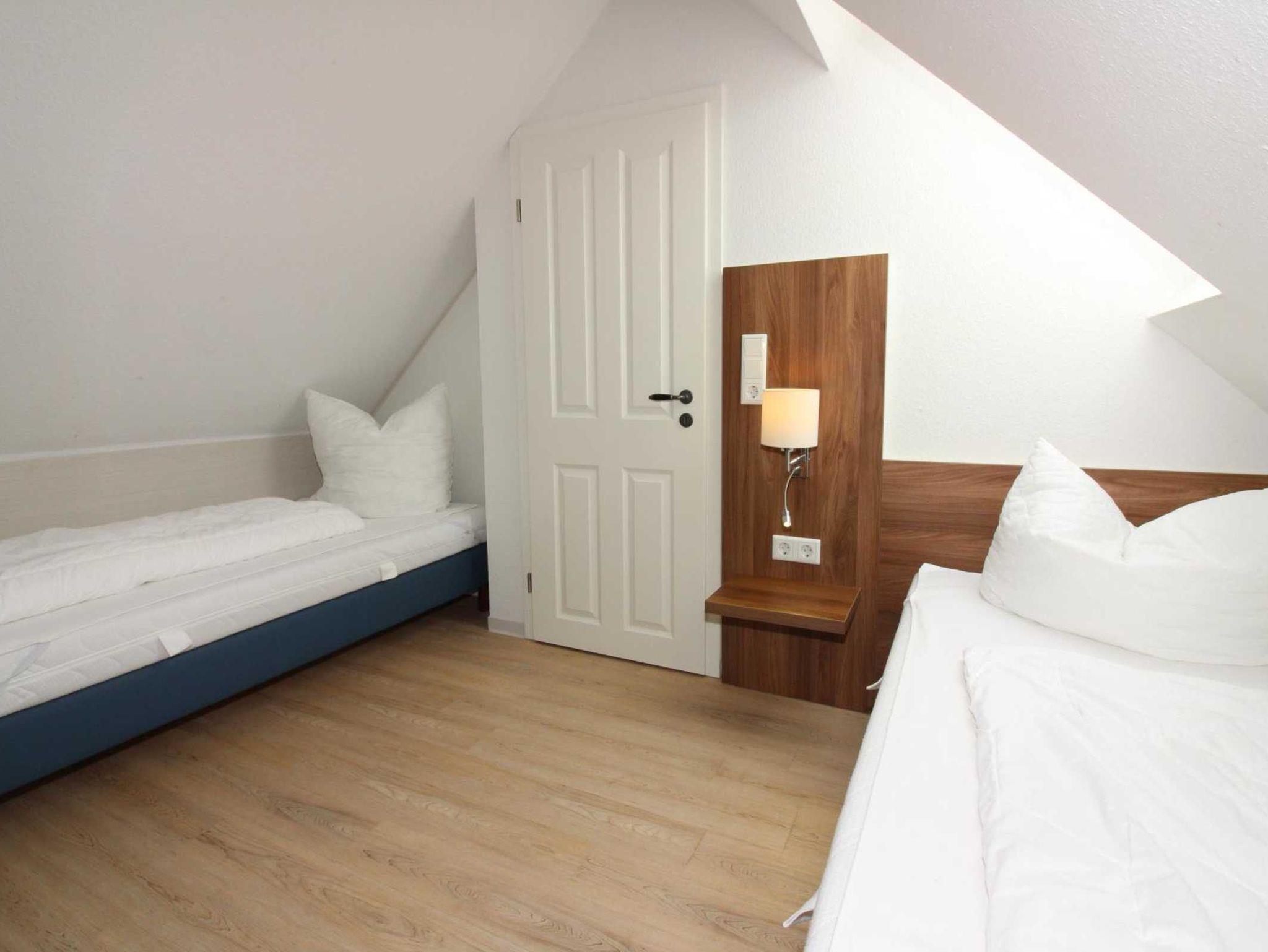 Im Dachgeschoss befindet sich ein weiterer Schlafraum mit zwei getrennten Betten, Kleiderschrank und Schreibtisch.