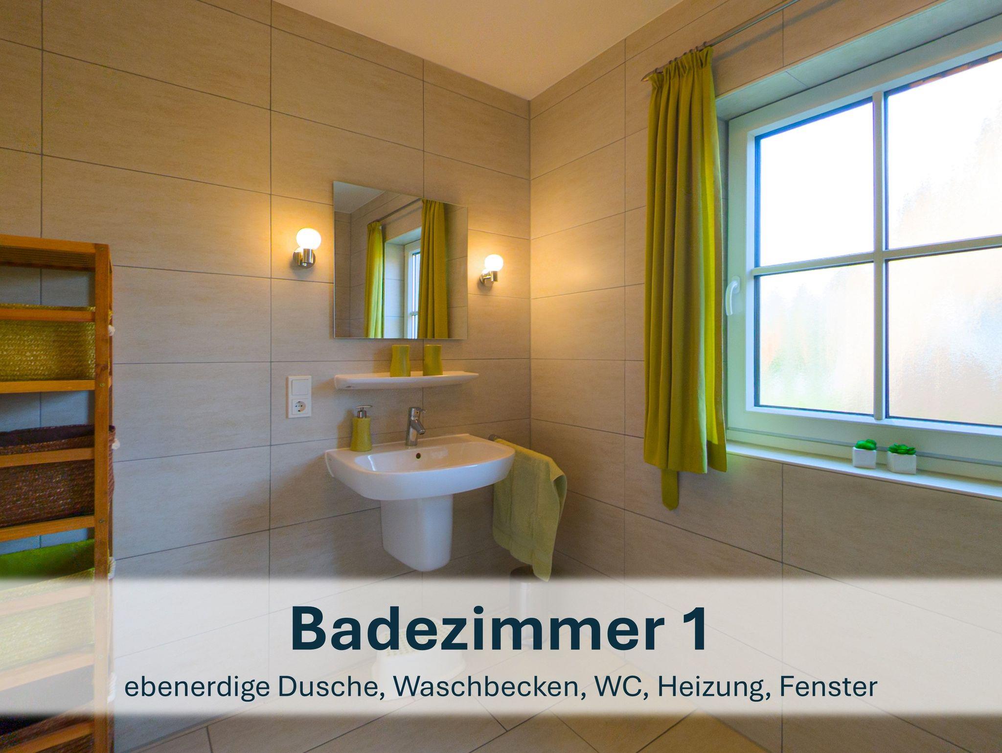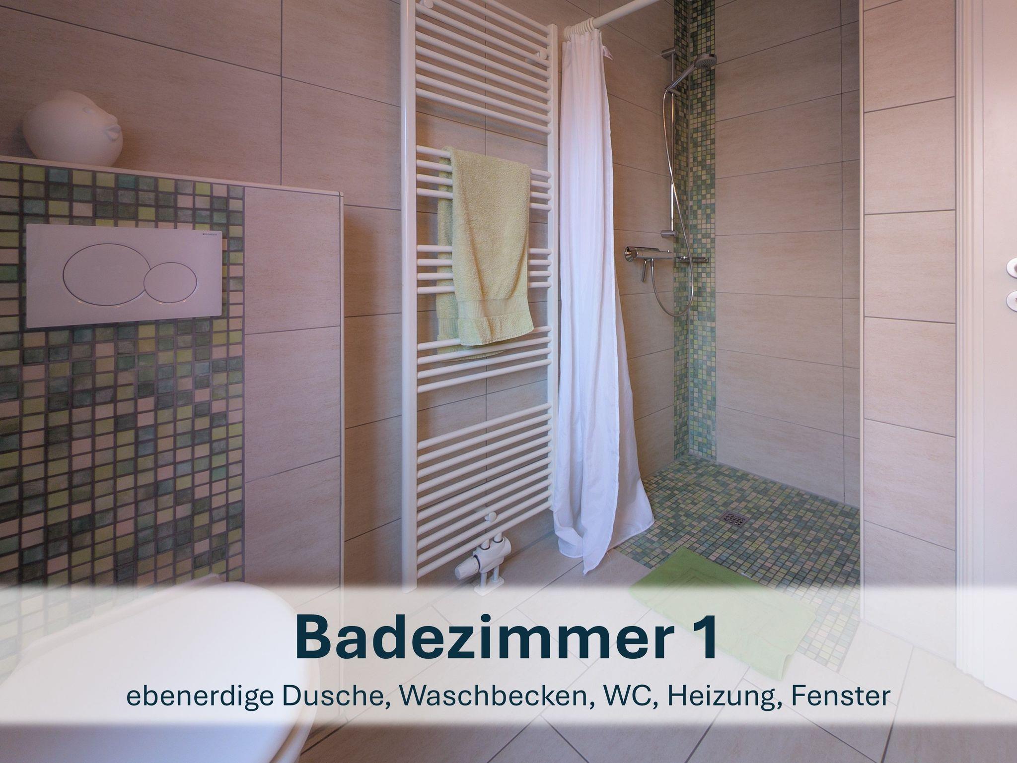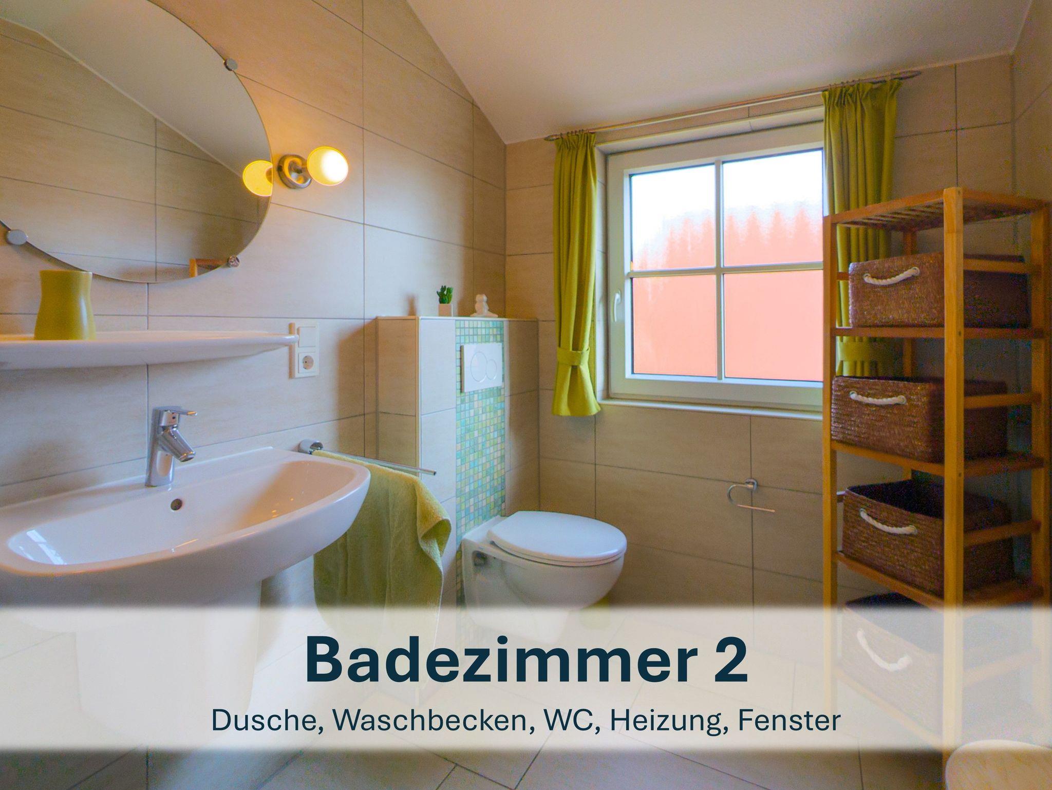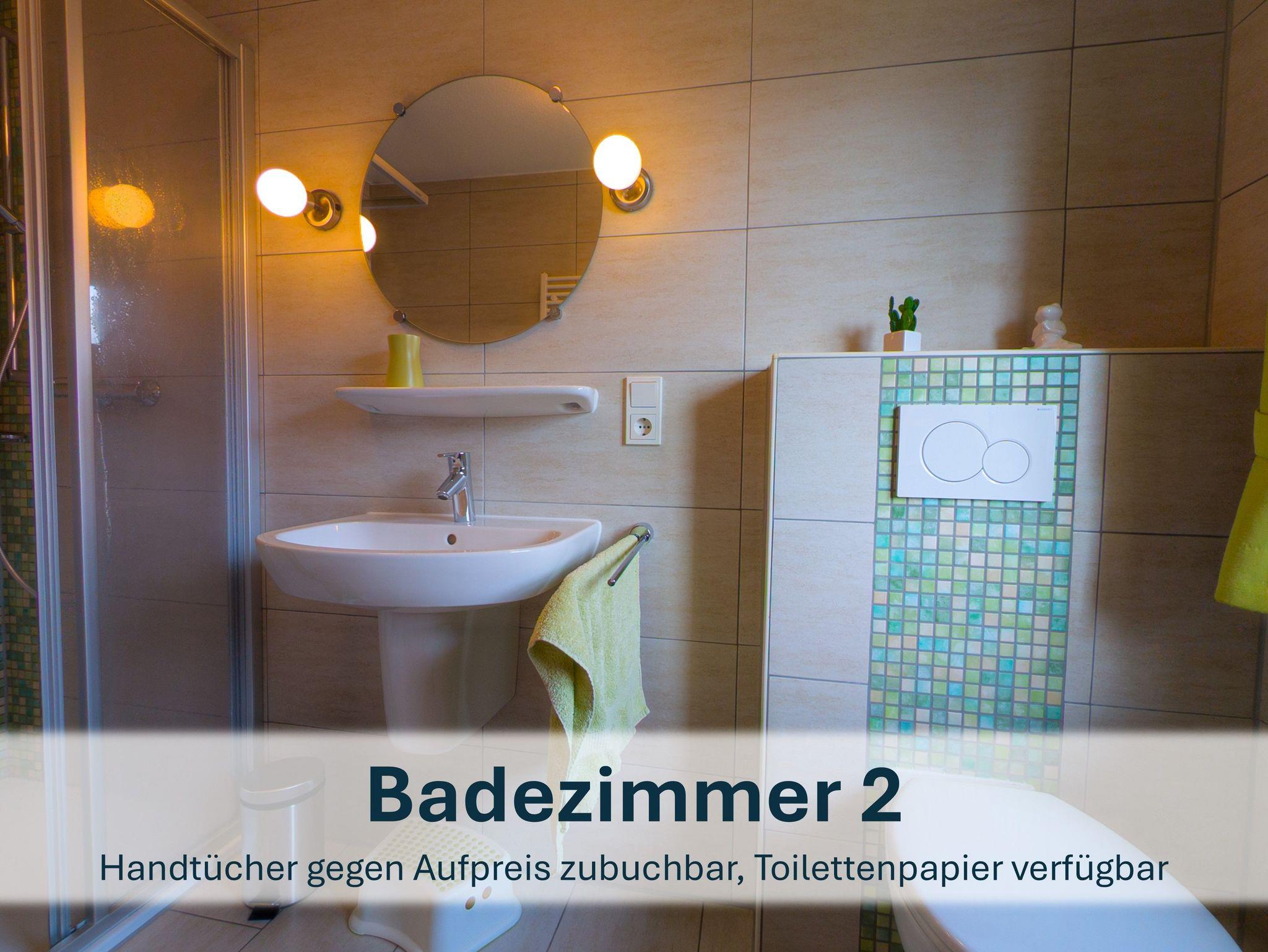 Zwischen den beiden Zimmern liegt das zweite Badezimmer mit Dusche, WC und Waschbecken.