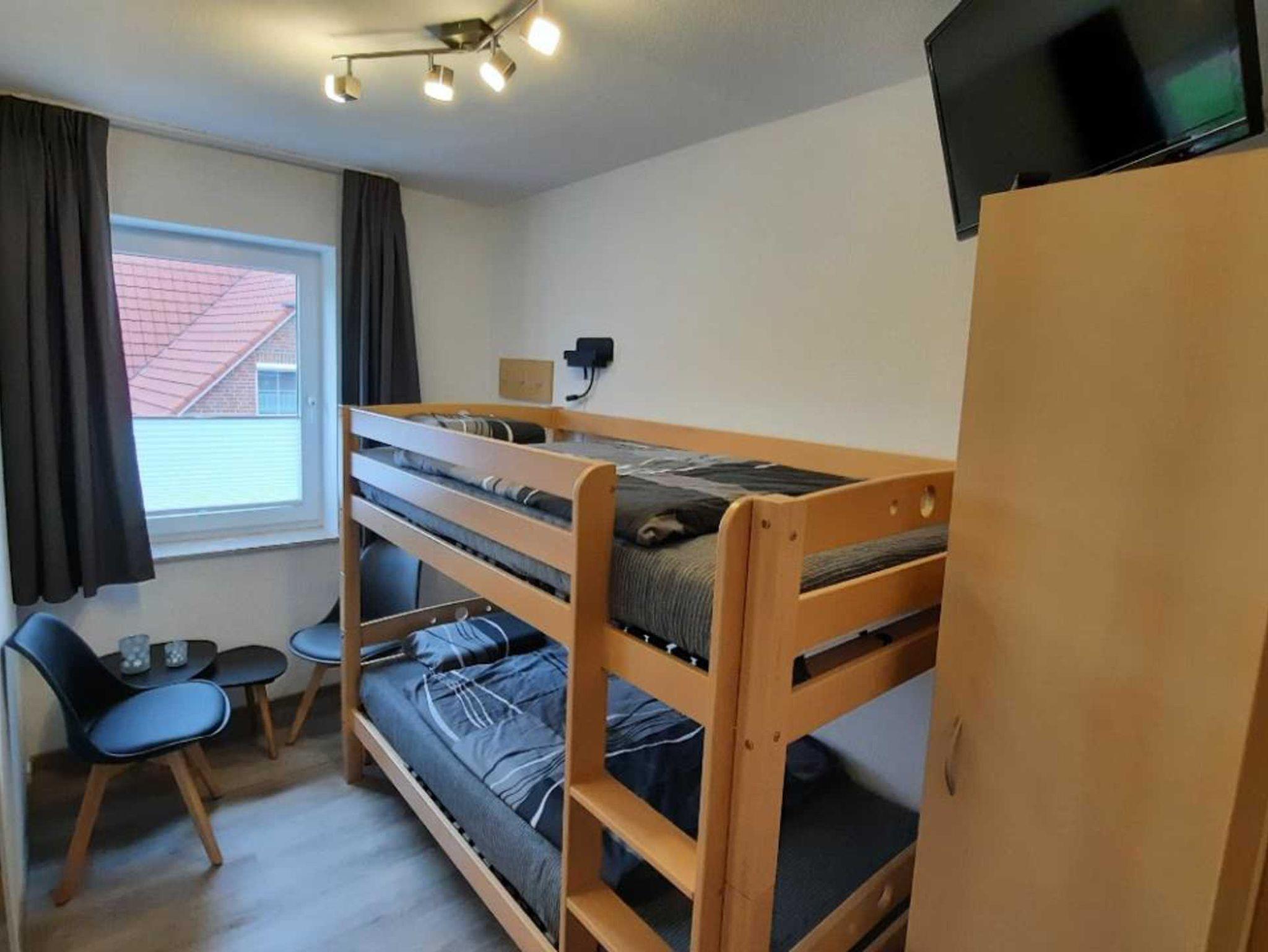 Ein Schlafzimmer verfügt über ein Doppelbett (200 cm x 200 cm), das andere ist mit einem Etagenbett (90 cm x 200 cm) ausgestattet. Beide Schlafzimmer verfügen über TV Geräte, sowie USB-Ladestationen direkt am Bett.