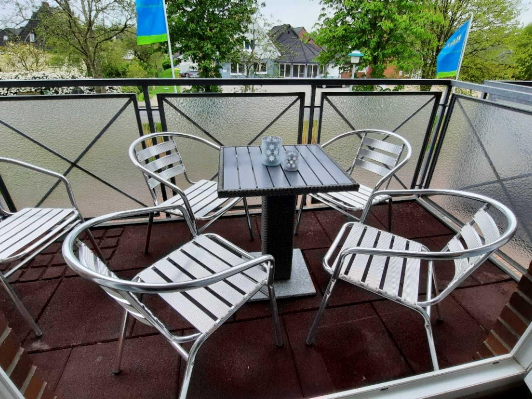 Der kleine aber gemütliche Balkon mit Deichblick lädt zum Verweilen ein.