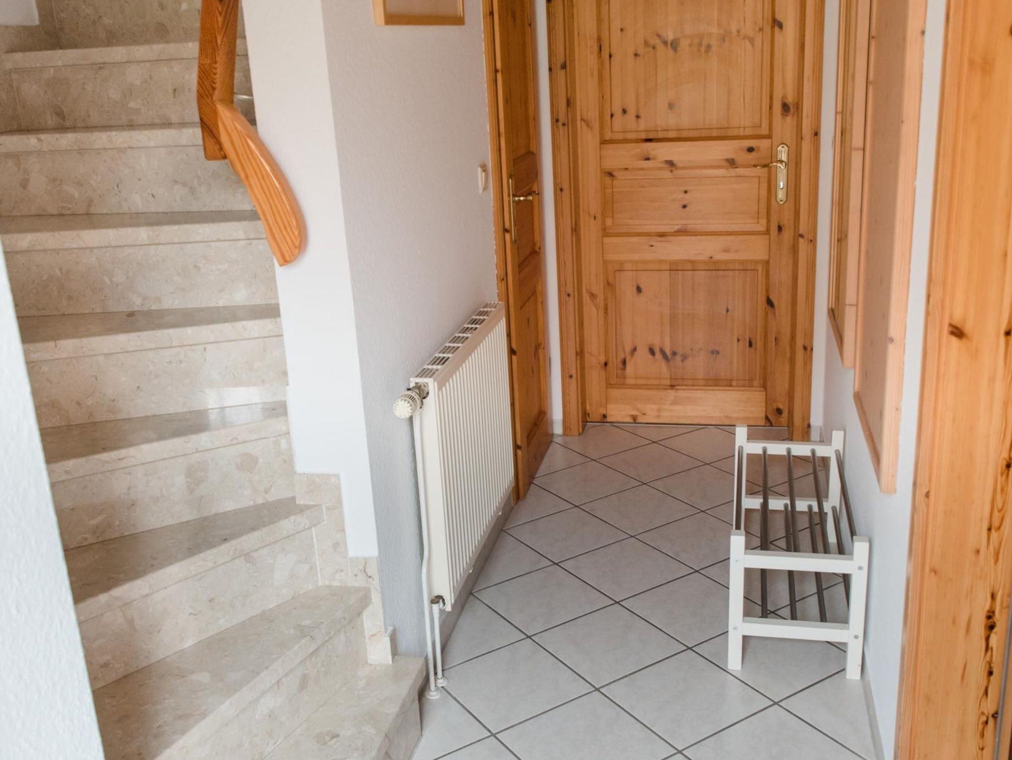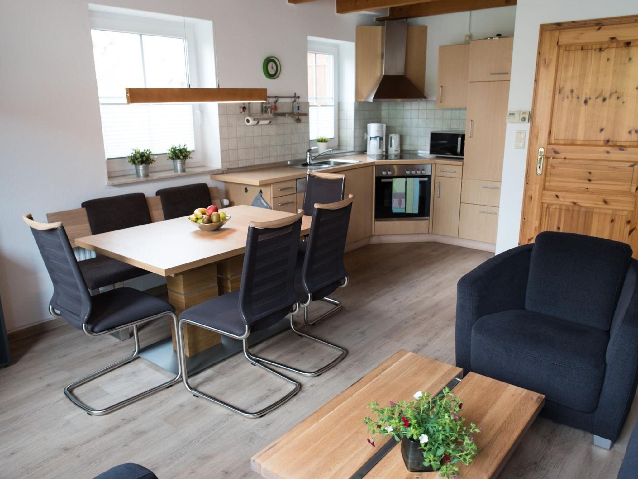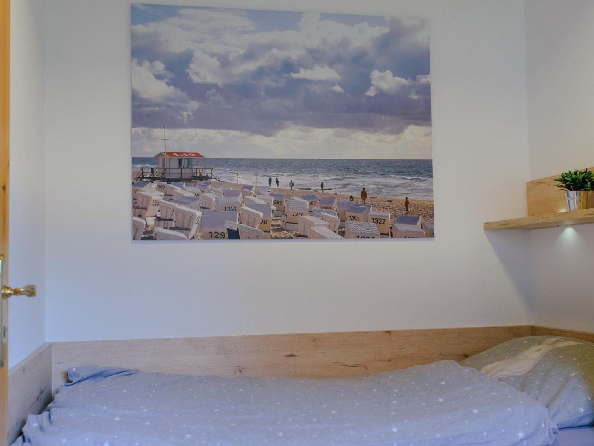 Im Erdgeschoss geht man durch den Flur in einen gemütlichen Wohnbereich mit bequemen Sitzmöbeln. Flat-TV, Hi-Fi-Anlage, CDs und Bücherecke stehen den Gästen zur Verfügung. Ein Esstisch für sechs Personen und eine gut ausgestattete Küche mit allen üblichen Geräten sind selbstverständlich vorhanden. Hier befindet sich noch ein Schlafraum mit zwei Einzelbetten und ausreichendem Stauraum, ebenso eine Nasszelle.