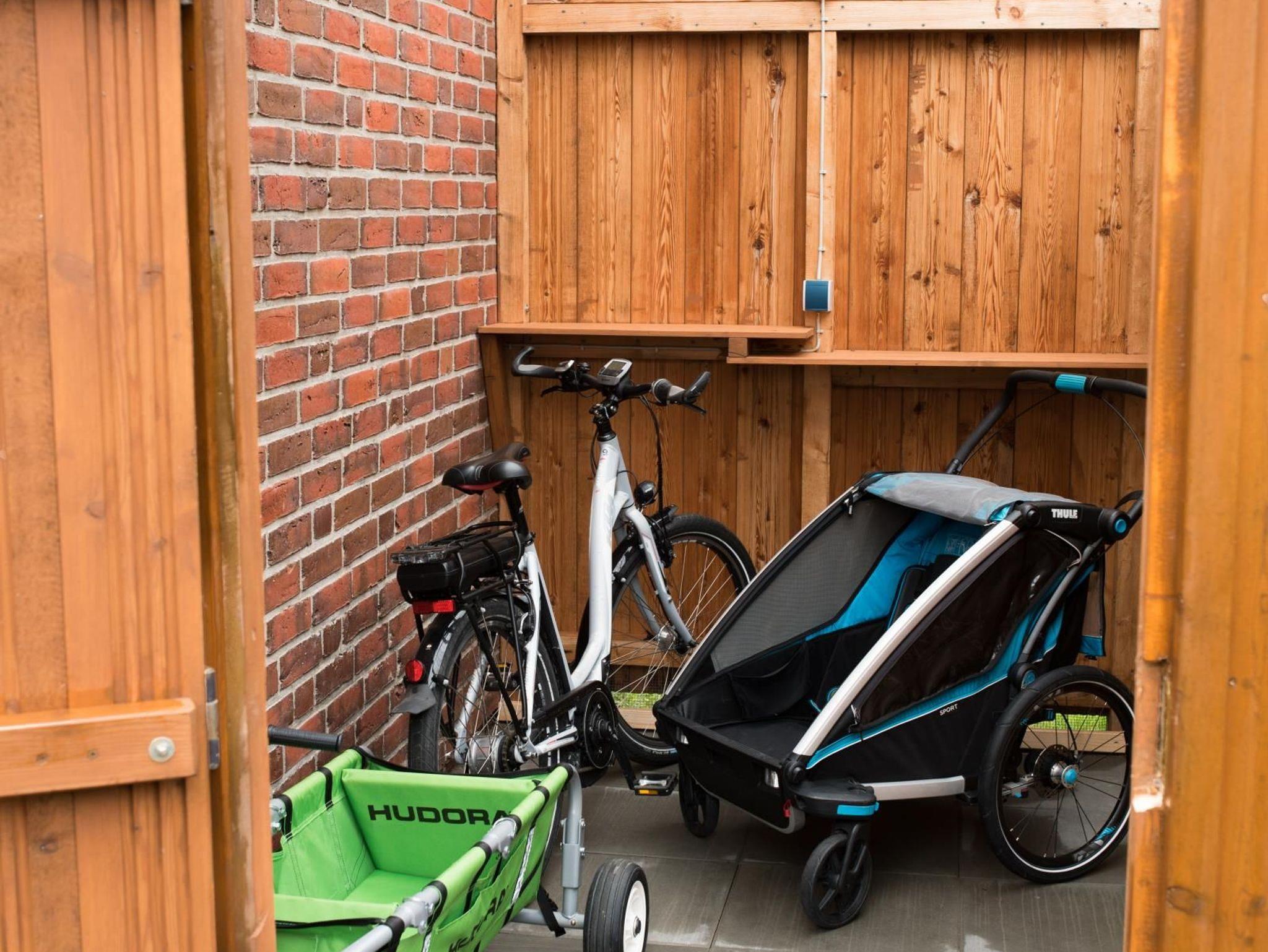 Zwei Tische, sechs Stühle, Sonnenschirm mit UV-Schutz, Grill und Kinderspielzeug sind in dem angrenzenden Schuppen untergebracht. Besonders zu erwähnen ist ein zusätzlicher abschließbarer Anbau direkt am Haus mit sehr viel Platz für Fahrräder, Kinderwagen, Bollerwagen etc. Ein Stromanschluss ermöglicht auch das Aufladen von E-Bikes! So kann Ihr gesamter „Fuhrpark absolut sicher untergebracht werden!