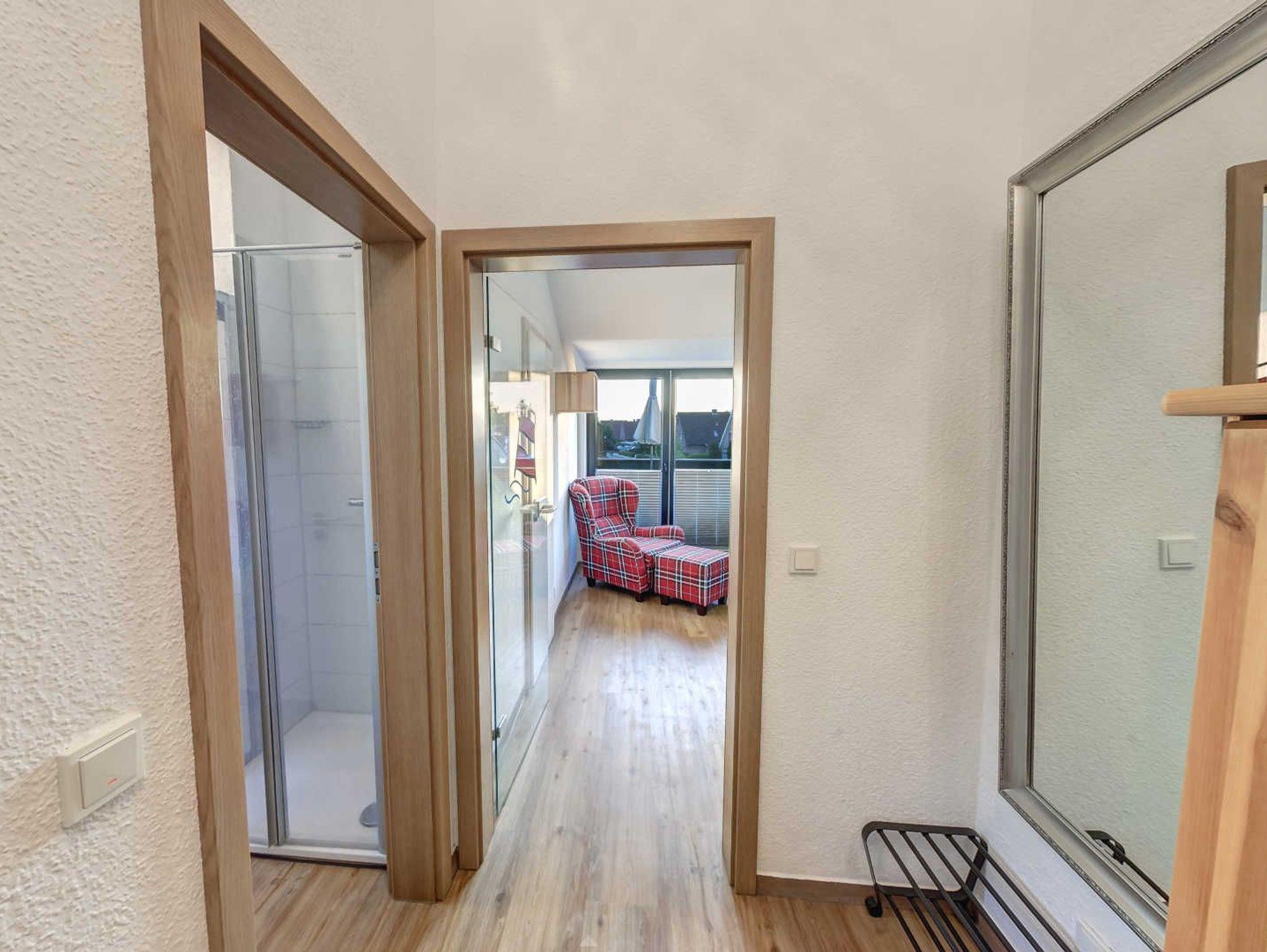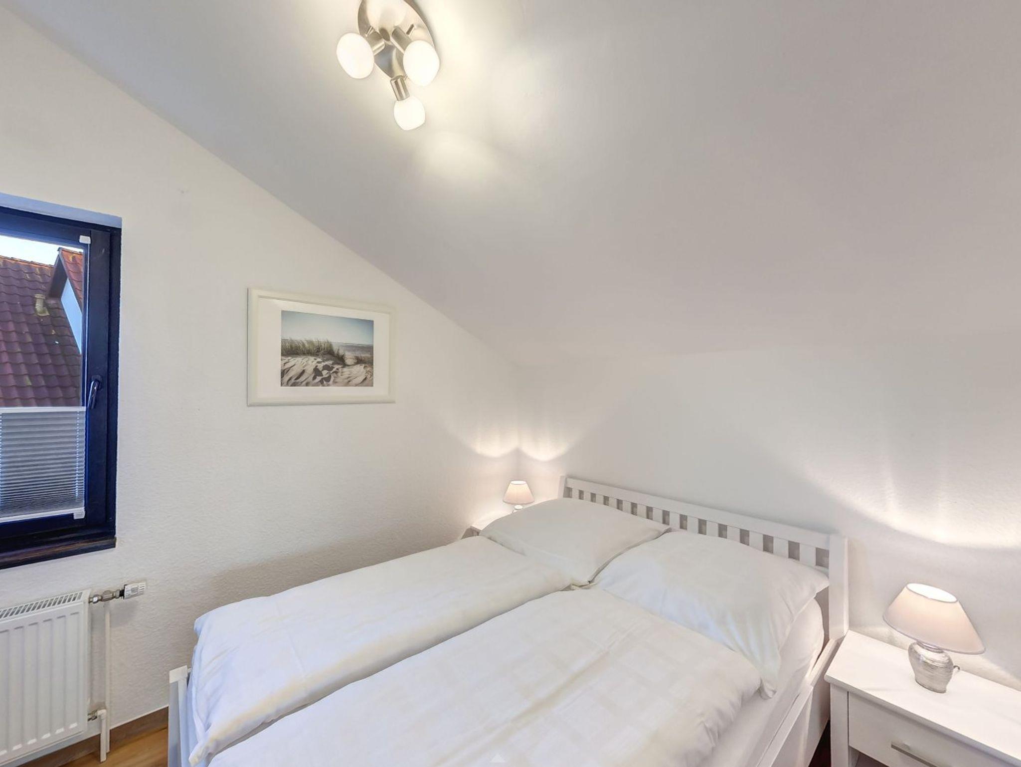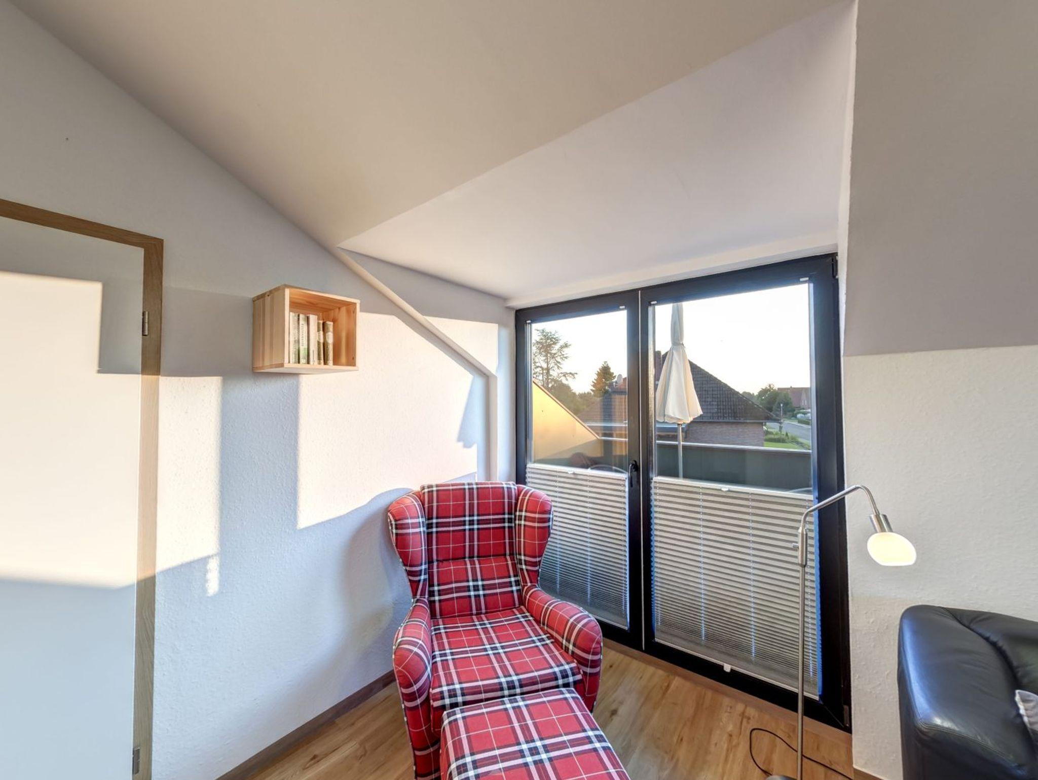 Das Appartement Pia liegt im Obergeschoss eines Ferienhauses und bietet auf 50m² ausreichend Platz für bis zu vier Erwachsene und ein Kleinkind. Über eine Treppe gelangen Sie in die Wohnung, dort liegt auf der linken Seite das erste Schlafzimmer mit einem großen Doppelbett, Wäschekorb, Flat-TV und einer Holzkommode. Direkt daneben liegt das Badezimmer mit Dusche, WC und Waschbecken. Über den Flur können Sie in den großzügigen Wohnbereich treten, wo Sie eine komfortable Couch, ein Ohrensessel, ein Radio und ein Flat-TV erwarten. Von hier können Sie auf Ihren privaten und möblierten Balkon treten. Genießen Sie hier zu jeder Zeit das herrliche Nordseewetter.