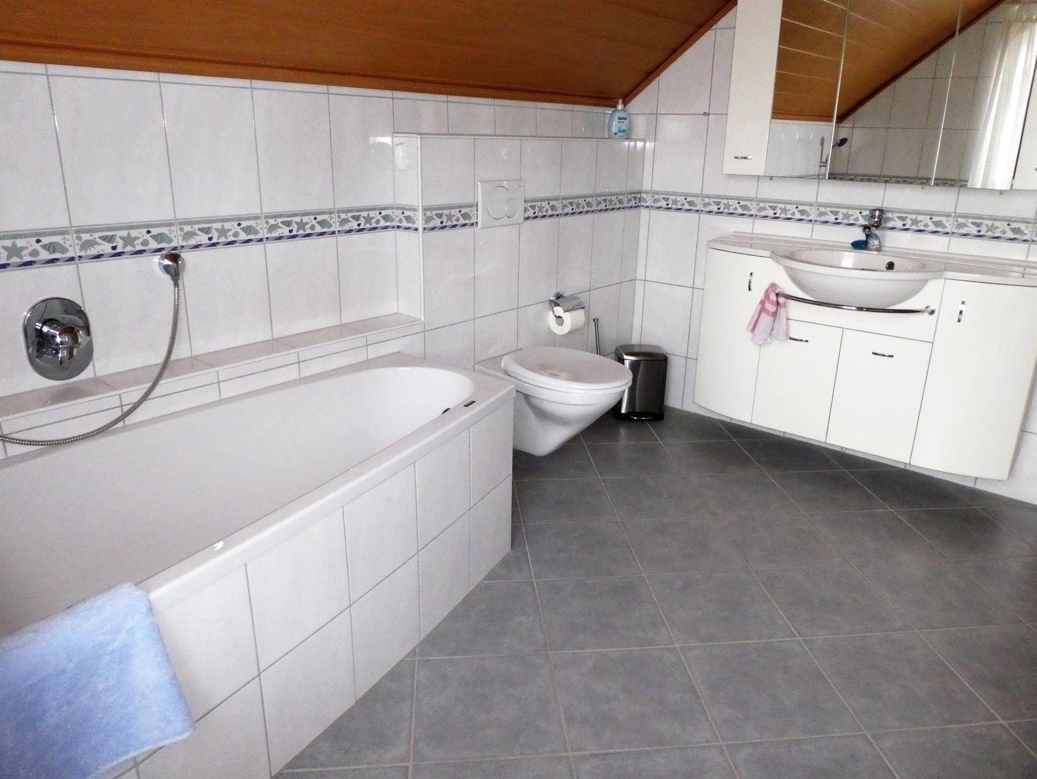 Das renovierte Badezimmer hat Wanne und Dusche. Ein Autostellplatz sowie Einstellplätze für Fahrräder stehen Ihnen zur Verfügung.