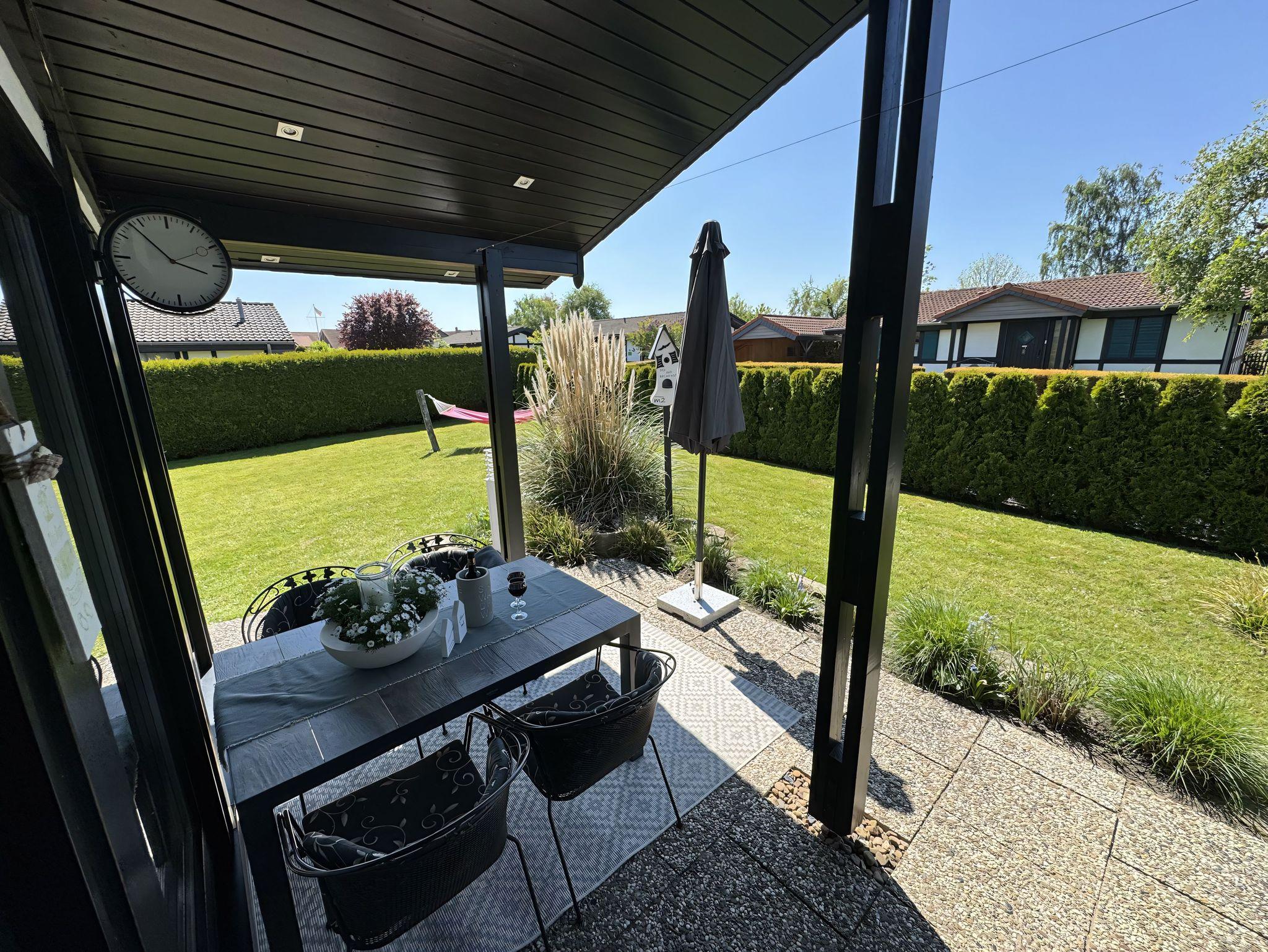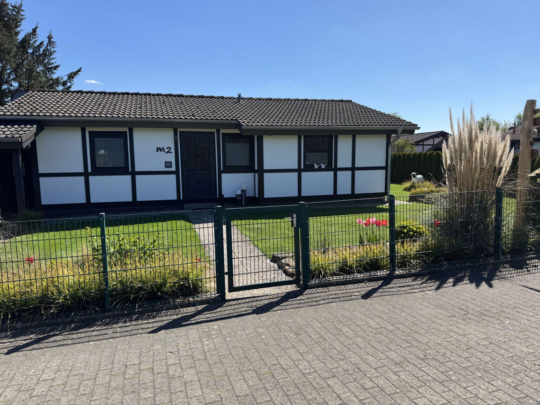 Angelehnt an den traditionellen Fachwerkstil verzaubert das Haus Silbersee nicht nur Freunde der Handwerkskunst. Der Kontrast aus dunklem Holz und der modernen Ausstattung verleiht dem Haus einen besondere Charme. In dem freistehenden Bungalow mit Flachdach finden bis zu 5 Personen Platz. Im großzügigen Wohnraum mit angeschlossener Küche sorgen bodentiefe Fenster für einen angenehmen Lichteinfall. Handverlesene Accessoires und Dekoelemente versetzen Sie gleich bei der Ankunft in Urlaubsstimmung. Für süße Träume sorgen die gemütlichen Betten in den beiden Schlafräumen. Diese sind mit einem Doppelbett bzw. zwei Einzelbetten und einem Hochbett sowie TV ausgestattet. Sonnenstunden genießen Sie am besten auf der Außenterrasse, wobei Sie durch geschickte Begrünung vor den Blicken der Nachbarn abgeschirmt werden. Zur Verfügung steht Ihnen außerdem ein Abstellraum. Falls Sie mit dem PKW anreisen, können Sie diesen direkt vor dem Haus parken.