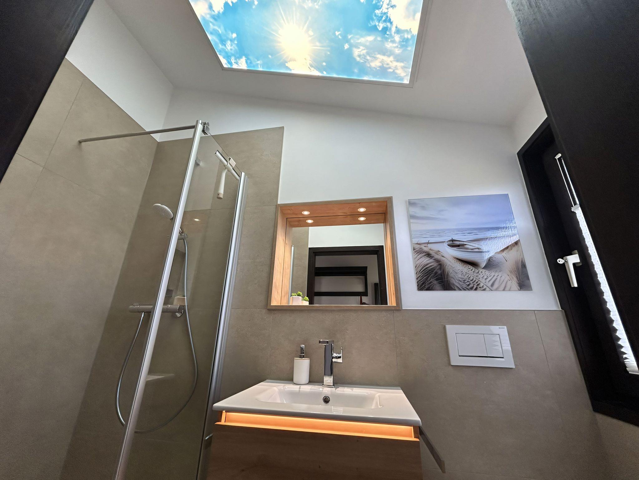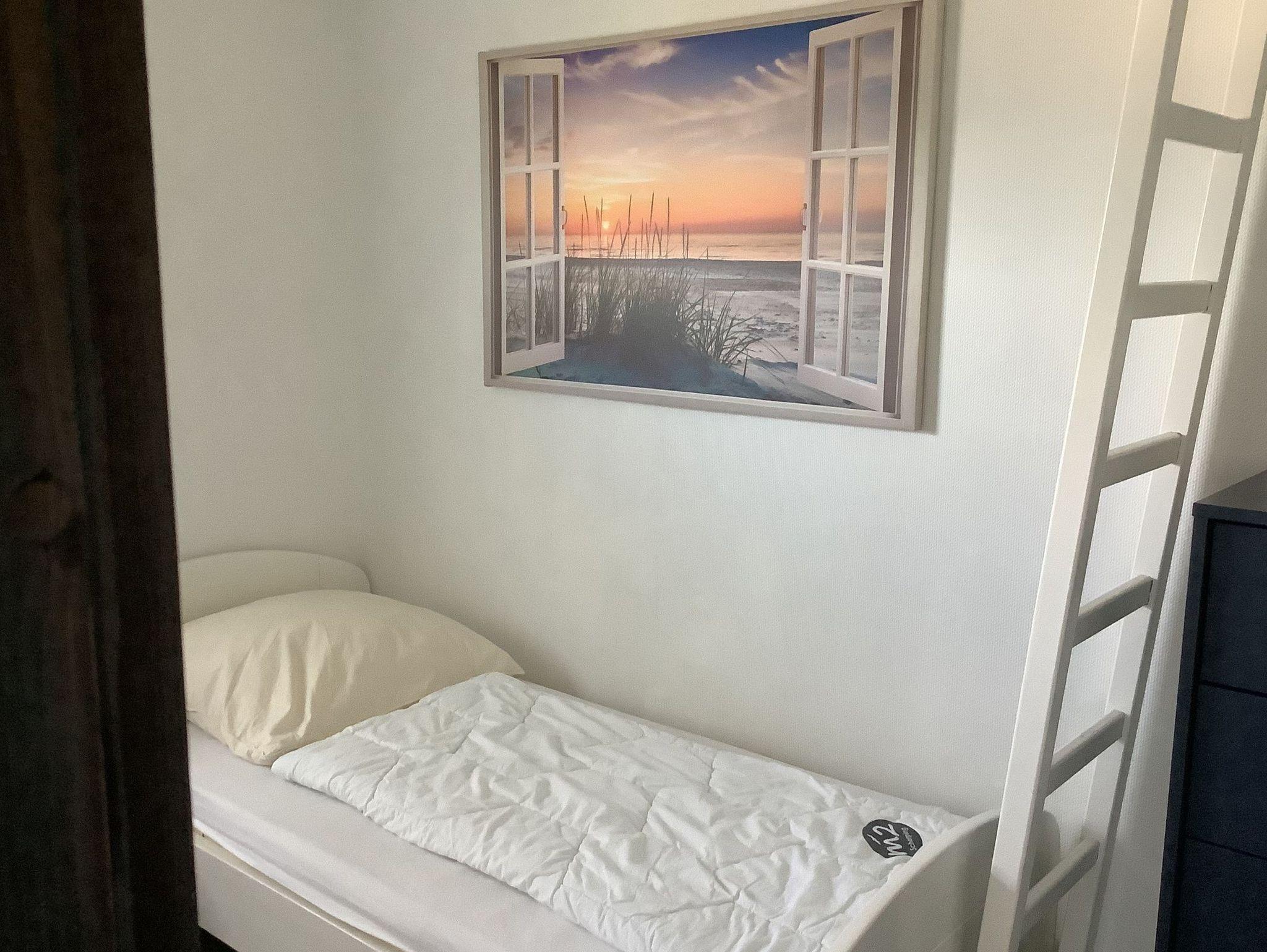 Das erste Schlafzimmer verfügt über ein Doppelbett, das zweite Schlafzimmer über drei Schlafmöglichkeiten, davon eines als Hochbett. Das Badezimmer verfügt über eine Dusche, ein WC und ein Waschbecken. Außerdem können Sie in einem kleinen Abstellraum Ihre Habseligkeiten verstauen.