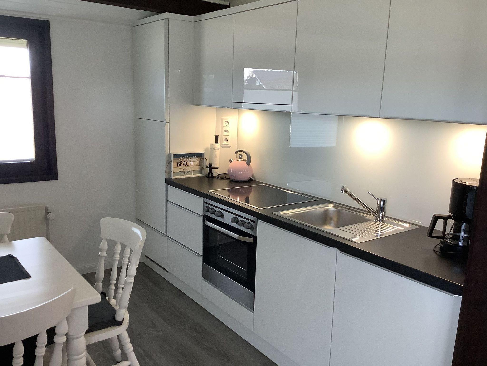 Anschließend am Wohnzimmer befindet sich eine komplett eingerichtete Küche. Auch erwartet Sie hier eine Terrasse. Genießen Sie beim Frühstücken oder Relaxen die Sonnenstrahlen und die frische Nordseeluft! Aber auch außerhalb der Hautsaison ist das Haus ein idealer Ausgangspunkt für Ihre Erkundungen an der Nordseeküste.