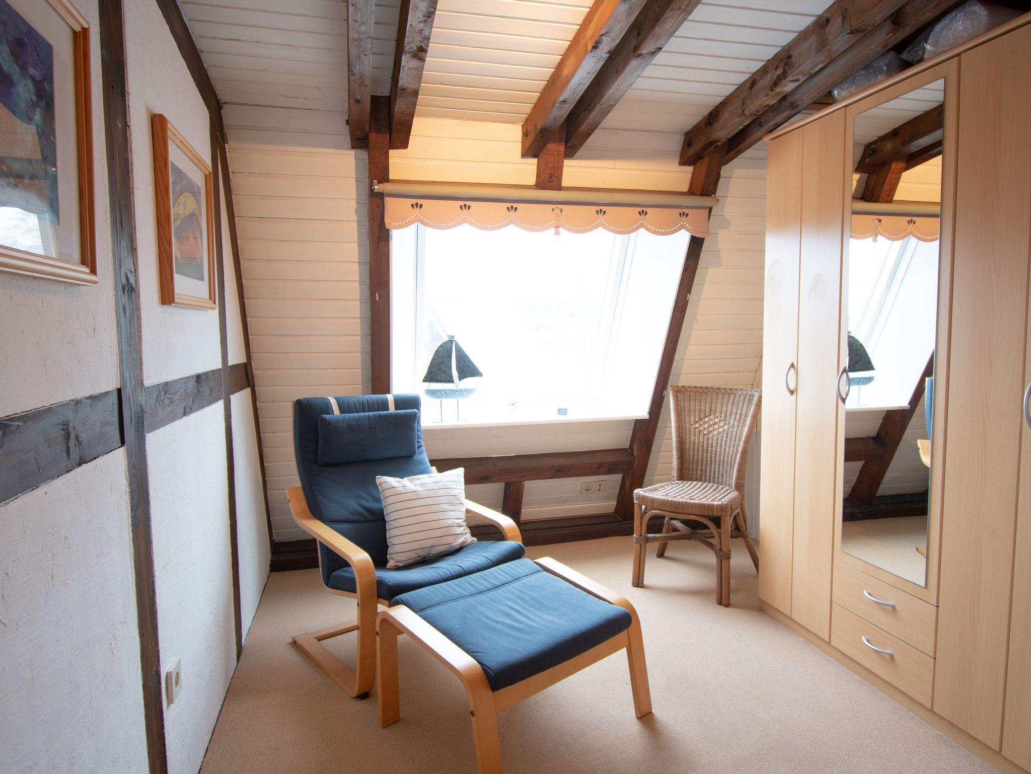 Das gemütliche Wohnzimmer mit Kamin ist behaglich. Ein paar Stufen hinauf befindet sich die komplett ausgestattete Wohnküche mit vorgelagerterm Essbereich - alles da für´s gemütliche Frühstück oder das entspannte Kochen. Im EG liegt auch das modernisierte Duschbad. Über eine offene Holztreppe gelangen Sie zu den beiden Schlafzimmern mit je einem Doppelbett - beide Räume haben reichlich Platz für Kleidung. Entpannen Sie auf 2 möblierten Terrassen und Gartenanteil mit Grillmöglichkeit.