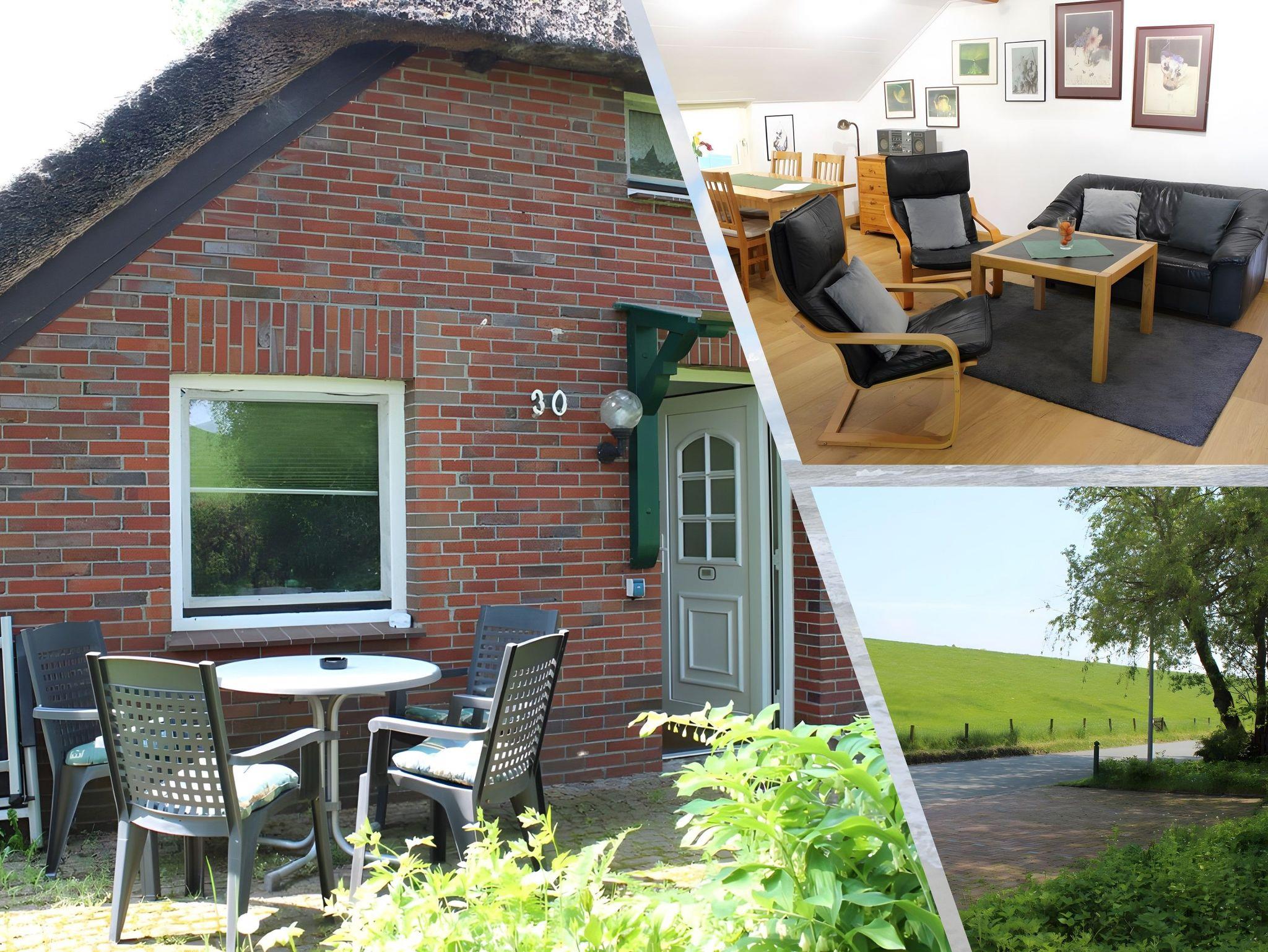 Die gemütlich eingerichtete Ferienwohnung Deichblick befindet sich im Erdgeschoß eines Reetdachhauses direkt hinter dem Deich. Sie bietet auf 57m² ausreichend Platz für bis zu vier Erwachsene und ein Kleinkind bis 3 Jahre. Sie verfügt über einen separaten Eingang und kleine Terrasse mit Gartenmöbeln direkt beim Eingang.