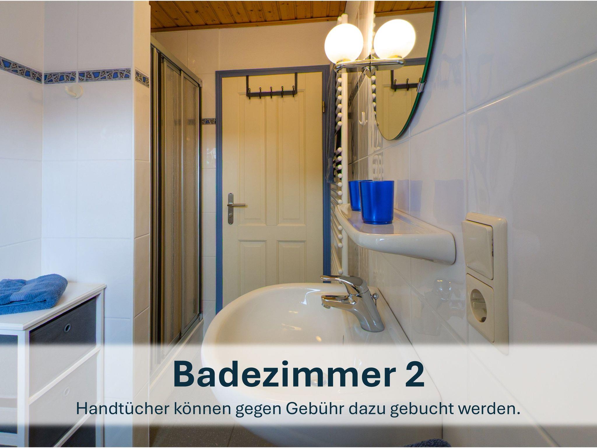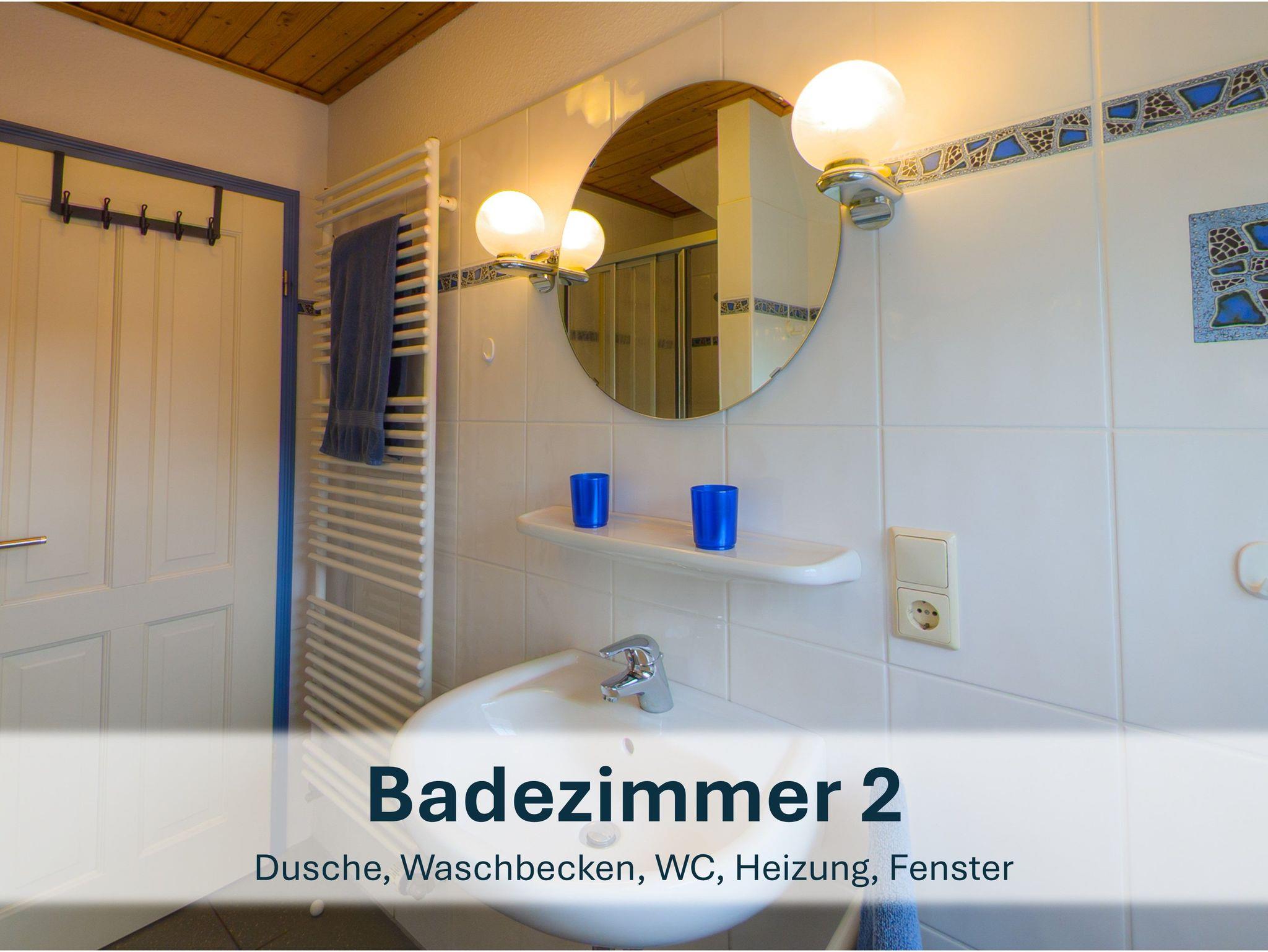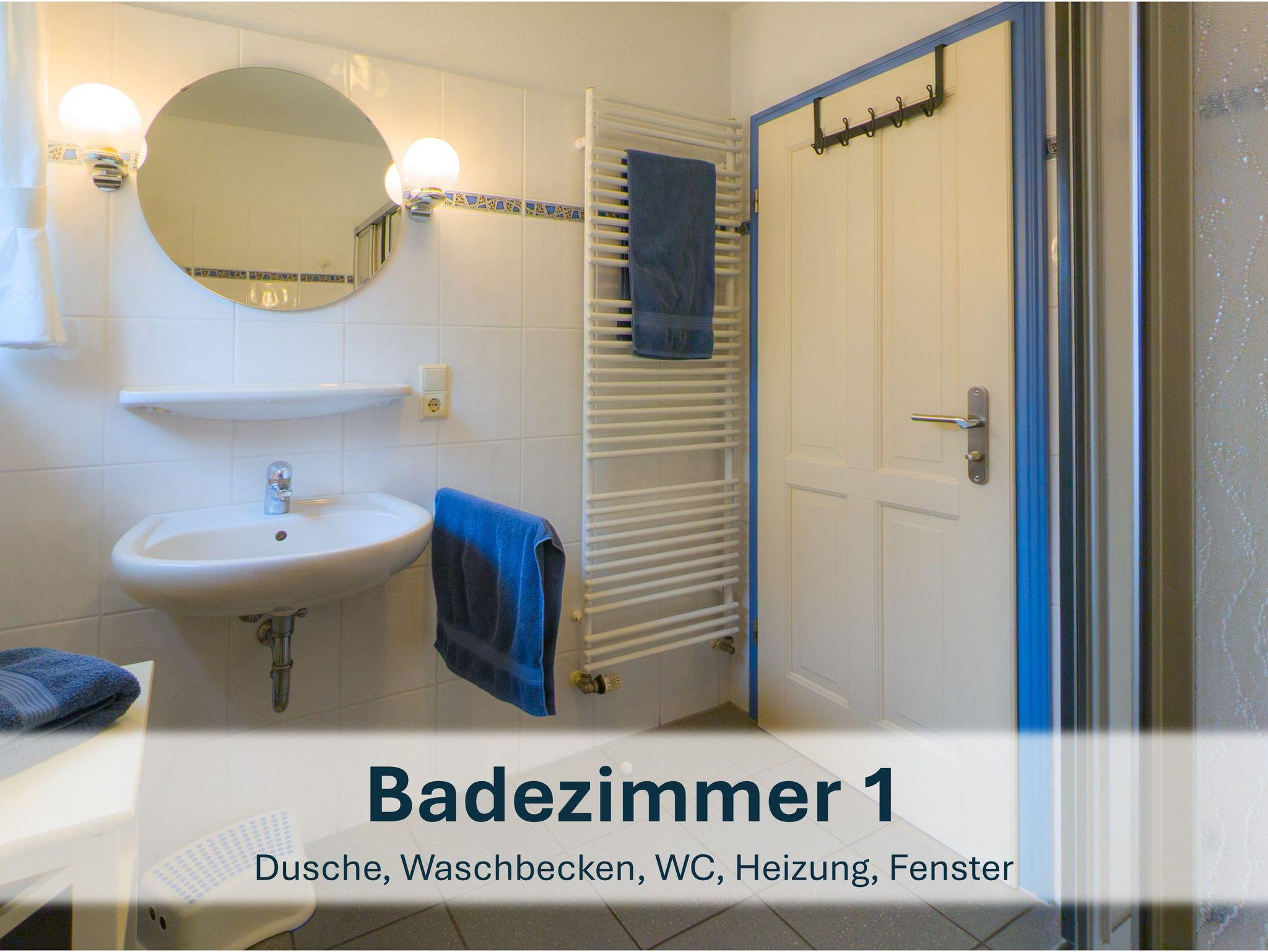 Zwischen den beiden Zimmern liegt das zweite Badezimmer mit Dusche, WC und Waschbecken.