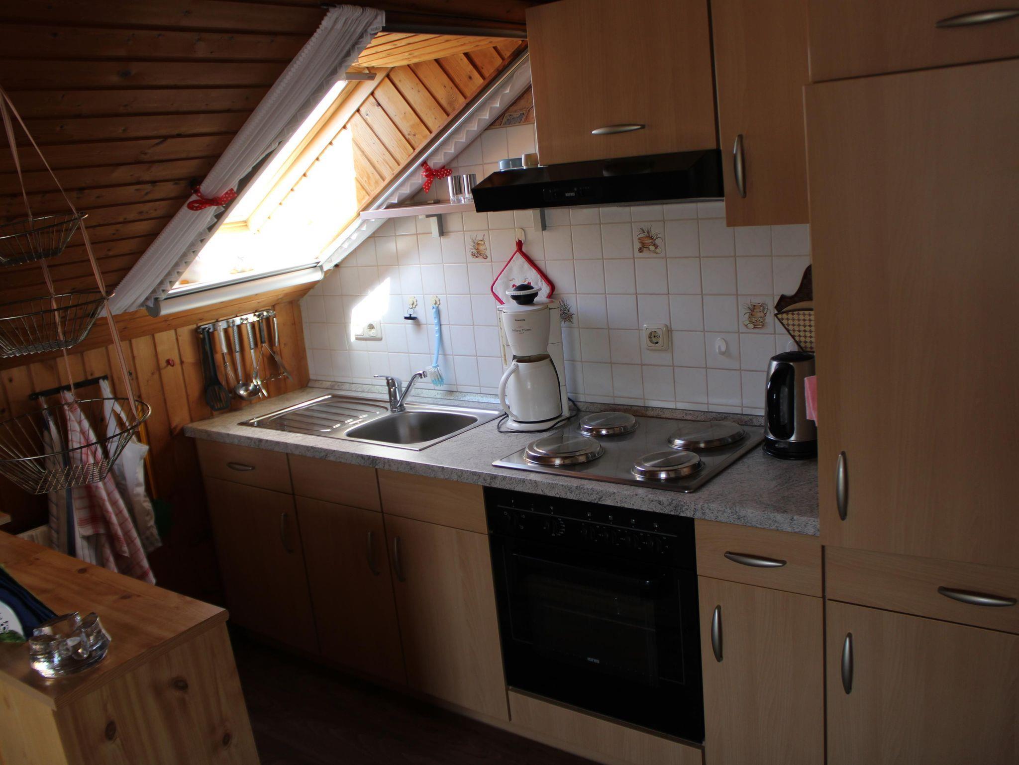 Die Wohnung verfügt über einen offenen Wohnbereich mit gemütlicher Sitzecke (Schlafcouch, TV mit Kabelanschluss und Radio), Essecke und Küchenzeile (Herd, Kühlschrank, Kaffeemaschine, Mikrowelle, Spüle) und WLAN. Das Schlafzimmer ist augestattet mit einem Doppelbett, Kleiderschrank und einem Etagenbett für Kinder. Für eine 5. Person kann ein Schlafsofa genutzt werden. Ein modern eingerichtetes Duschbad und eine sonnige Dachterrasse mit Gartenmöbeln, Liegen und Grill runden das Angebot ab.