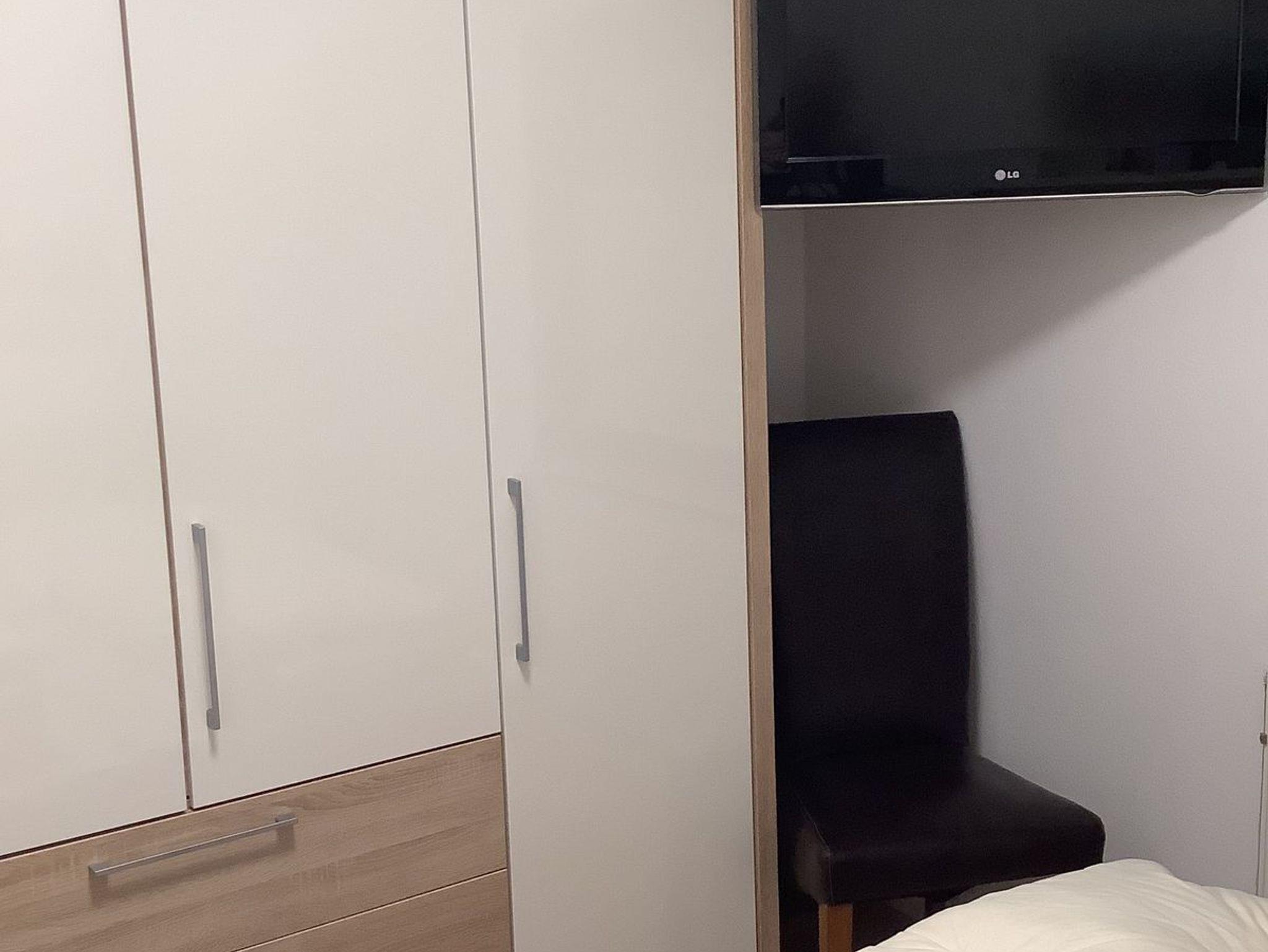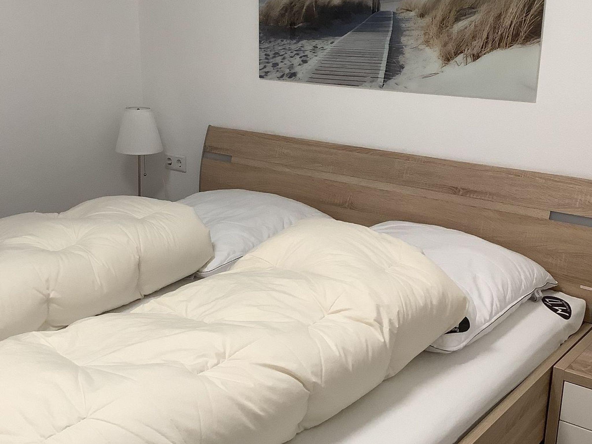 Das erste Schlafzimmer verfügt über ein Doppelbett, das zweite Schlafzimmer über drei Schlafmöglichkeiten, davon eines als Hochbett. Das Badezimmer verfügt über eine Dusche, ein WC und ein Waschbecken. Außerdem können Sie in einem kleinen Abstellraum Ihre Habseligkeiten verstauen.