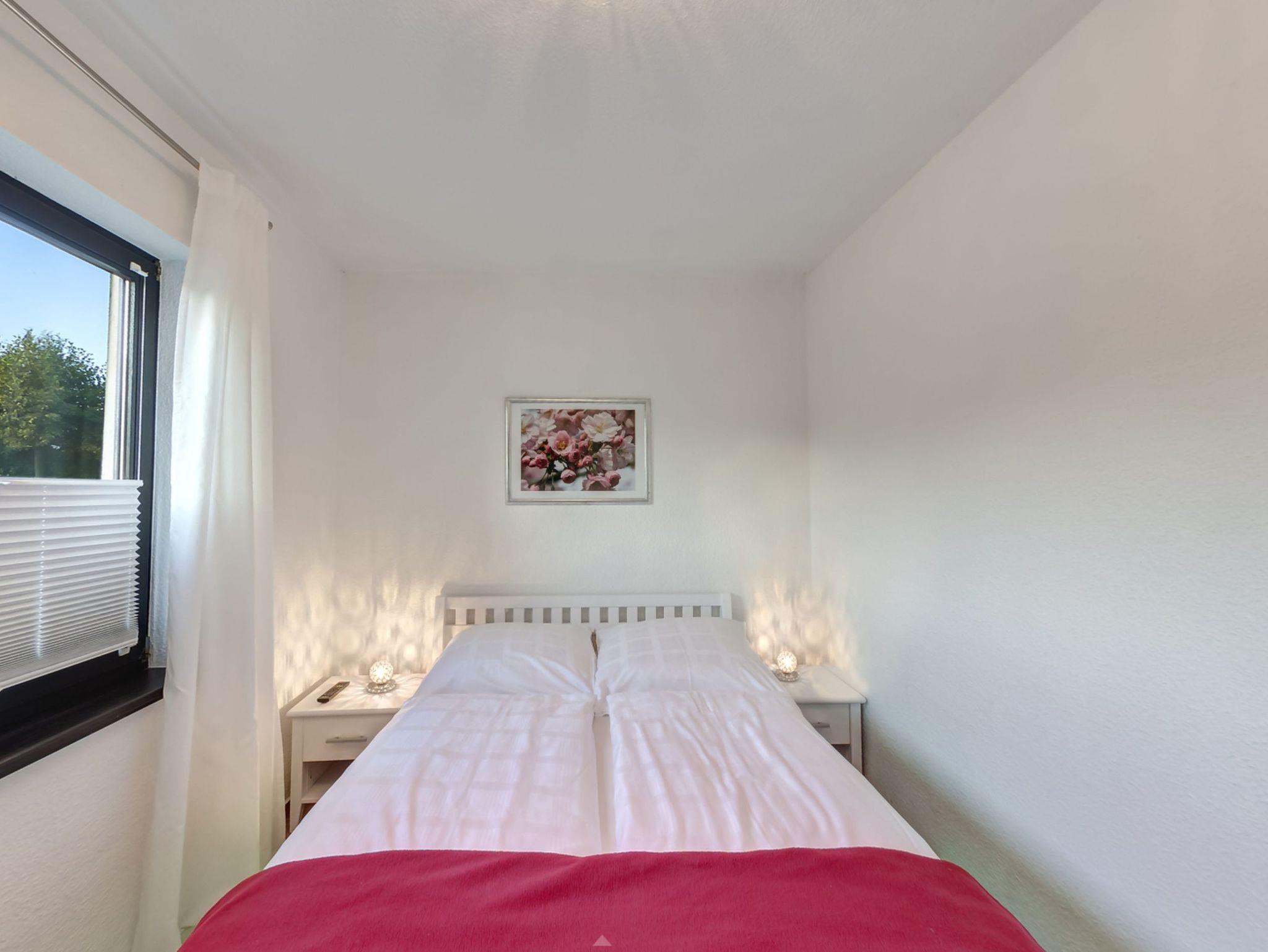 Die Wohnung verfügt über insgesamt 3 Schlafzimmer. In 2 Schlafzimmern finden Sie Doppelbetten. Das dritte Schlafzimmer weist 2 Etagenbetten auf, wobei eines davon unten 1,40 m breit ist.