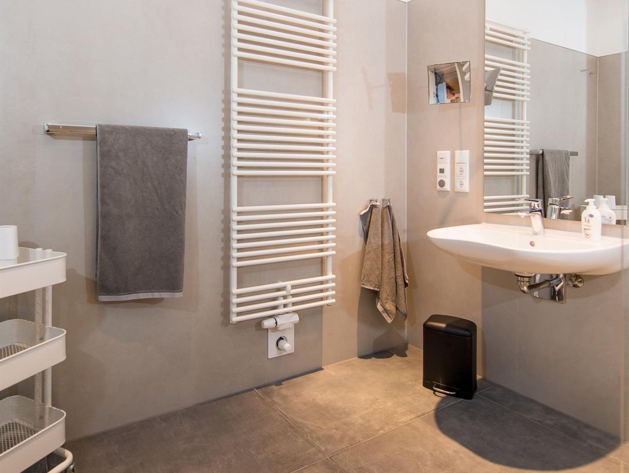 Während sich ein Tageslichtbad direkt an eines der Schlafzimmer anschließt, ist ein weiteres, hochmodern in den Innenbereich integriertes Badezimmer von den weiteren Zimmern zu erreichen. Auch bei den Bädern wurde an Barrierefreiheit gedacht. Die Ausstattung ist exklusiv.