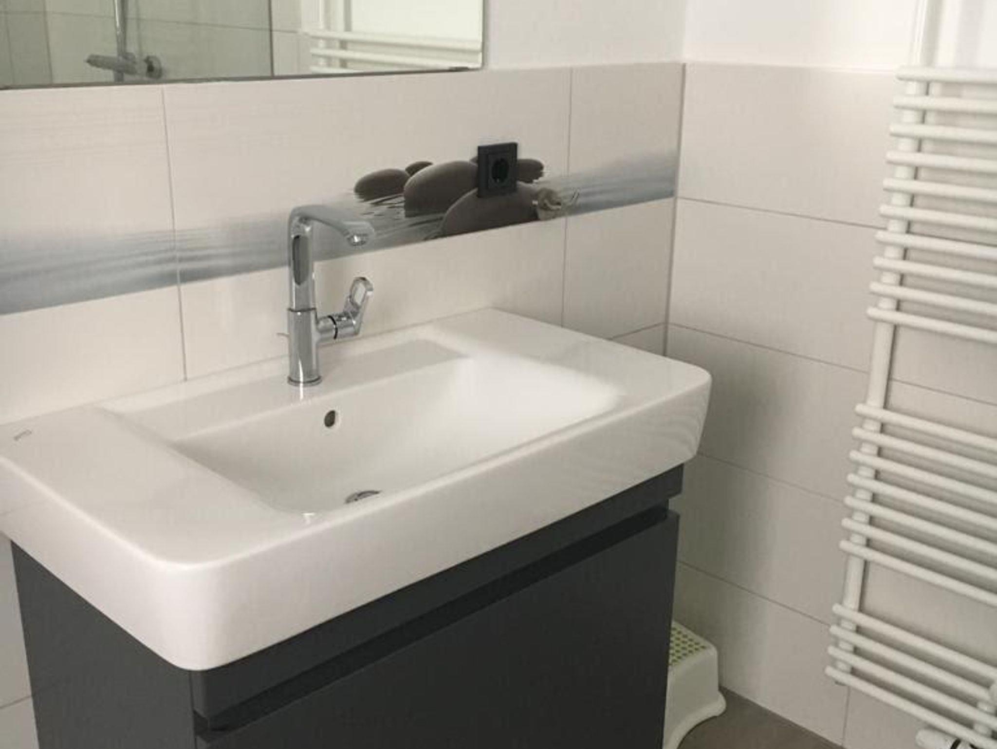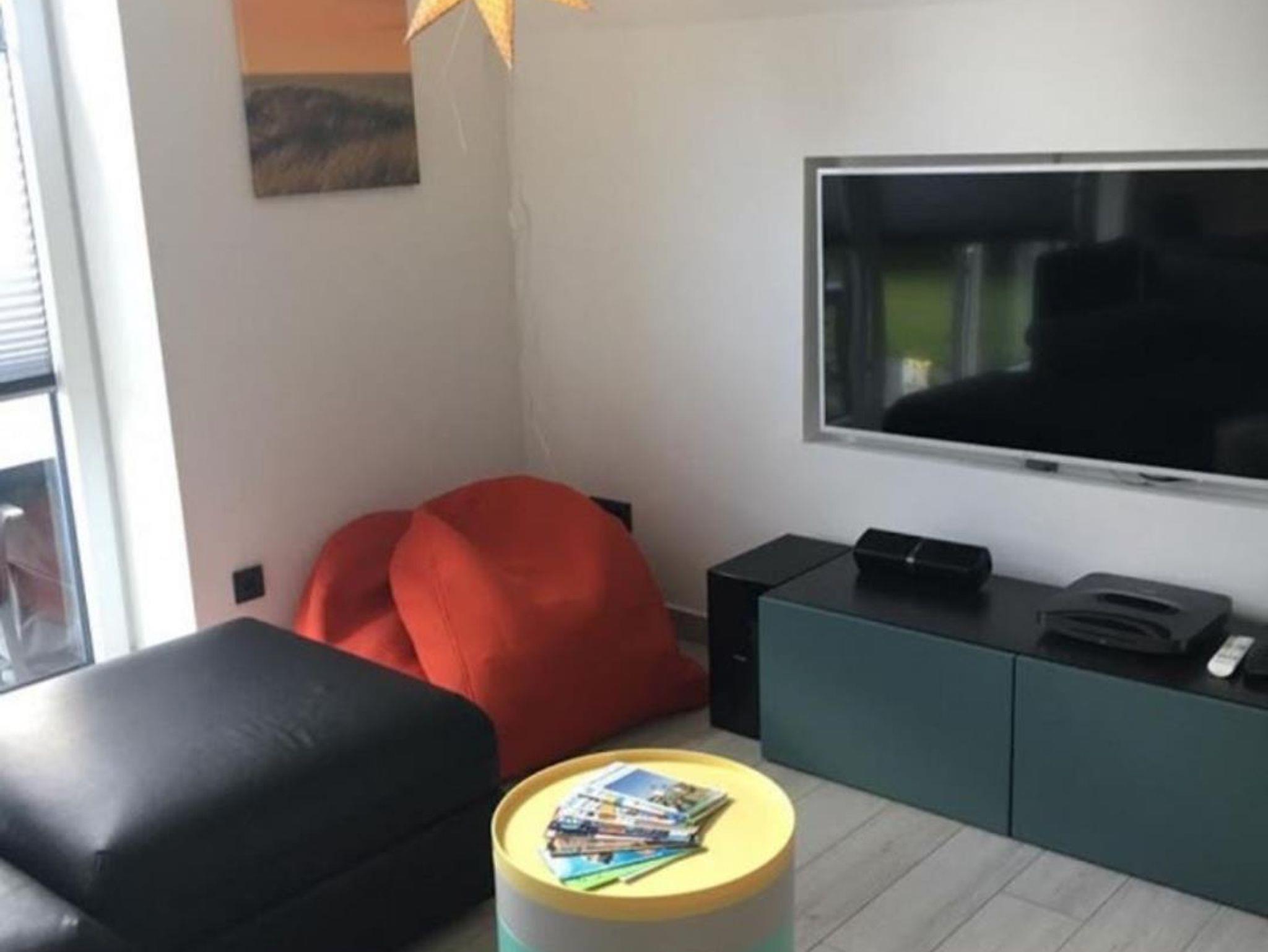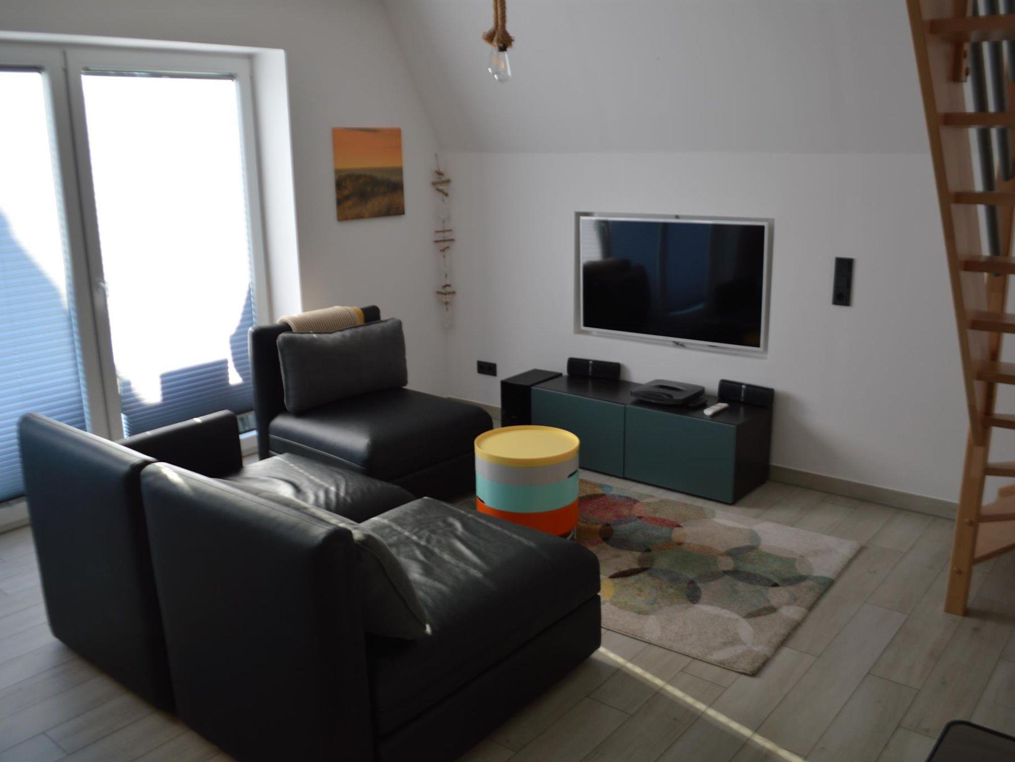 Das Erdgeschoss ist komplett gefliest, im Dachgeschoss liegt hochwertiger Laminat. Die Ausstattung ist auf dem modernsten Stand, unter anderem verfügen alle Räume über eine einzeln regelbare Fußbodenheizung. Der Wohnbereich im Erdgeschoss ist großzügig angelegt mit schönem Esstisch aus Zerreiche mit passender Bank und 4 bequemen Stühlen. Die Sofaecke bietet genügend Platz für die Familie und einen tollen Blick auf den 49-LED-Fernseher. Die NOLTE-Küche ist für den täglichen Bedarf bestens ausgestattet. Das große Bad verfügt über ein Außenfenster, großen Waschtisch, ebenerdiger Dusche mit Tellerkopf- und Handbrause, WC und einem Waschtrockner. Ins Dachgeschoss kommen Sie über eine Wohnraumtreppe, dort befindet sich ein Schlafraum mit einem Doppelbett (160x200), sowie ein weiteres Schlafzimmer mit einem Ausziehbett (bis 160x200) und einem Fernseher. An beiden Fenstern der Schlafzimmer sind im Sommer Insektenschutzgitter angebracht. Kostenloses W-LAN steht Ihnen zur Verfügung.