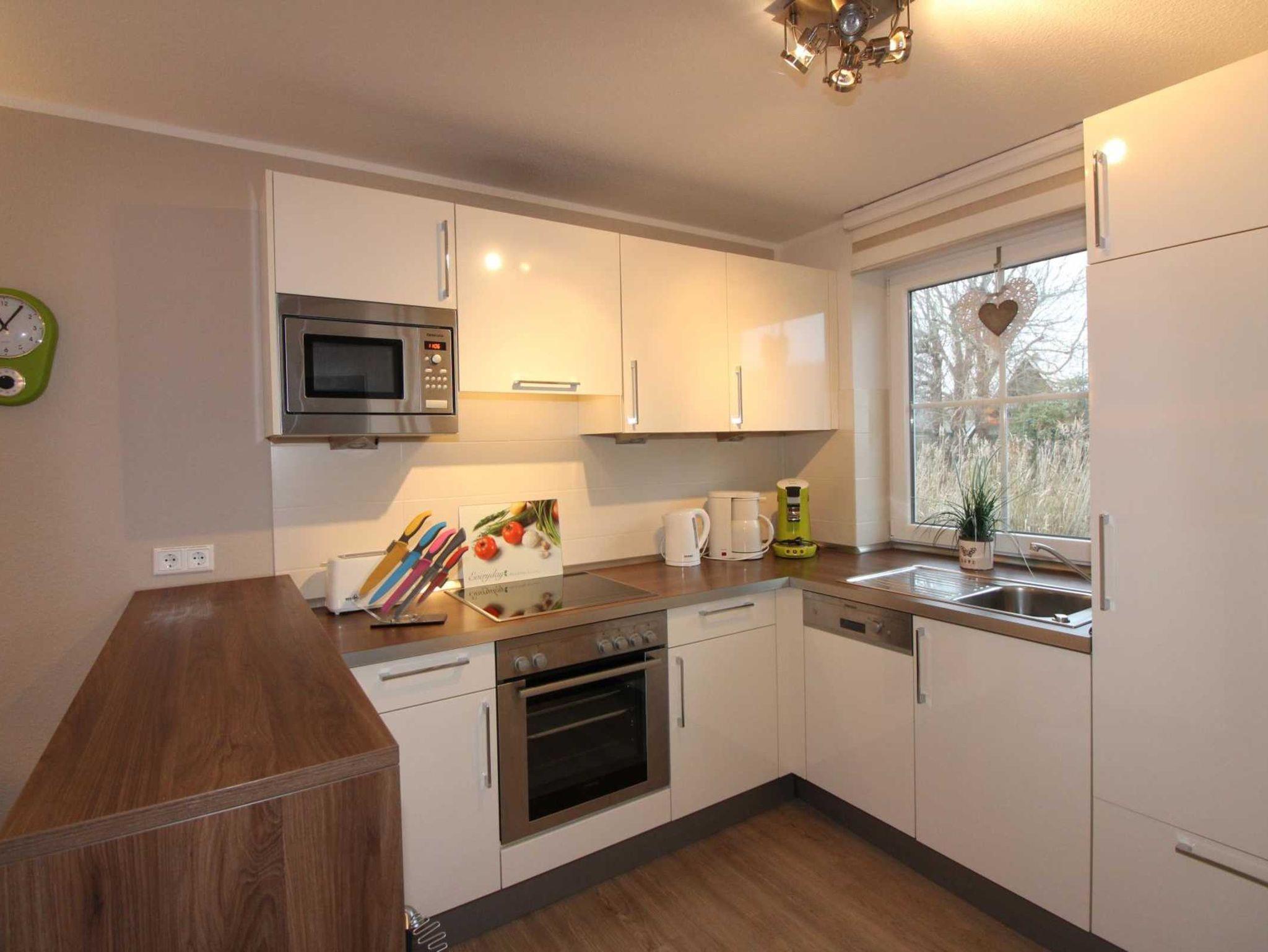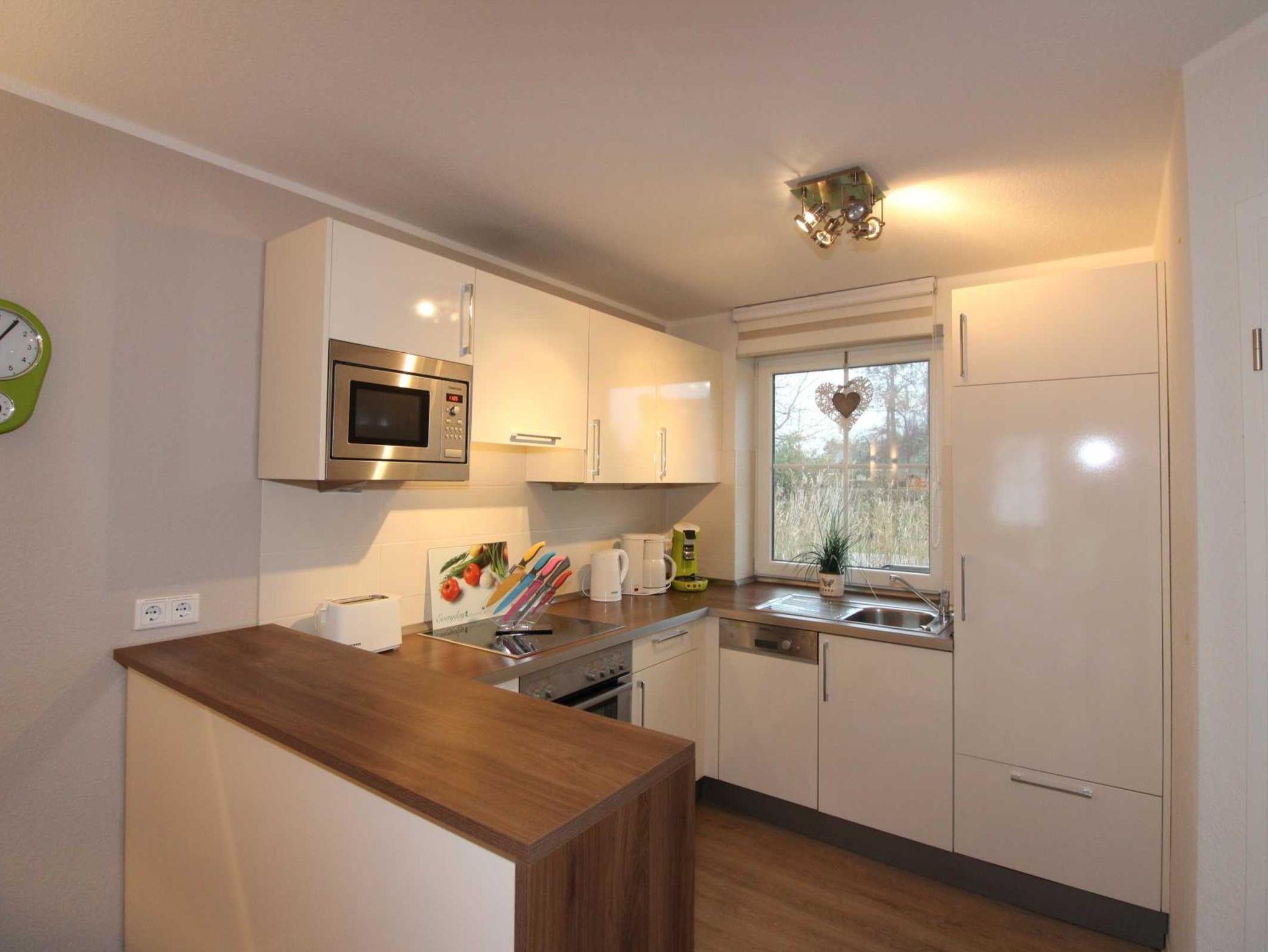 Die Küche ist ausgestattet mit Ceranfeld, Backofen, Spülmaschine, Kühlschrank mit Tiefkühlfach, Mikrowelle, Kaffee & Senseo-Maschine, Eier-/Wasserkocher, Toaster, Mixer, Waffeleisen, Sandwichmaker. Geschirrund Gläser sind in ausreichender Anzahl vorhanden.