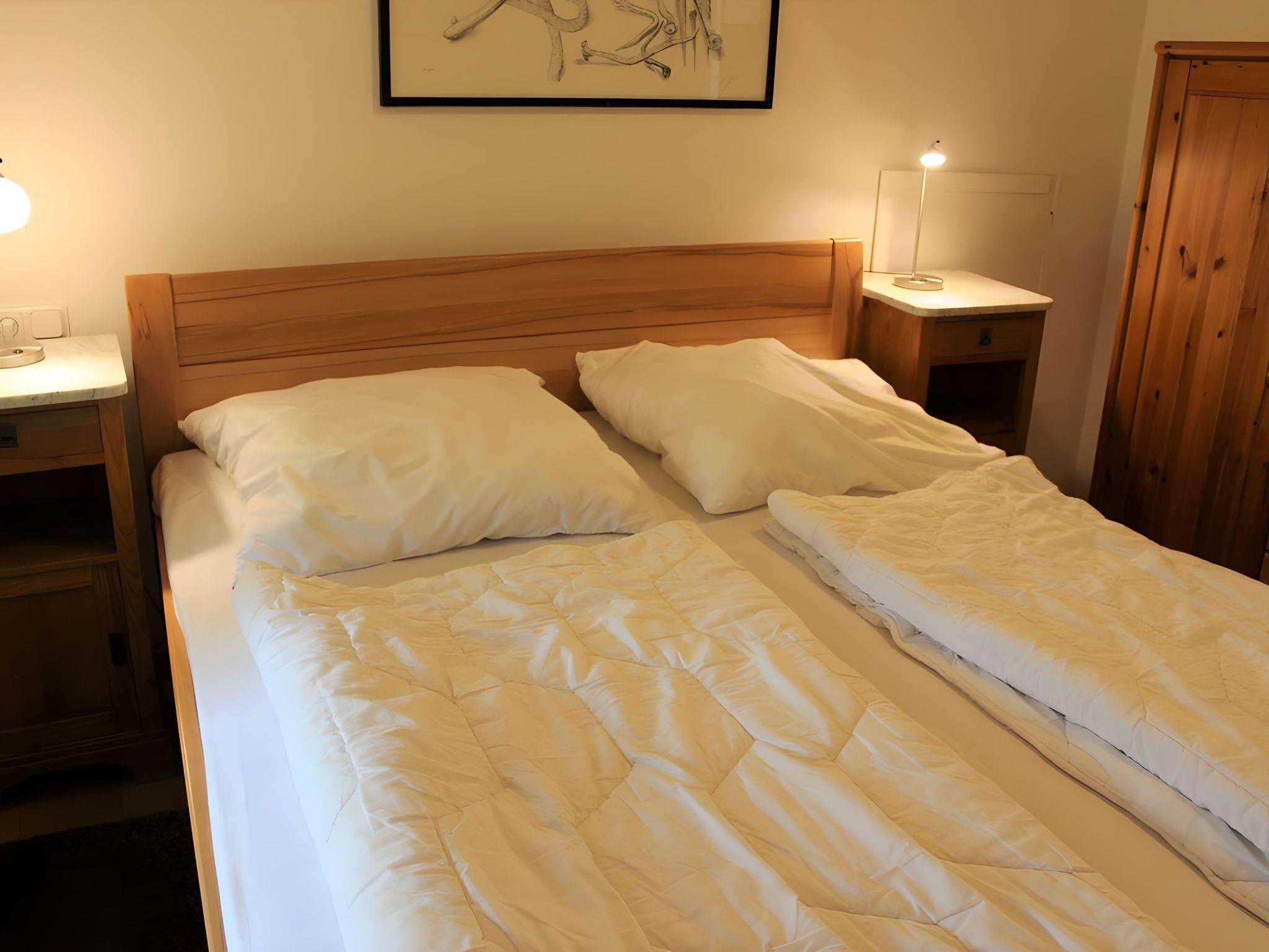 Die beiden Schlafzimmer sind jeweils mit einem Doppelbett und einem Kleiderschrank ausgestattet. In einem Schlafzimmer findet sich zudem noch ein weiterer Flat-TV.
