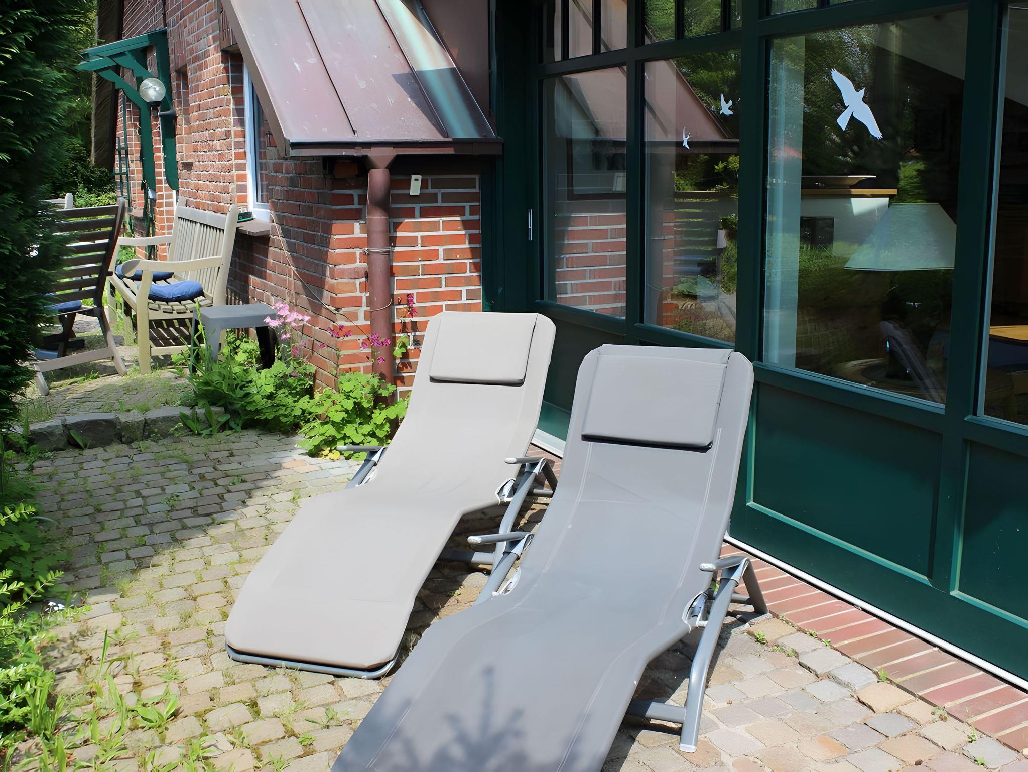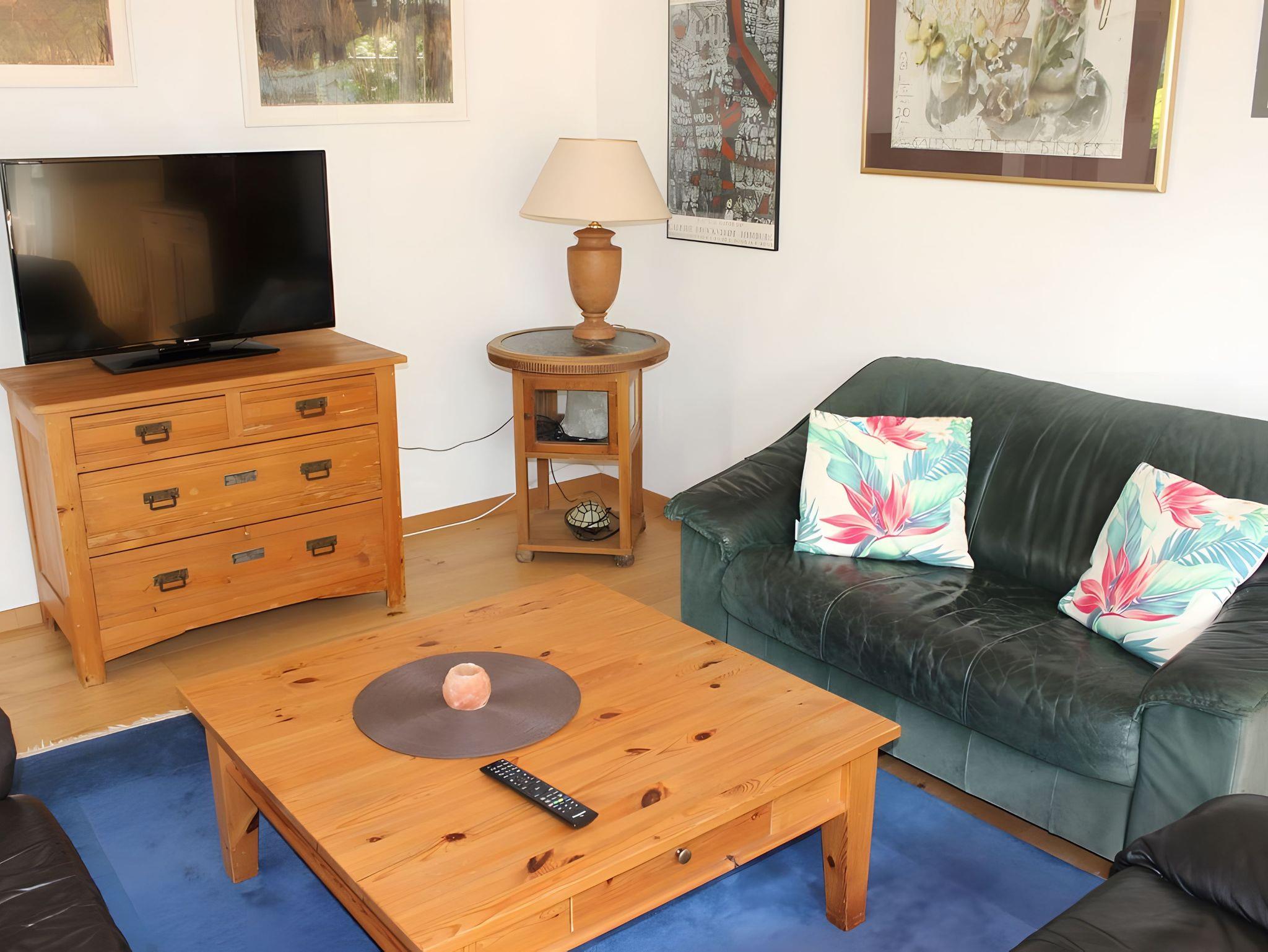 Die Wohnung verfügt über ein gemütliches Wohnzimmer mit Sitzecke und Flat(Sat)-TV und Radio. Das Wohnzimmer öffnet sich zum Wintergarten. Genießen Sie hier Ihre Mahlzeiten am Esstisch für 4 Personen mit Blick ins Grüne. Entspannen Sie sich in der gemütlichen Leseecke oder auch auf einer Relaxliege draußen auf der Terrasse. Zugang zur Terrasse erhalten Sie direkt über den Wintergarten.