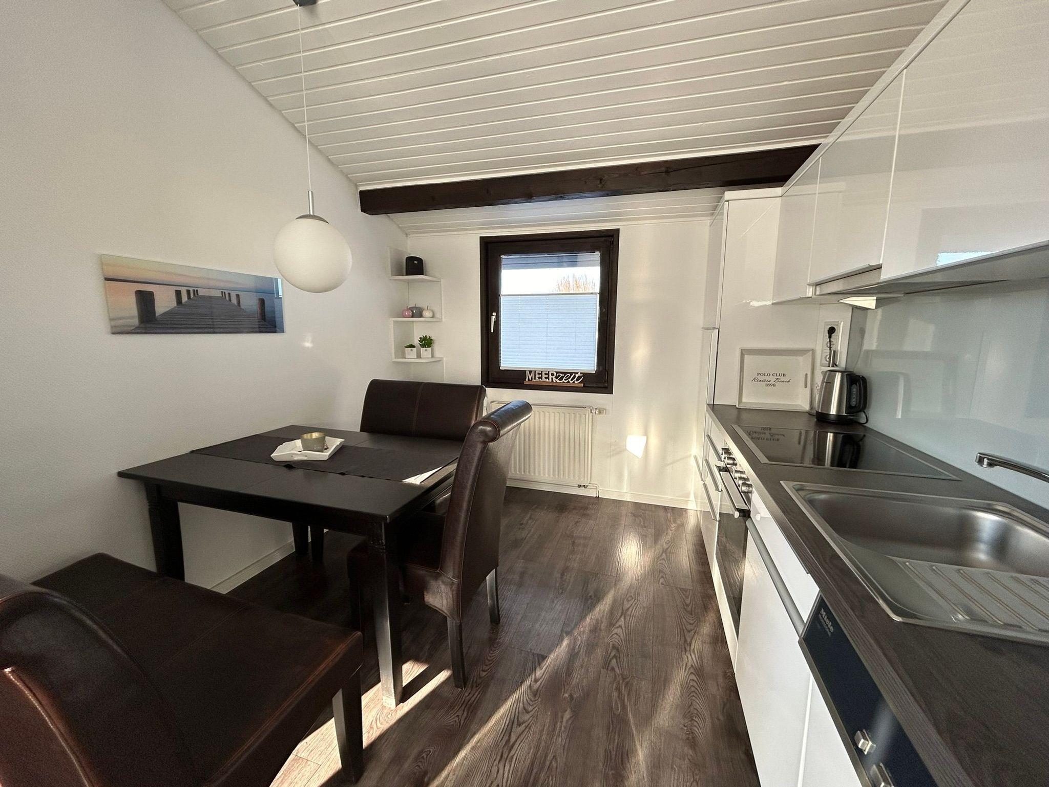 Anschließend am Wohnzimmer befindet sich eine komplett eingerichtete Küche. Auch erwartet Sie hier eine Terrasse. Genießen Sie beim Frühstücken oder Relaxen die Sonnenstrahlen und die frische Nordseeluft! Aber auch außerhalb der Hautsaison ist das Haus ein idealer Ausgangspunkt für Ihre Erkundungen an der Nordseeküste.