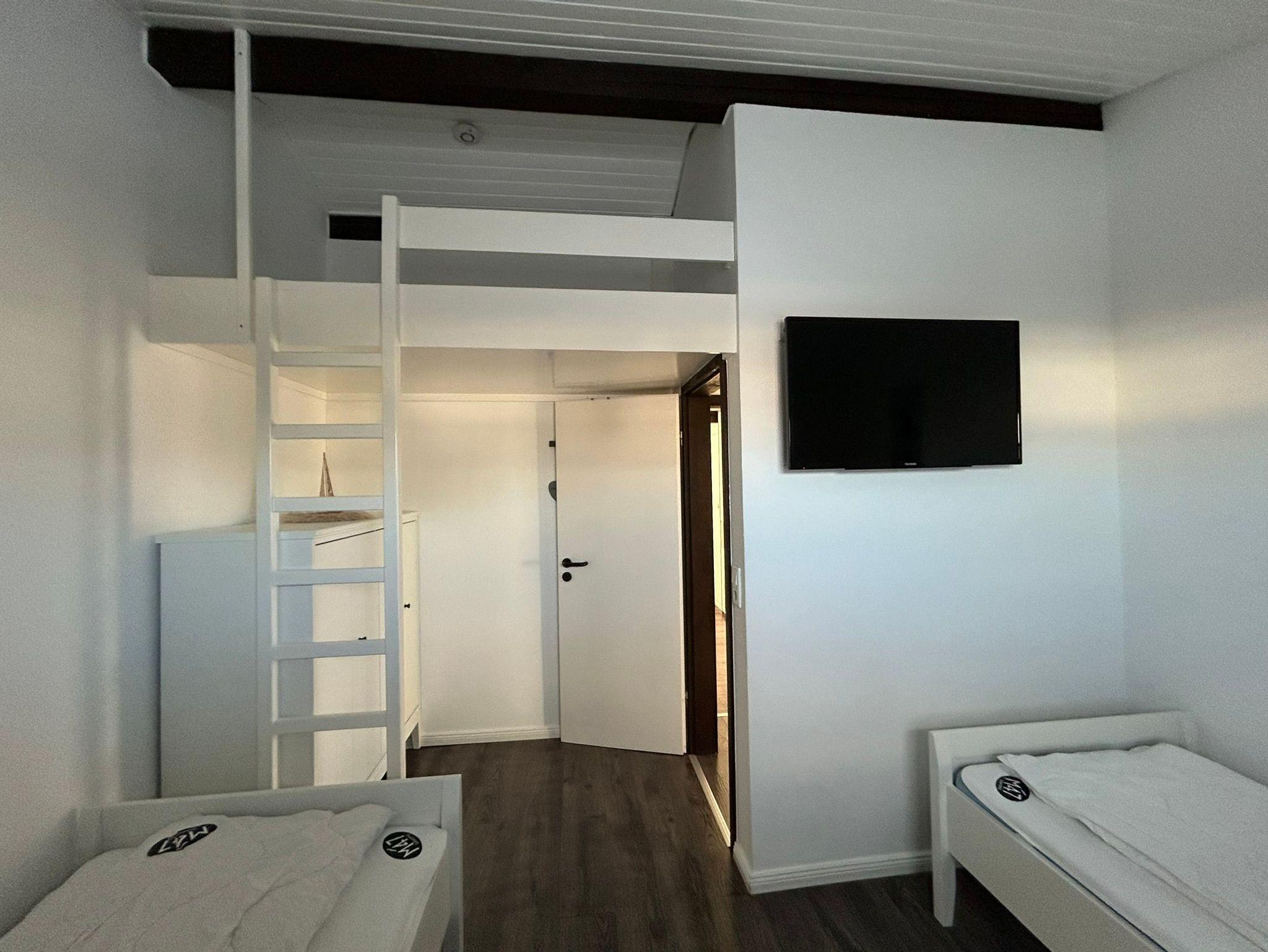 Das erste Schlafzimmer verfügt über ein Doppelbett, das zweite Schlafzimmer über drei Schlafmöglichkeiten, davon eines als Hochbett. Das Badezimmer verfügt über eine Dusche, ein WC und ein Waschbecken. Außerdem können Sie in einem kleinen Abstellraum Ihre Habseligkeiten verstauen.