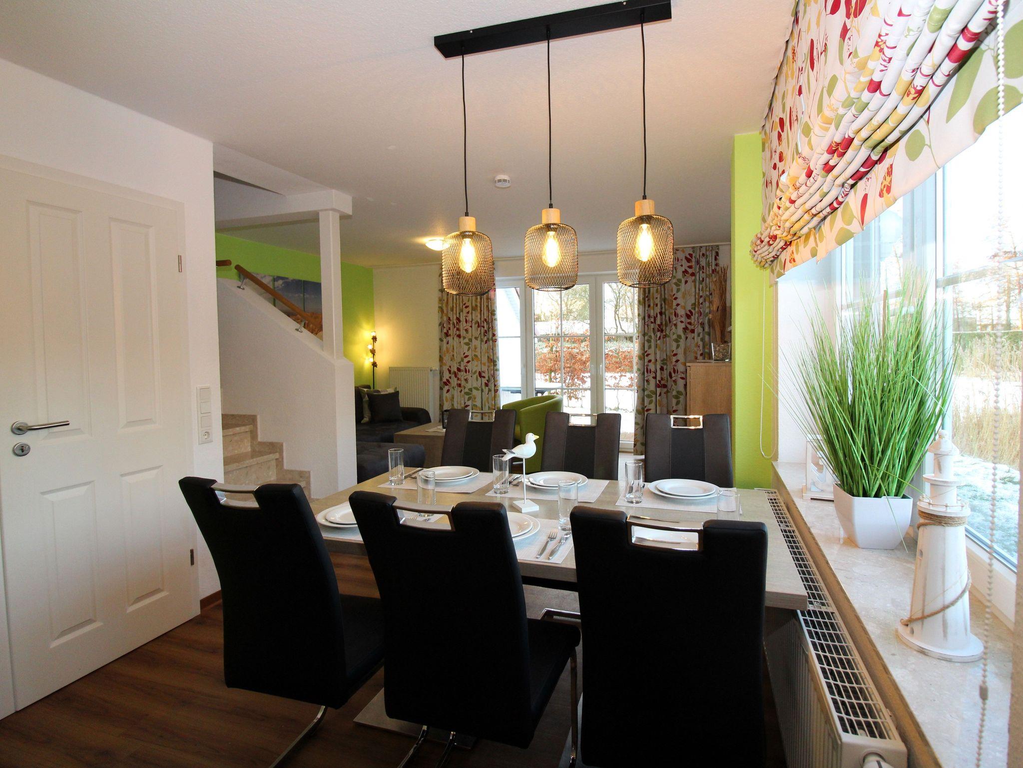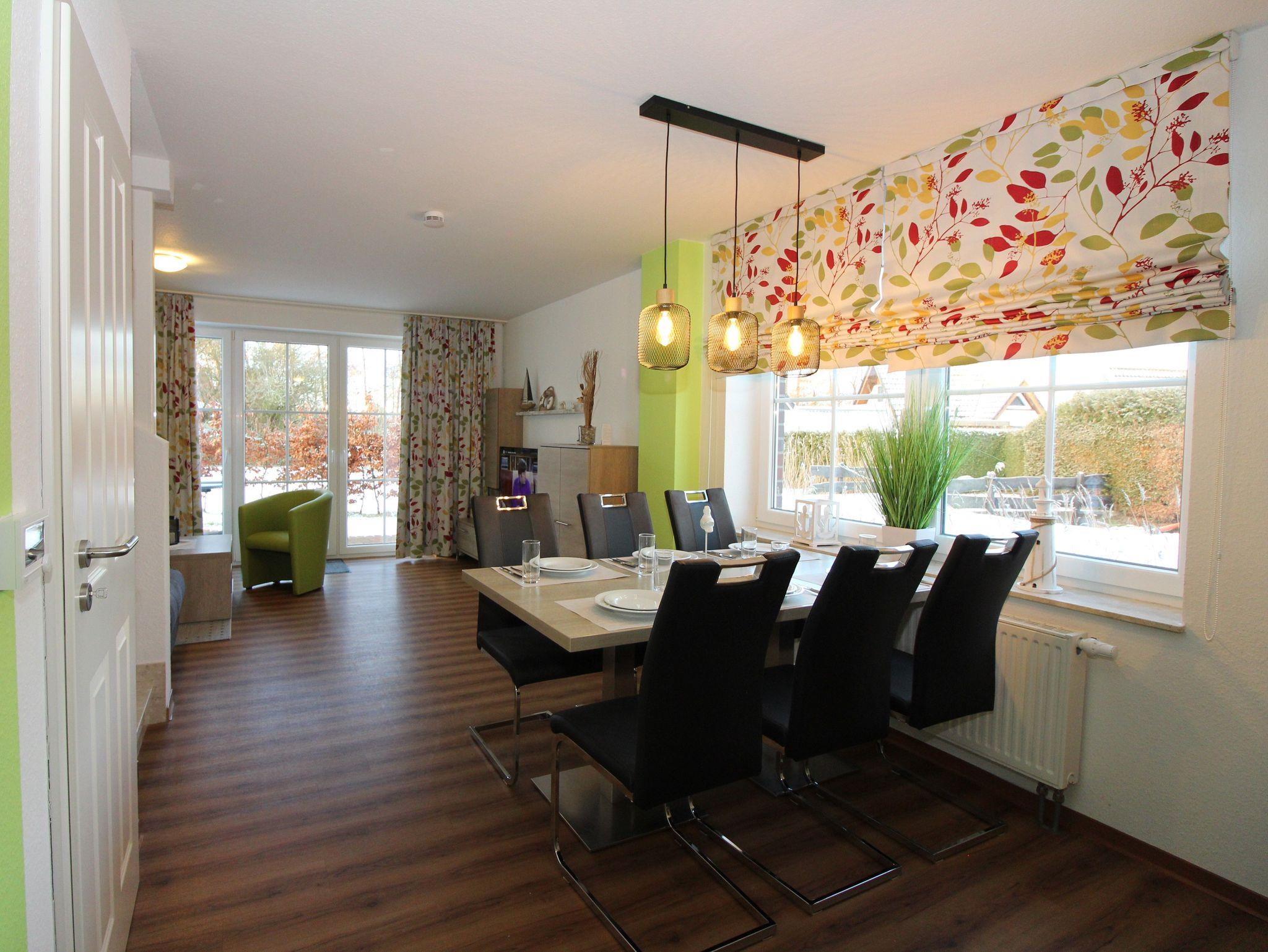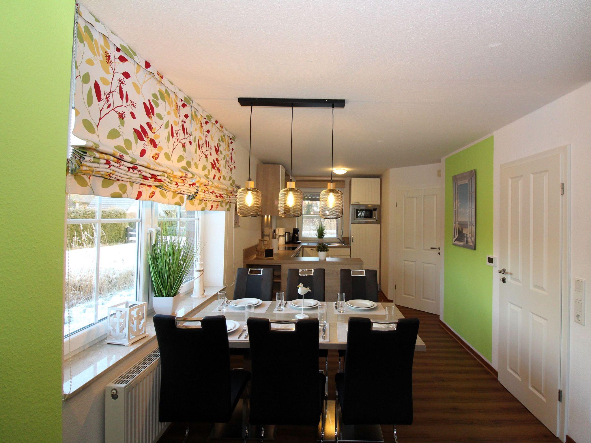 Der große Esstisch bietet Platz für bis zu 6 Personen (plus Kinderhochstuhl).