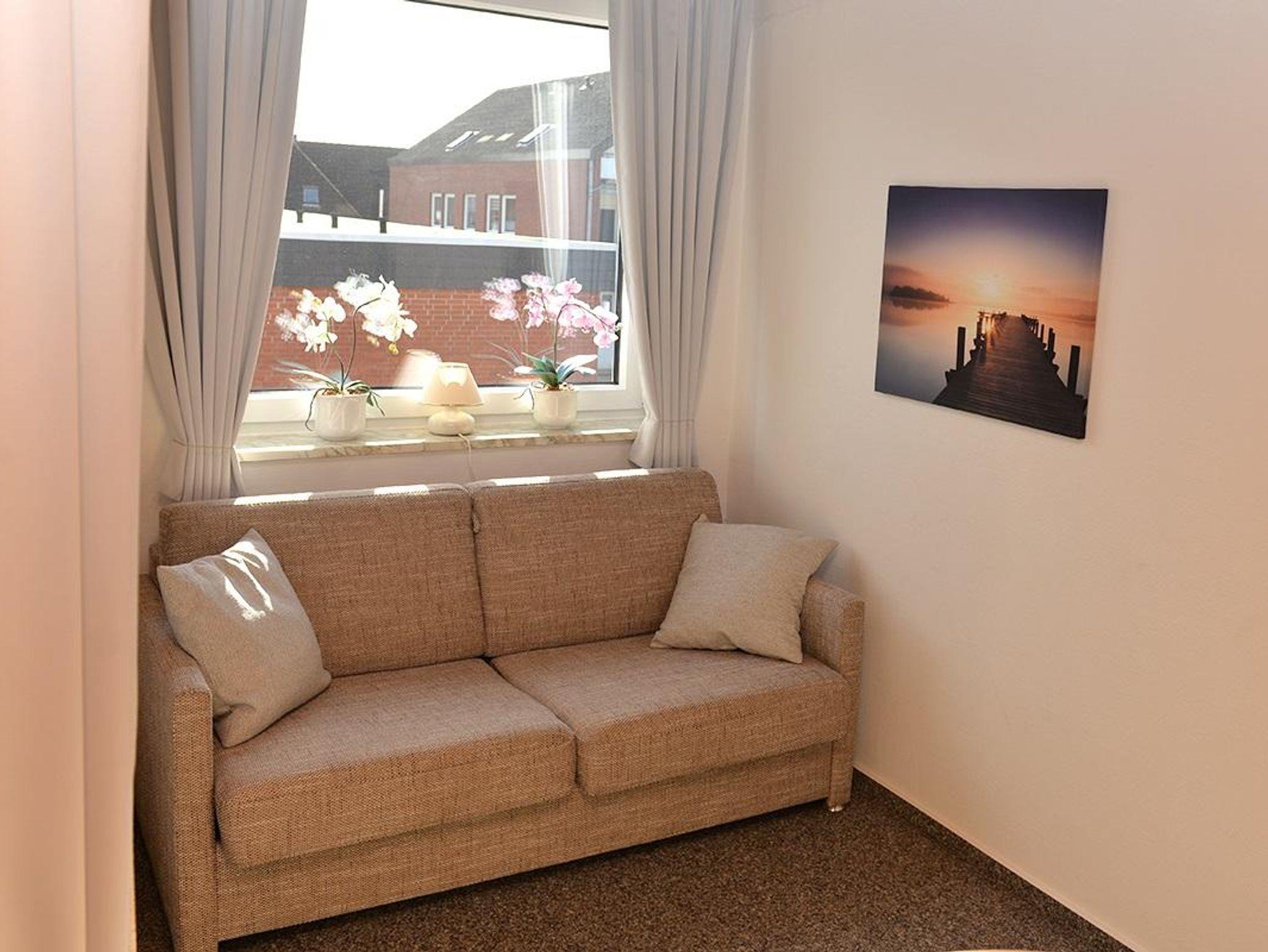 Die 44 qm große Ferienwohnung C11 liegt in der 1. Etage der Wohnanlage Deichgraf-Burhave und ist für bis zu 4 Personen ausgestattet. Sie verfügt über ein Wohn-/Esszimmer mit Fernseher Esstisch und einer Schlafcouch für 2 Personen sowie eine separate Küche mit Ceranfeld, Backofen, Kühlschrank mit Eisfach, Mikrowelle, Wasserkocher, Kaffeemaschine, Eierkocher, Toaster und ausreichend Geschirr. Zudem befindet sich in der Wohnung ein separates Schlafzimmer mit einem Doppelbett sowie ein Bad mit Dusche, Badewanne und WC. Zur Wohnung gehört außerdem ein schöner Balkon. Dieser ist vom Wohn-/Esszimmer aus zugänglich und mit Tisch und Stühlen ausgestattet. Den Gästen steht kostenfreies WLAN zur Verfügung. Haustiere sind nicht gestattet.