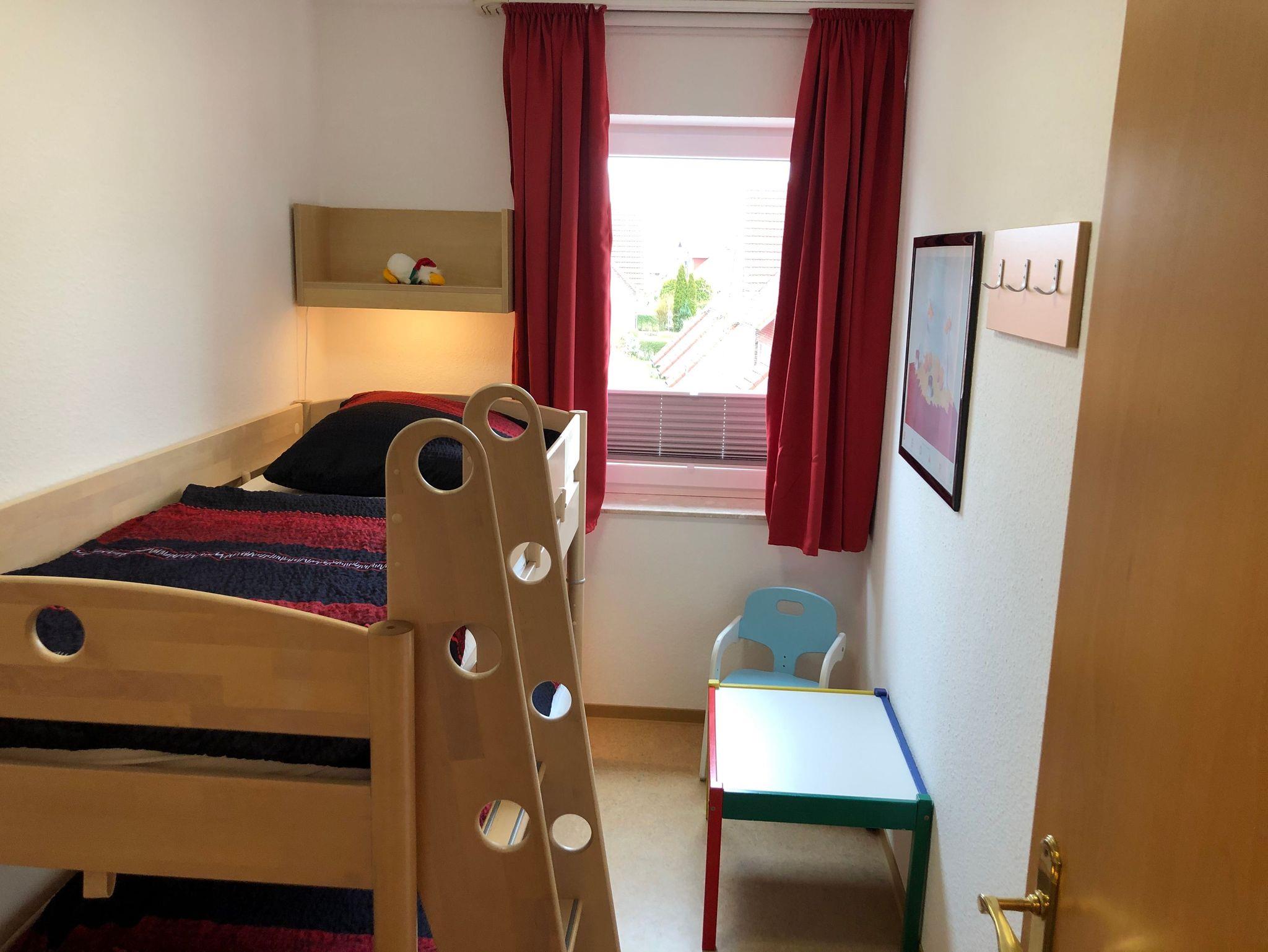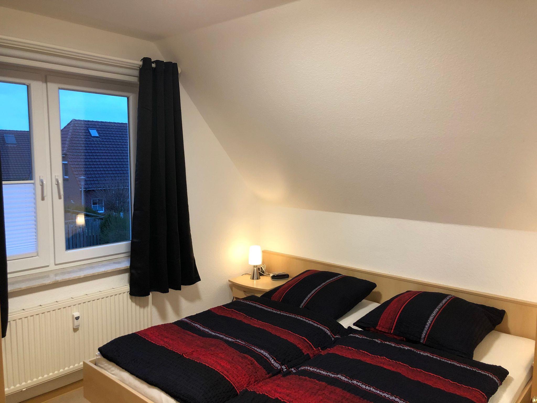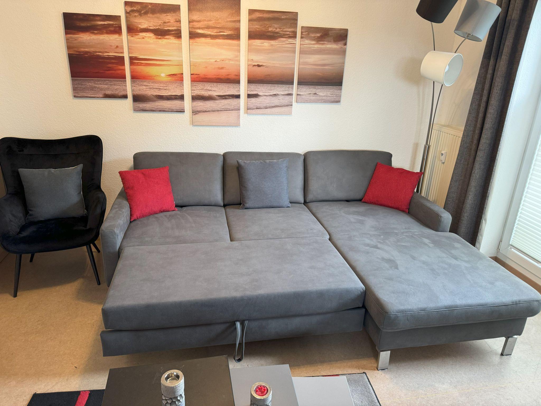 In der Wohnung haben bis zu 5 Personen Platz - ein Schlafzimmer mit Doppelbett (200 cm x 200 cm), ein Kinderzimmer mit Etagenbett (das untere eher für Kinder geeignet) und bis zu 2 auf dem gemütlichen Schlafsofa (Liegefläche 130 cm breit) im Wohnzimmer. Alle drei Schlafbereiche verfügen über ein TV-Gerät. Das Wohnzimmer verfügt zusätzlich über einen DVD-Player und eine Stereoanlage. Kostenfreies WLAN ist in der kompletten Wohnung verfügbar. Sämtliche Schlafbereiche sind mit Verdunklungssystemen (Plissees, Rollos und/oder Vorhängen) ausgestattet.