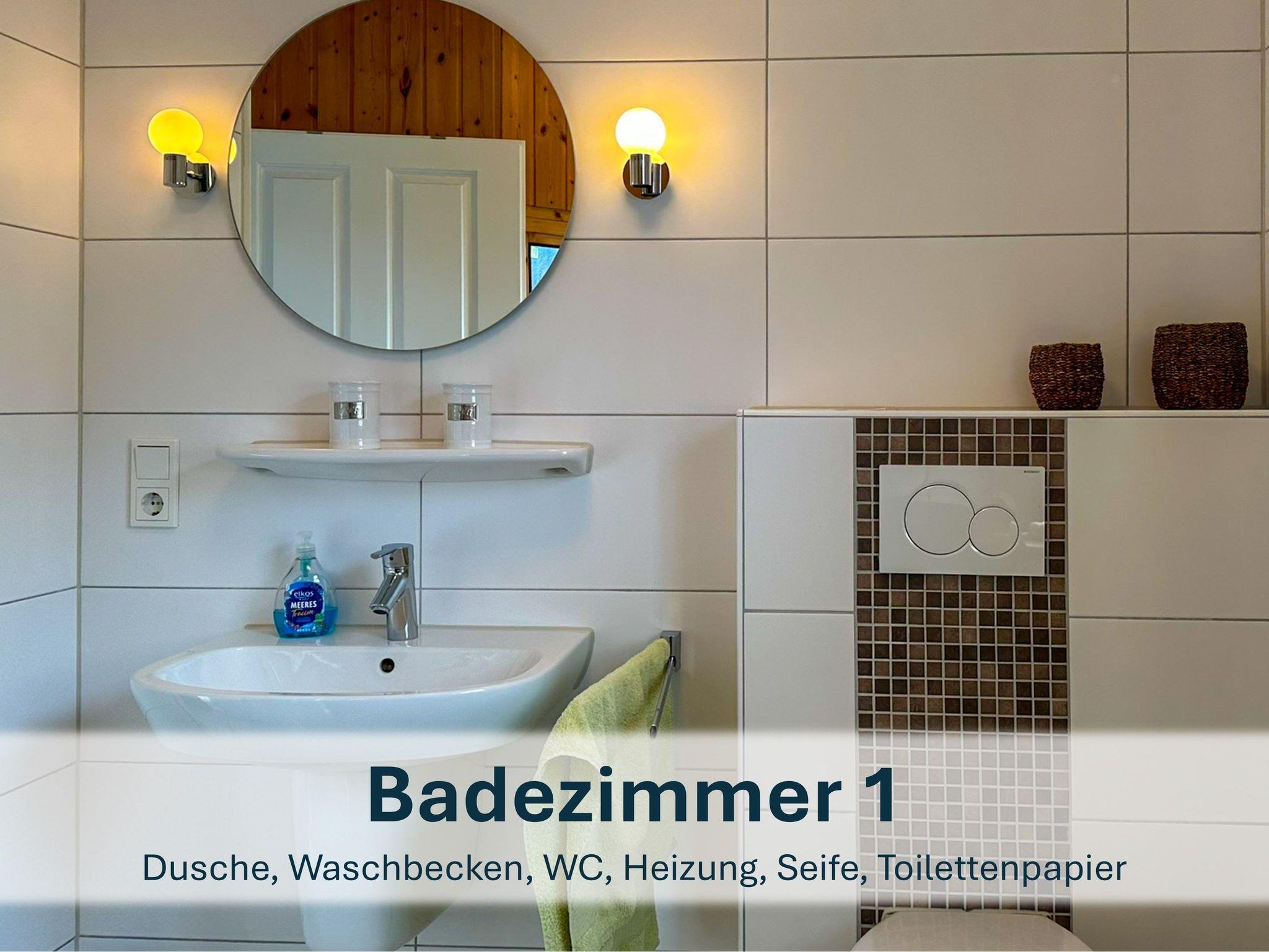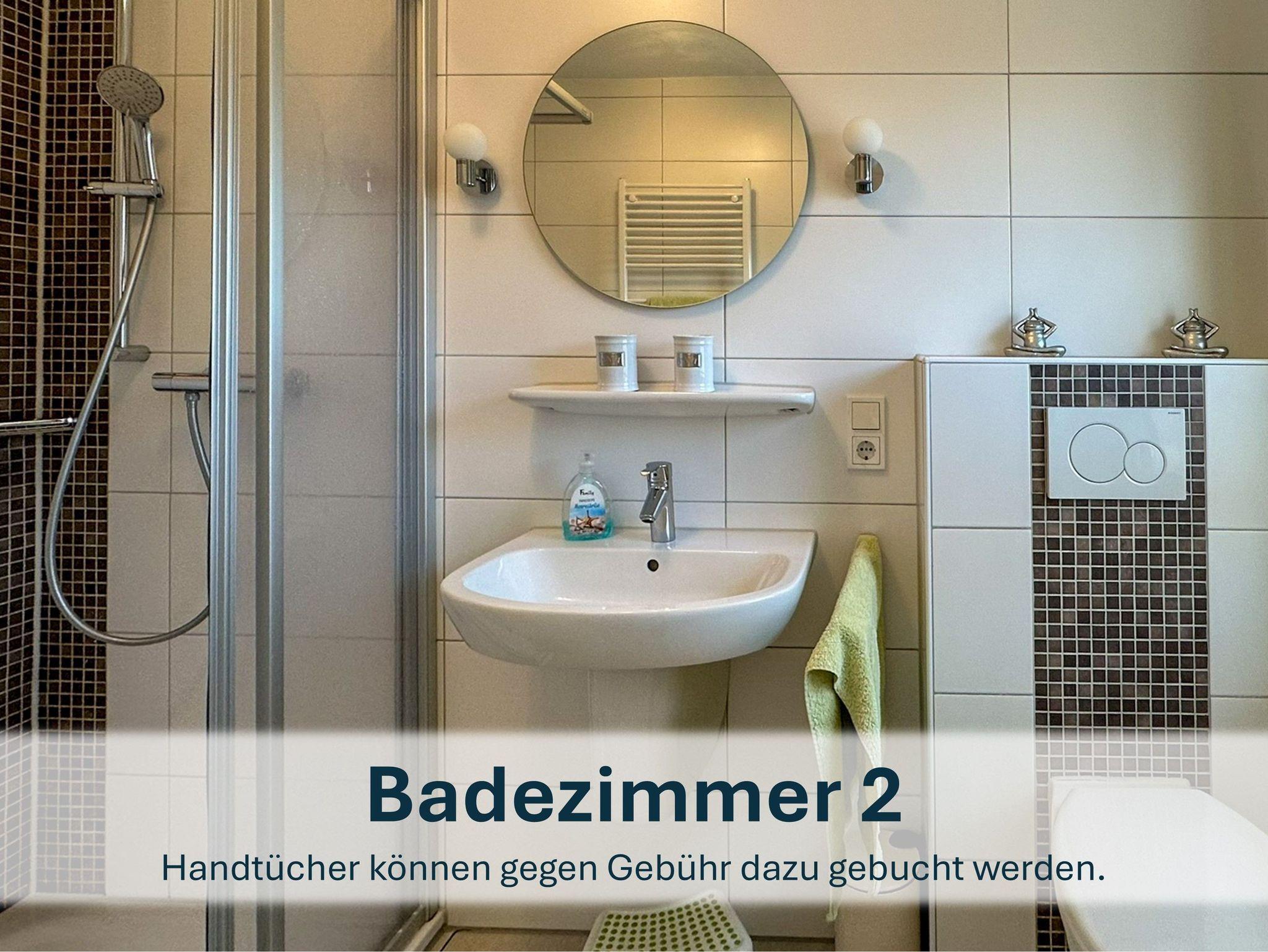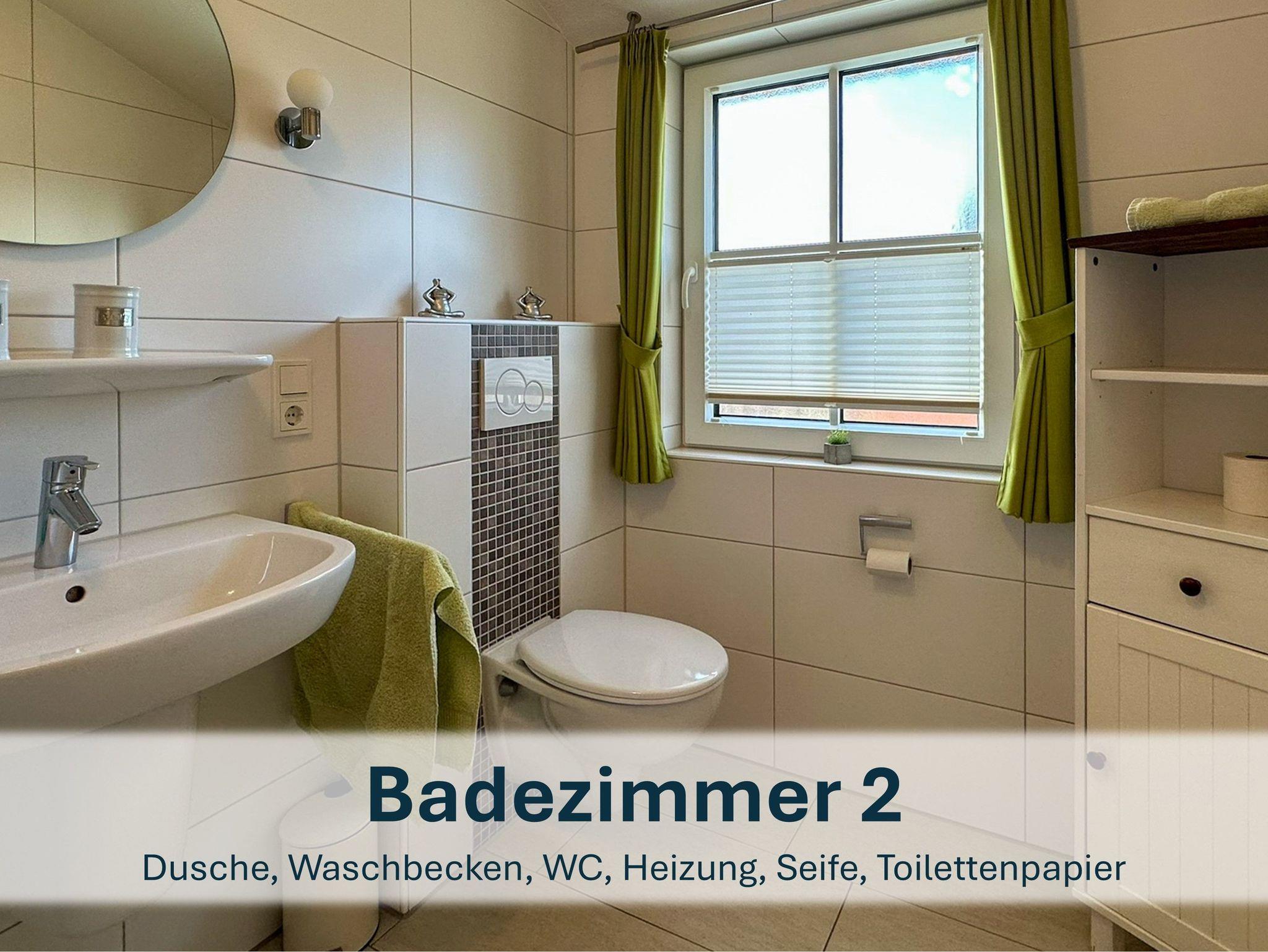 Zwischen den beiden Zimmern liegt das zweite Badezimmer mit Dusche, WC und Waschbecken.