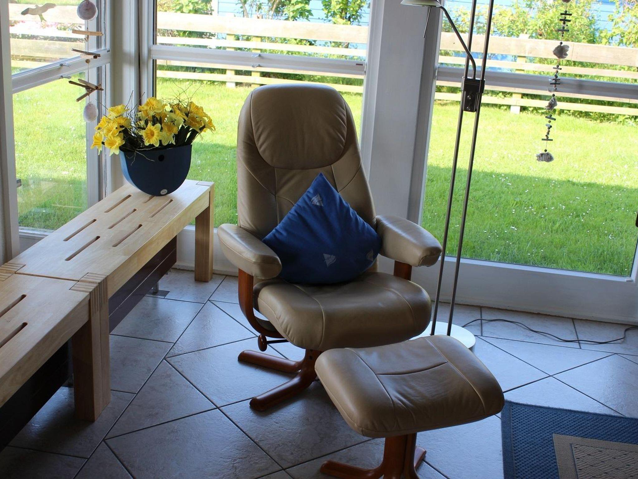 Das sehr gemütliche und helle Ferienhaus befindet sich im Ferienpark Eckwarderhörne. Es besteht aus einem offenen Wohnbereich mit einer großen Fensterfront, einem Zugang auf die überdachte Terrasse und den großen Garten. Der Wohnbereich besteht aus einer gemütlichen Wohnecke, einer Leseecke und einer Wohnwand mit SAT-TV, DVD-Player und Radio. In der vollausgestatteten Küche finden Sie eine Küchenzeile mit Kühlschrank, Geschirrspüler, Backofen, Ceranfeld, Kaffeemaschine, Tassimo Kapselmaschine, Toaster, Wasserkocher, Eierkocher, Mixer und eine Essecke. Das Doppelschlafzimmer ist mit einem Doppelbett ausgestattet. Im Kinderzimmmer befinden sich 2 Einzelbetten und ein Hochbett, dort steht ein Fernseher zur Verfügung. Im Schlafzimmer gibt es Verdunklung, Fliegengitter und ein Radio. Ein Bad mit Dusche und WC steht Ihnen zur Verfügung. Im eingezäunten Garten mit überdachter Terrasse finden Sie einen Strandkorb, Sitzmöbel, Liegen und ein Gartenhaus zum Abstellen Ihrer Fahrräder.