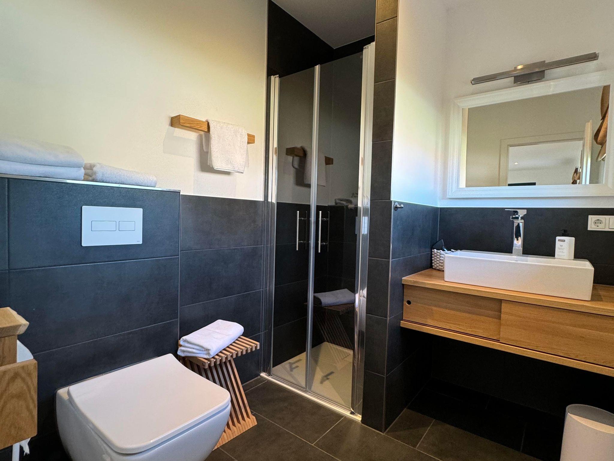 Dusche, Waschtisch, WC Haar Fön, Fenster