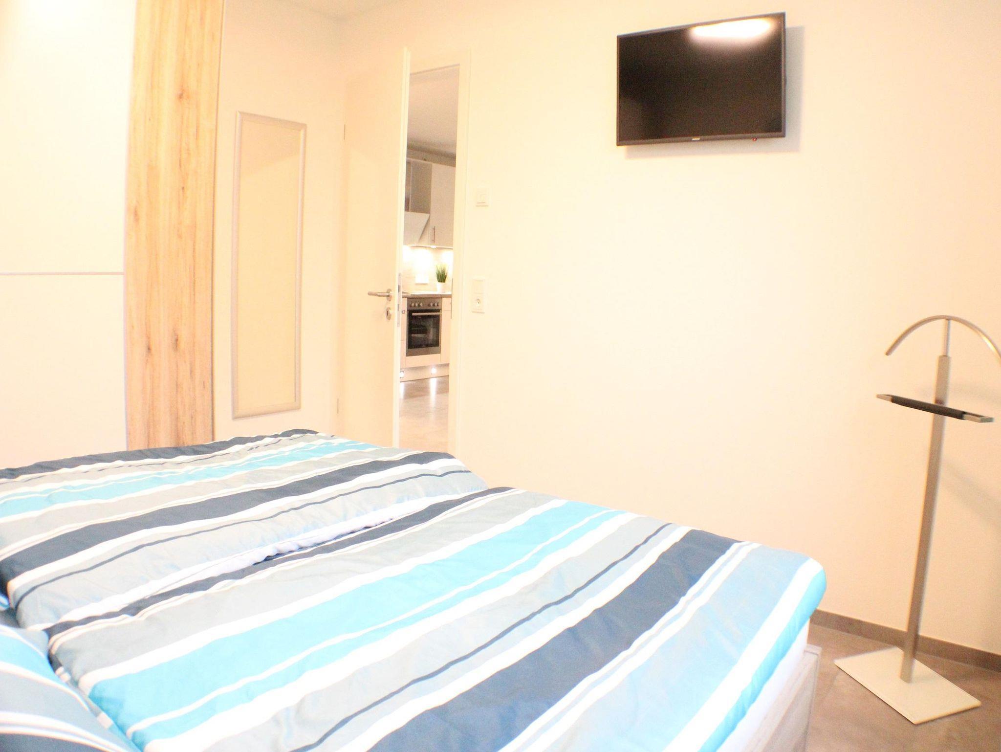 Schlafzimmer 1: TV SAT/Kabel, Babybett (65x125 cm), Doppelbett (180x200 cm), Kleiderschrank, Fußbodenheizung, Fliegengitter, Spiegel, Steckdosensicherung, Fenster
