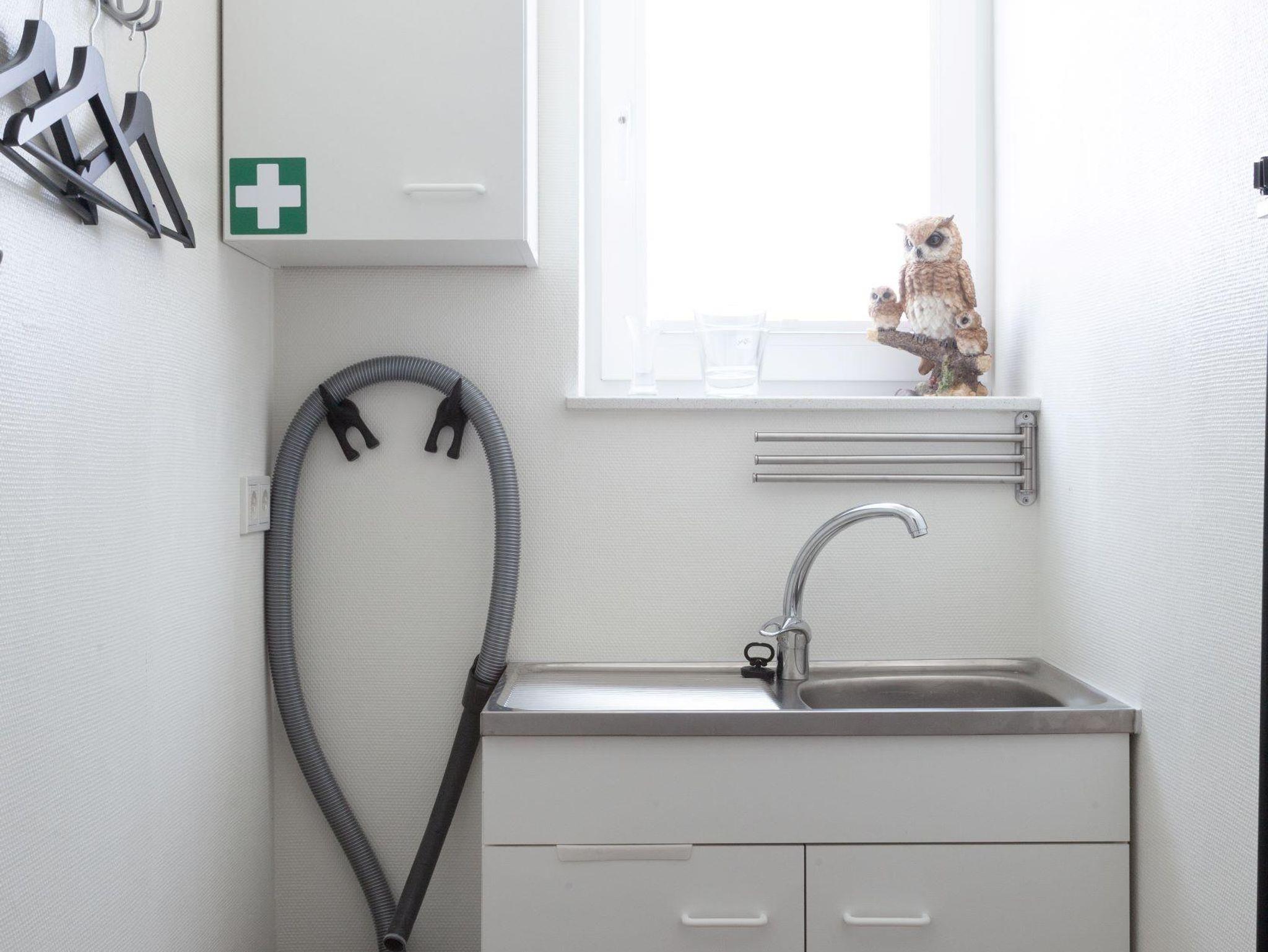 Hauswirtschaft/Garderobe Der schlaue Raum für Allerlei. Ausstattung: Spüle mit Unterschrank, Staubsauger, Putz- und Sicherheitszubehör, Garderobe