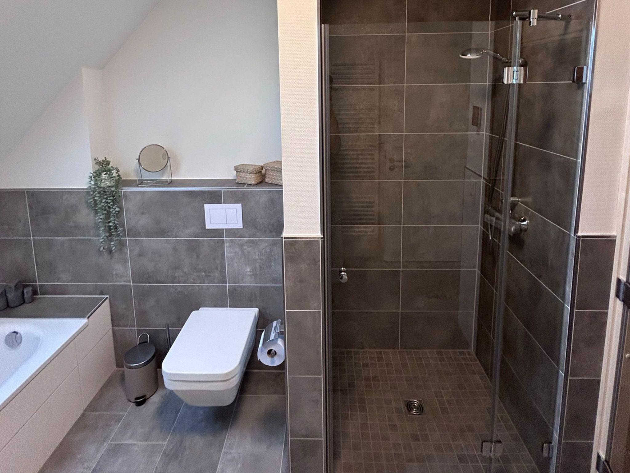 • 1 großes Badezimmer mit Badewanne, Dusche und Sauna