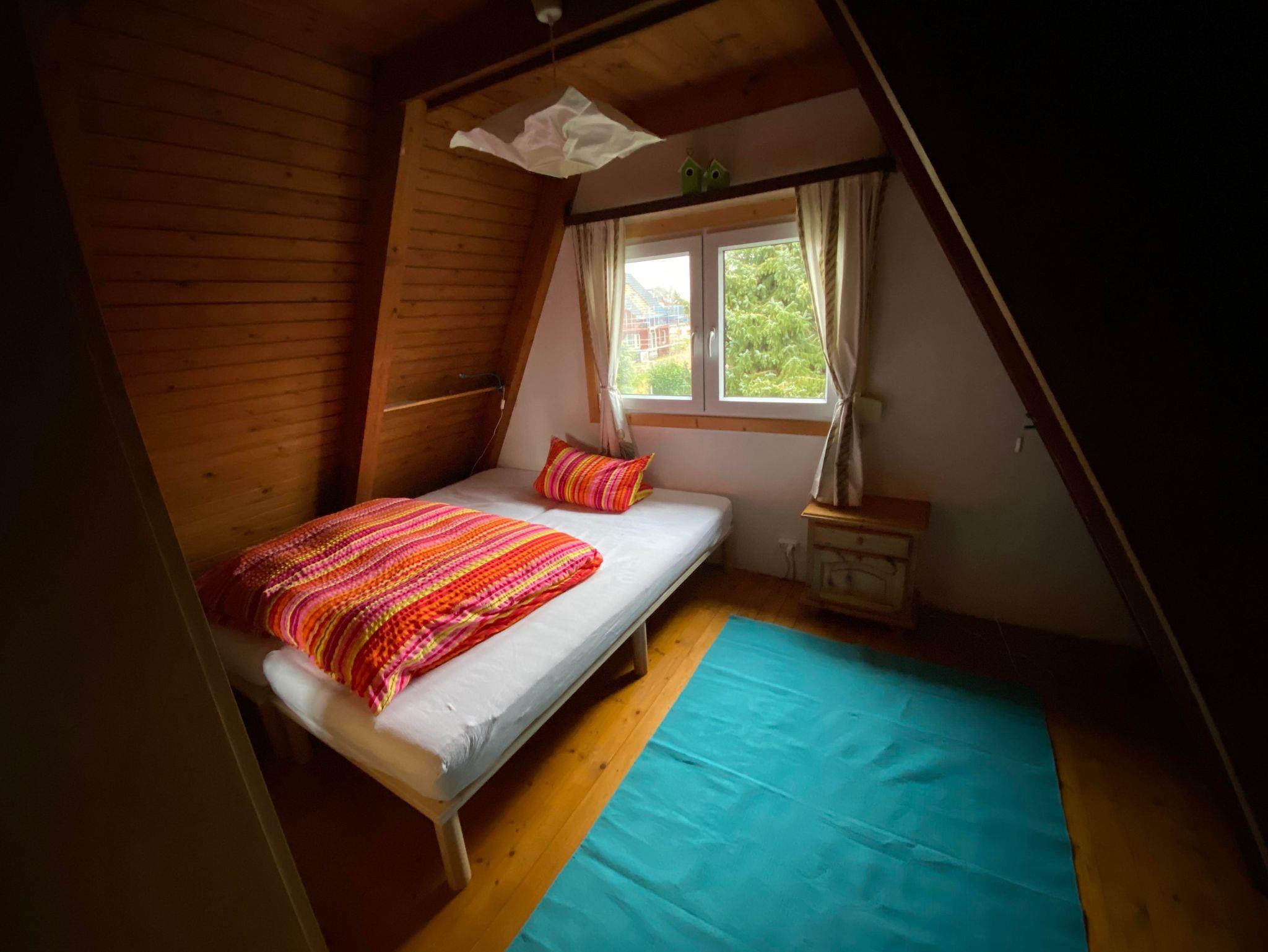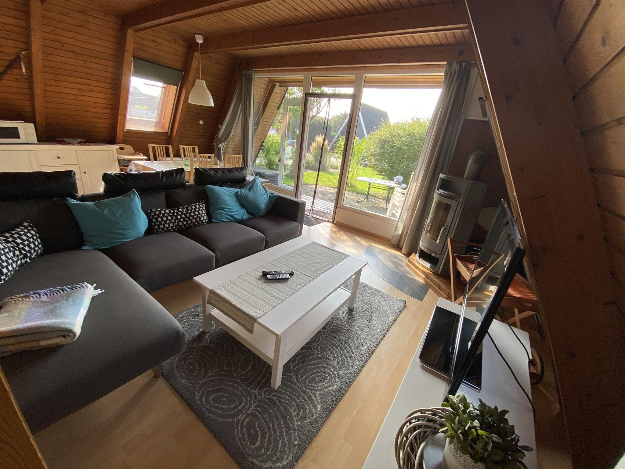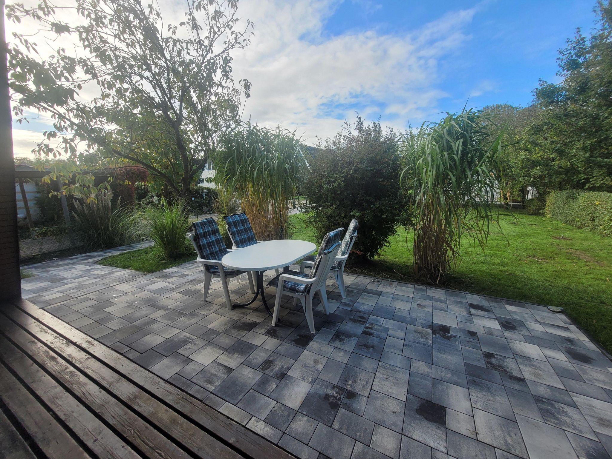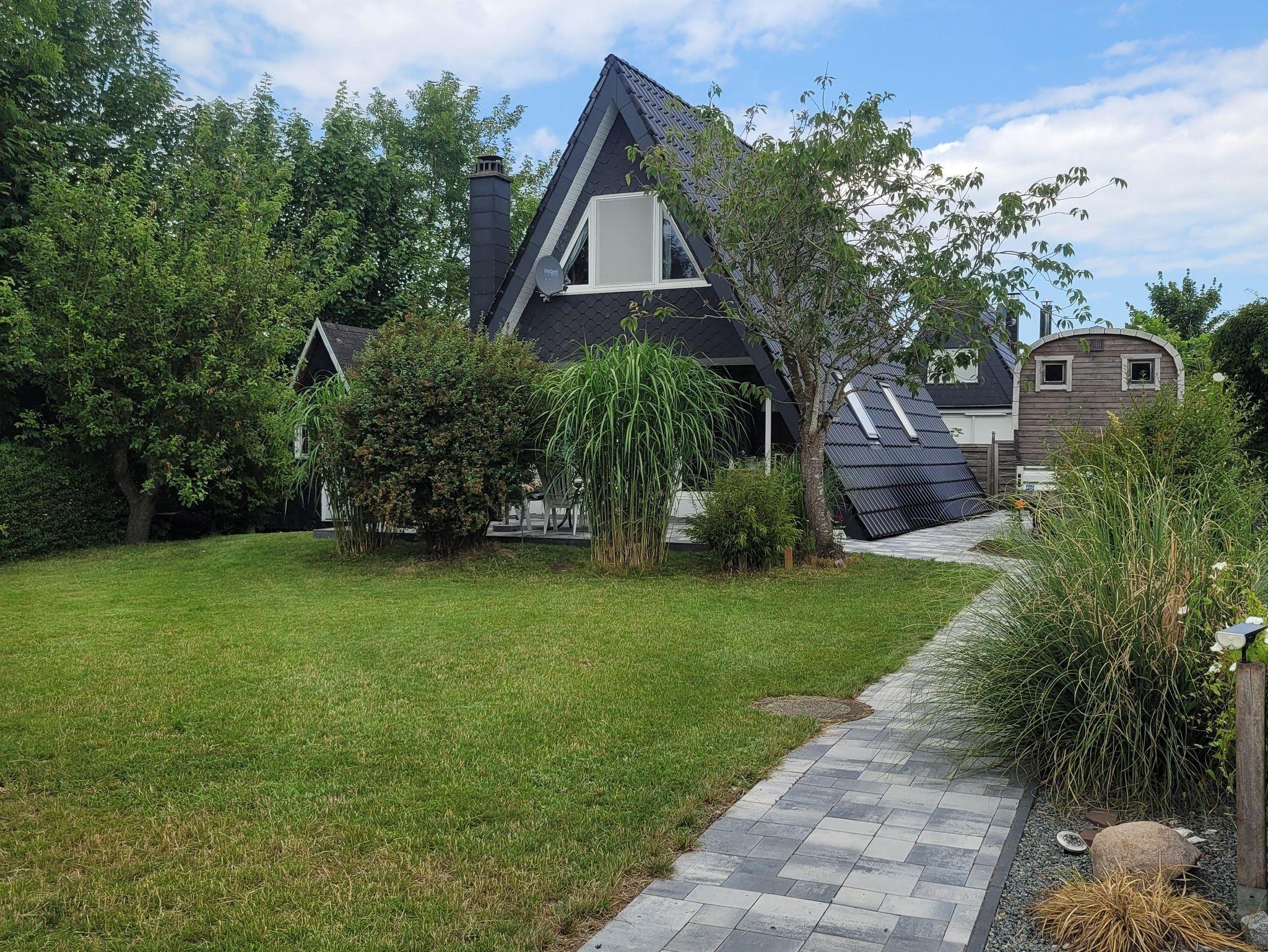 Das Ferienhaus hat einen großen Garten mit Terrasse auf einem ruhig gelegenen Eckgrundstück. Zum Ferienhaus gehört eine vollausgestattete Küche mit Essecke und eine Wohnecke mit TV und Kamin. Die drei Schlafzimmer sind im Haus verteilt, 1 Schlafzimmer mit Doppelbett und ein Schlafzimmer mit 2 Einzelbetten im Obergeschoß und ein Schlafzimmer mit Schlafsofa im Erdgeschoss. Auch ein neu saniertes Bad mit Dusche und WC befindet sich im Erdgeschoss. Die Terrasse mit einer angrenzenden Liegewiese, Gartengrill und gemütlichen Sitzmöbeln laden zu sehr schönen Urlaubstagen ein. Ein PKW-Parkplatz befindet sich am Haus.