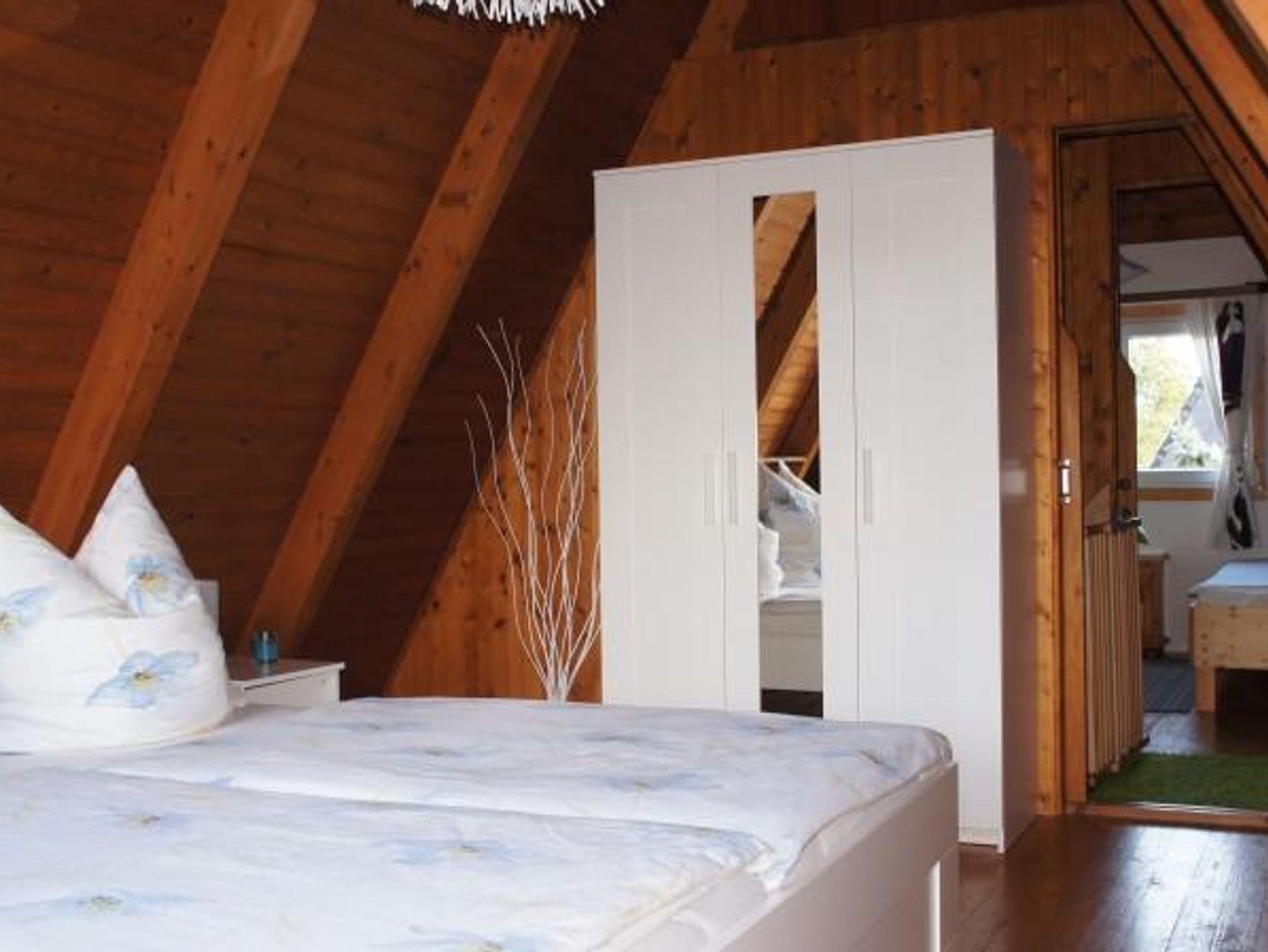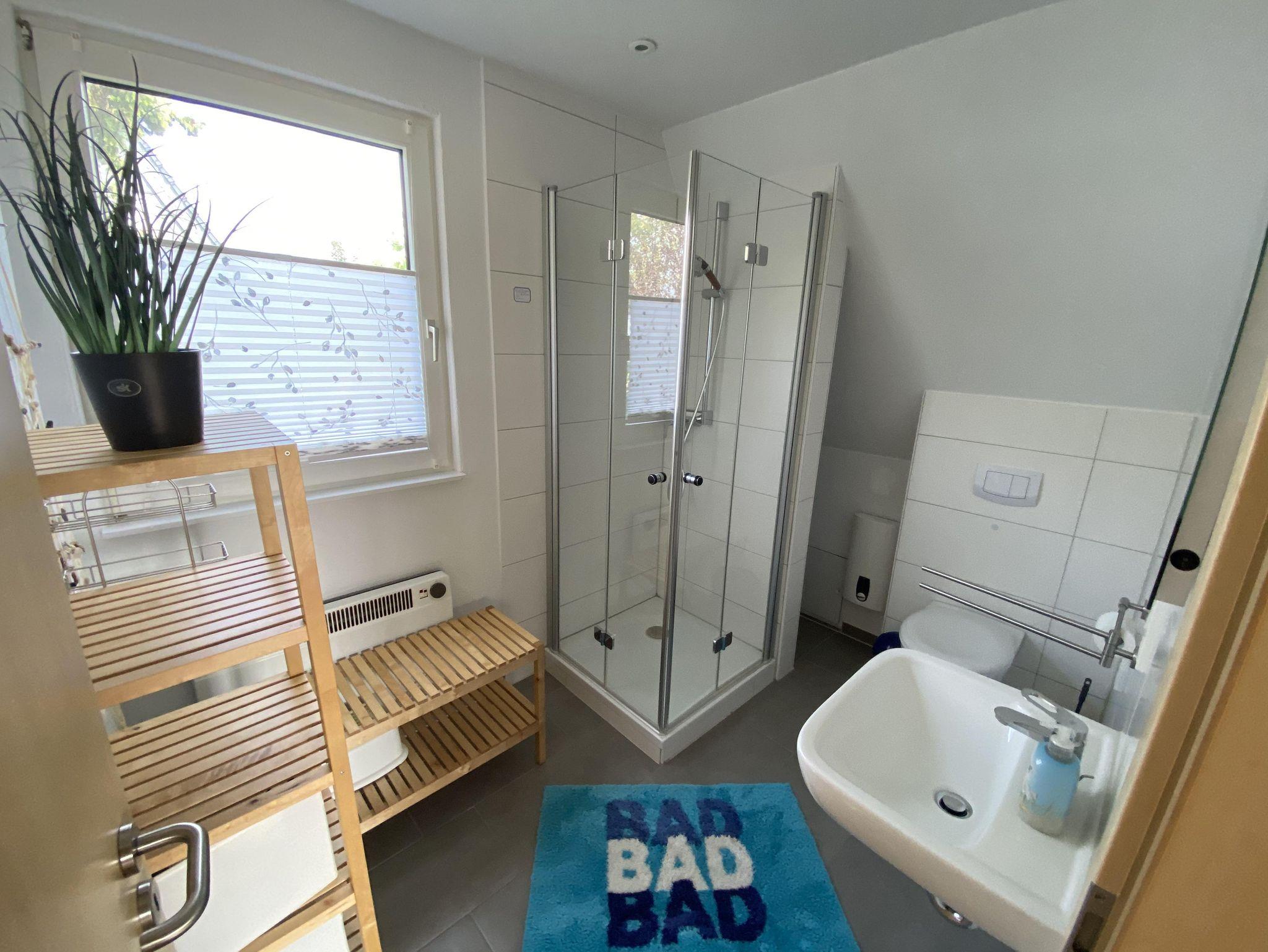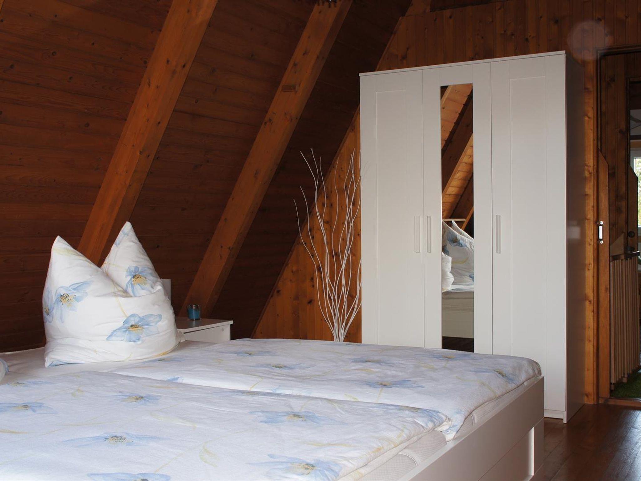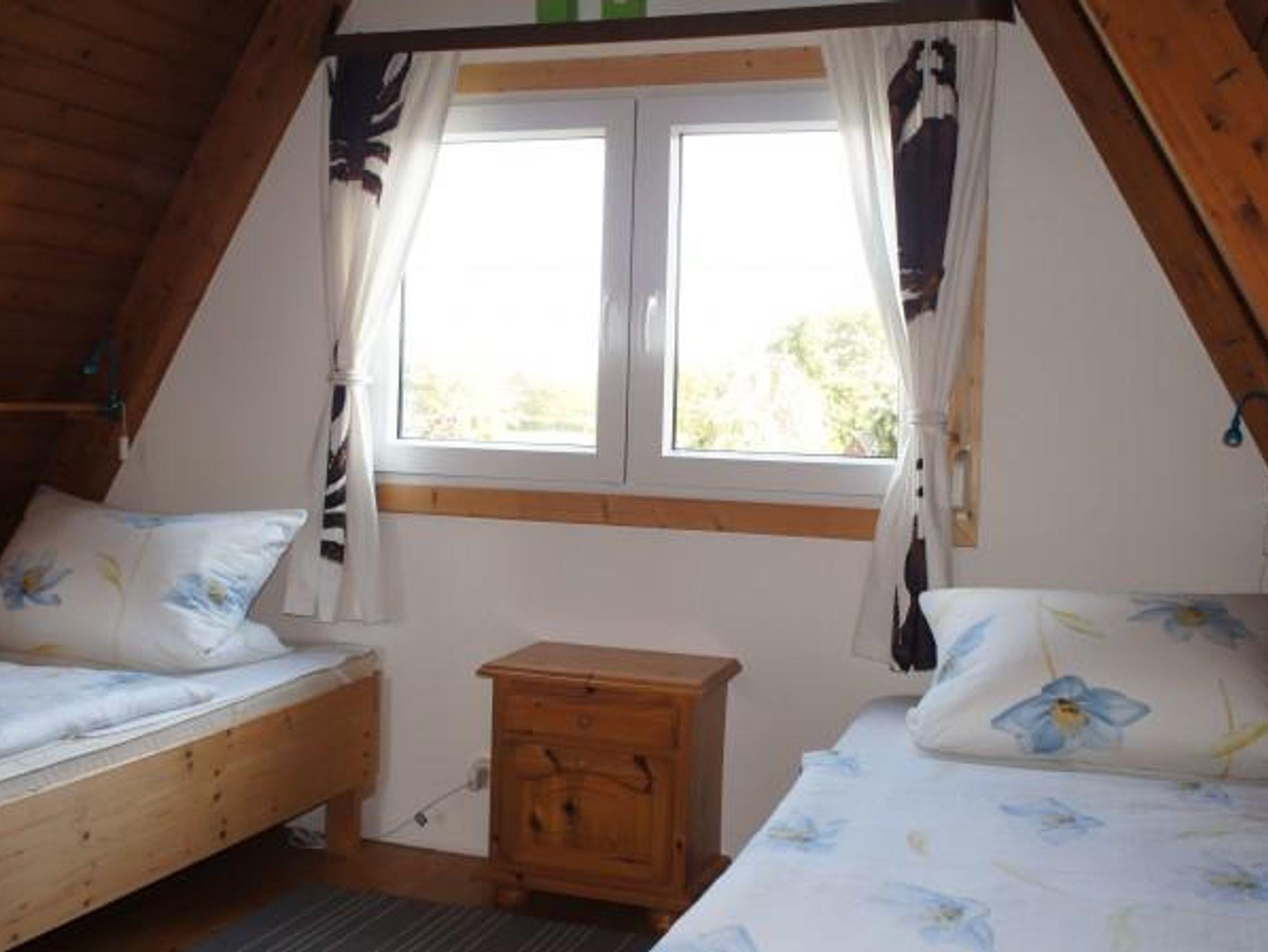 Das Ferienhaus hat einen großen Garten mit Terrasse auf einem ruhig gelegenen Eckgrundstück. Zum Ferienhaus gehört eine vollausgestattete Küche mit Essecke und eine Wohnecke mit TV und Kamin. Die drei Schlafzimmer sind im Haus verteilt, 1 Schlafzimmer mit Doppelbett und ein Schlafzimmer mit 2 Einzelbetten im Obergeschoß und ein Schlafzimmer mit Schlafsofa im Erdgeschoss. Auch ein neu saniertes Bad mit Dusche und WC befindet sich im Erdgeschoss. Die Terrasse mit einer angrenzenden Liegewiese, Gartengrill und gemütlichen Sitzmöbeln laden zu sehr schönen Urlaubstagen ein. Ein PKW-Parkplatz befindet sich am Haus.