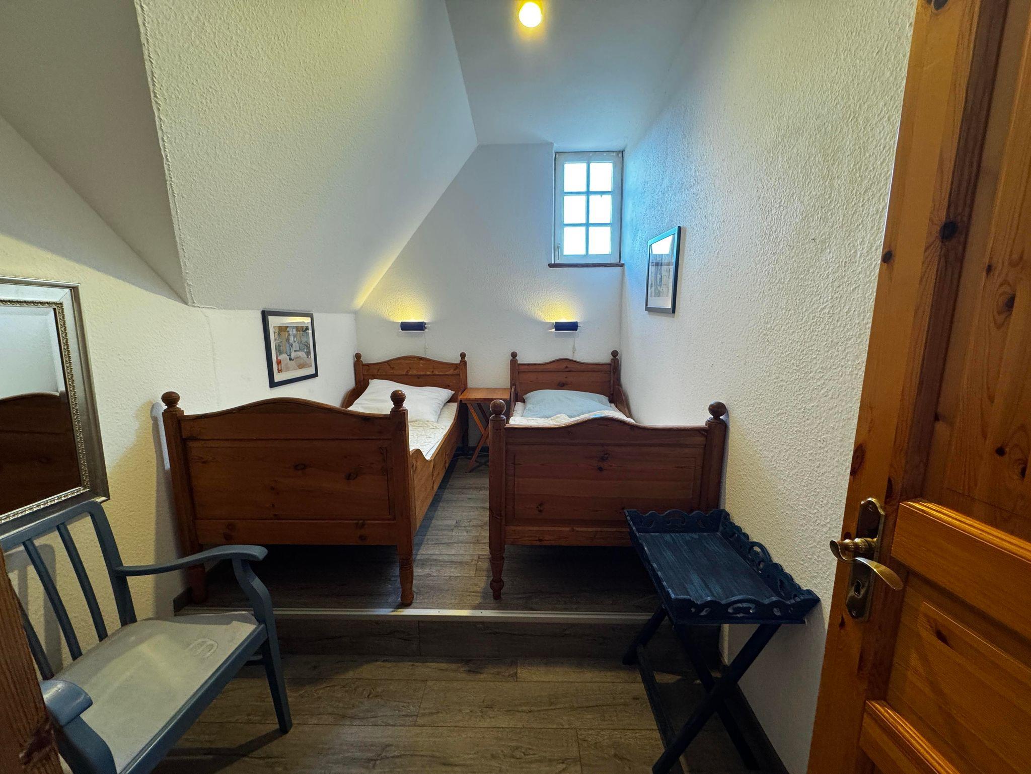 Die Wohnung verfügt über zwei gemütliche Schlafzimmer: Das Elternschlafzimmer ist mit einem komfortablen Doppelbett (1,40 m Breite) und Kleiderschrank ausgestattet, während das Kinderzimmer zwei Einzelbetten sowie Spielzeug zum Entdecken und Spielen bereithält. Bettwäsche ist selbstverständlich inklusive.