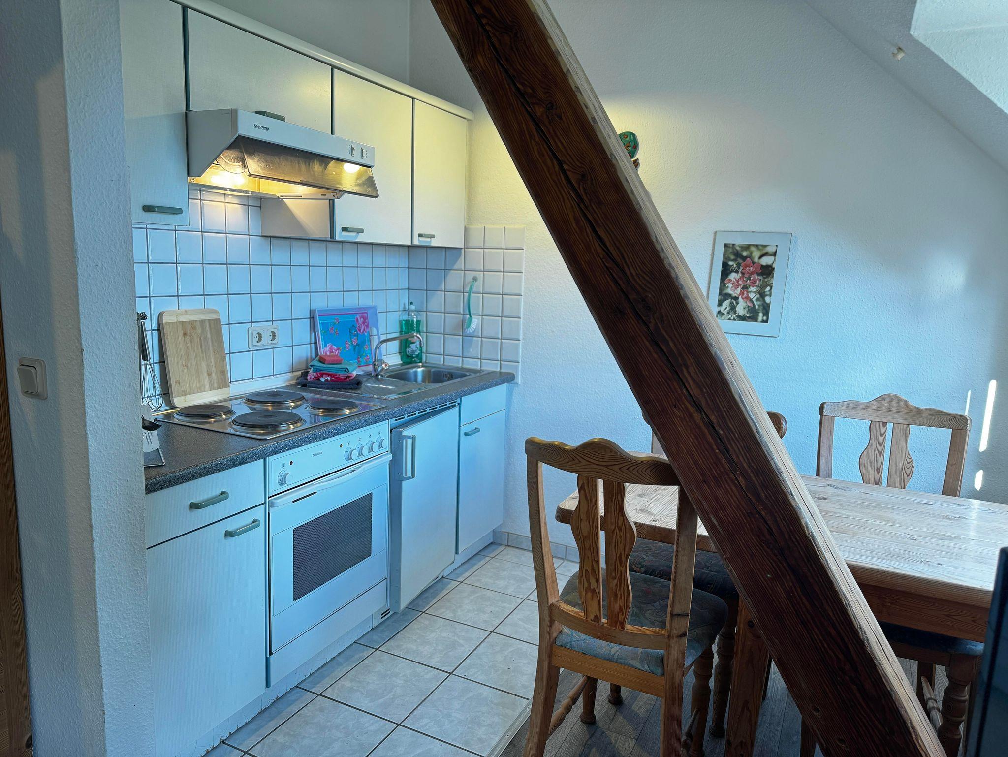 Im Wohnbereich erwarten Sie ein Sofa, ein Sessel, Sat-TV, Radio sowie kostenloses WLAN – ideal für entspannte Stunden. Die Wohnküche ist komplett ausgestattet mit Spülmaschine, Backofen-Herd-Kombination, Kühlschrank, Kaffeemaschine, Wasserkocher, Mikrowelle und ausreichend Geschirr. Ein Esstisch bietet Platz für gemeinsame Mahlzeiten.