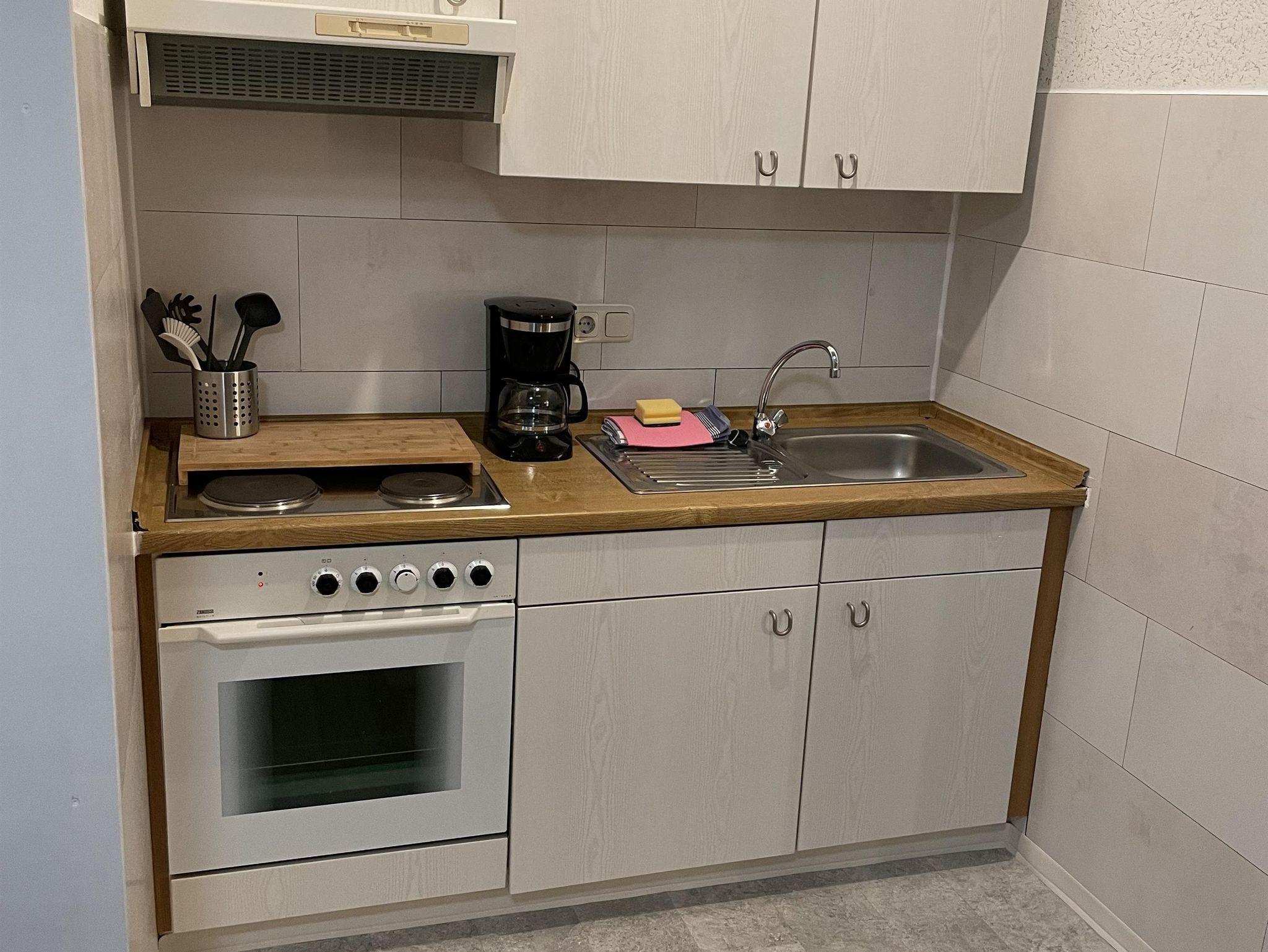 Über Kaffeemaschine, Gewürze, Kaffee, Wasserkocher, Toaster und Backofen ist alles vorhanden.